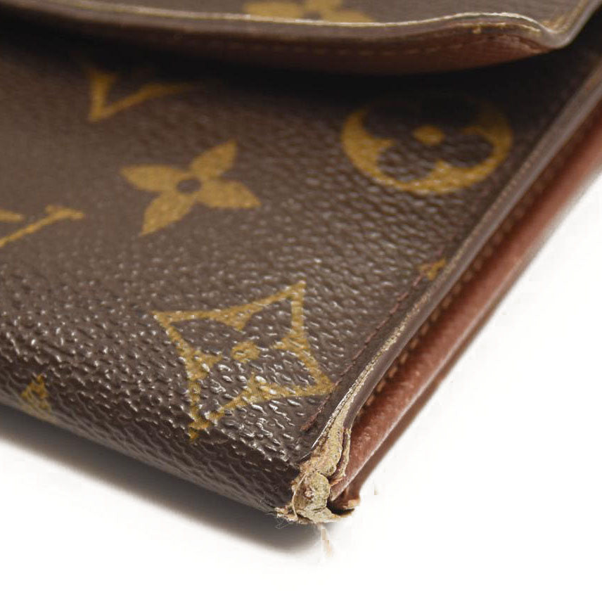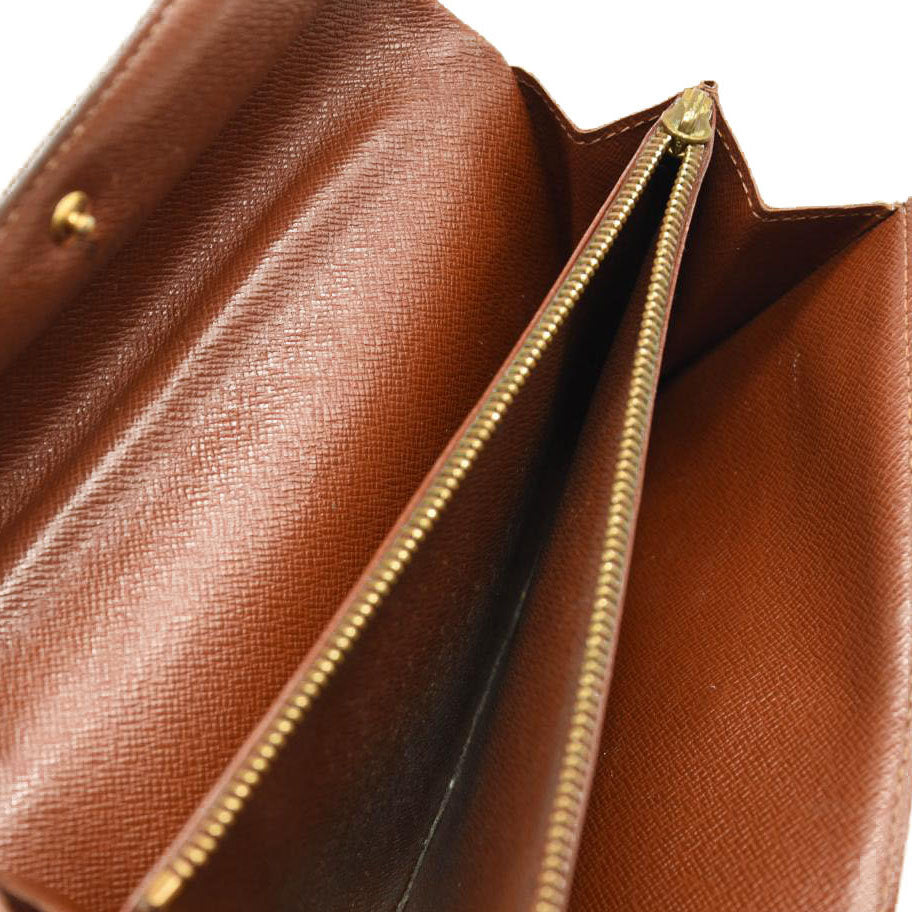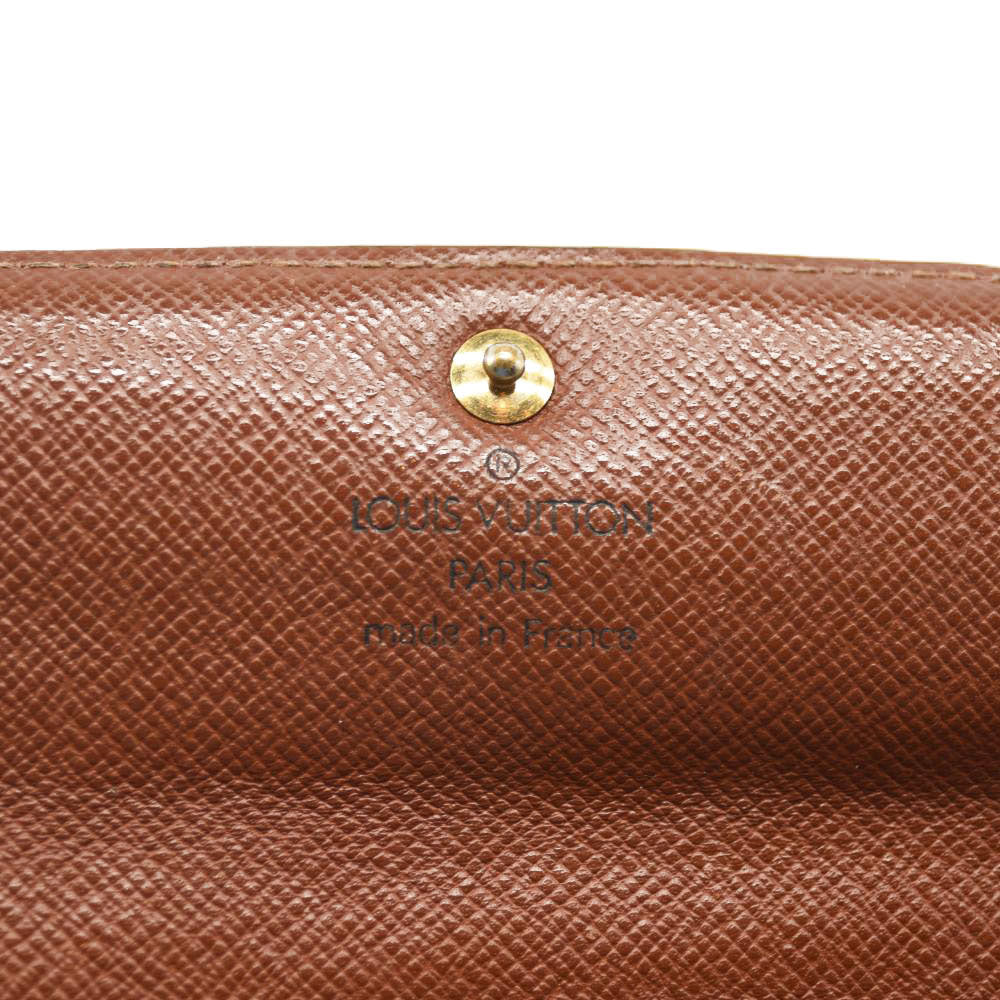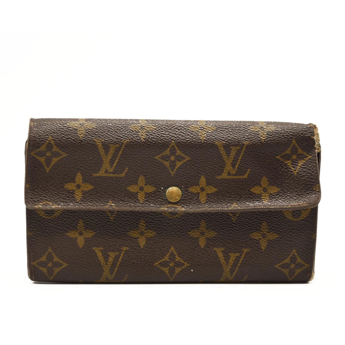 This is the authentic LOUIS VUITTON Monogram Sarah Wallet, the old version. This classic clutch wallet is crafted of traditional monogram coated canvas with a frontal half flap that opens with a snap in an accordion style to an interior of terracotta cross-grain leather. There is one primary zipper compartment and another open compartment. This is an excellent everyday clutch wallet for your everyday needs from, Louis Vuitton!