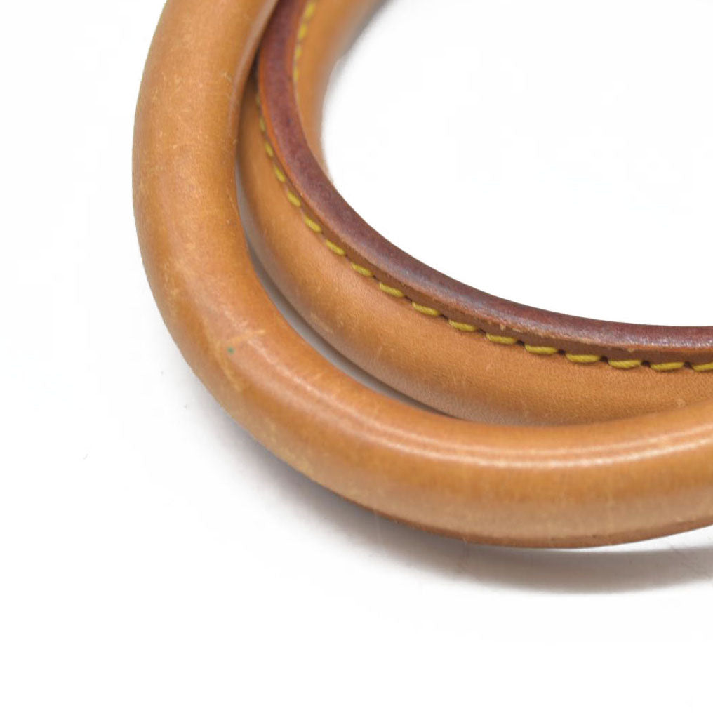 Exterior: Leather tab is damaged, surface wear, corner wear, patina of vachetta, splitting leather, structure wear, creases of leather parts, darkening of leather