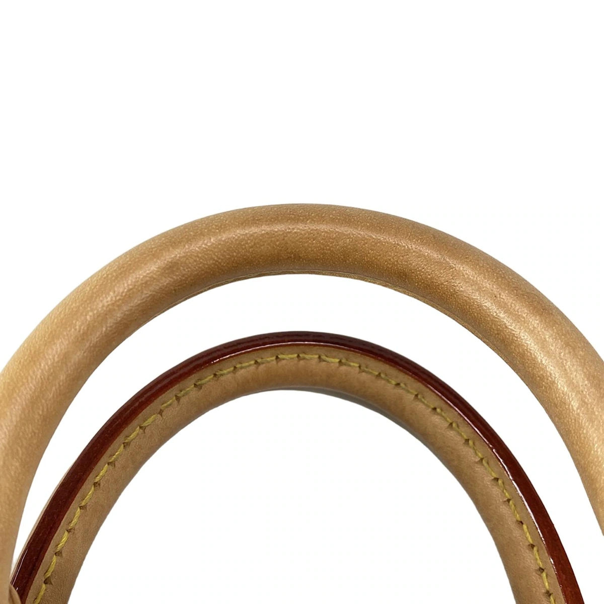 This is an authentic LOUIS VUITTON Monogram Speedy Bandouliere 20 in Beige. This classic handbag is crafted of signature Louis Vuitton monogram coated canvas. The bag features vachetta cowhide leather rolled top handles, a multicolor fabric shoulder strap, and polished brass hardware. The top zipper opens to a red fabric interior with a patch pocket.
