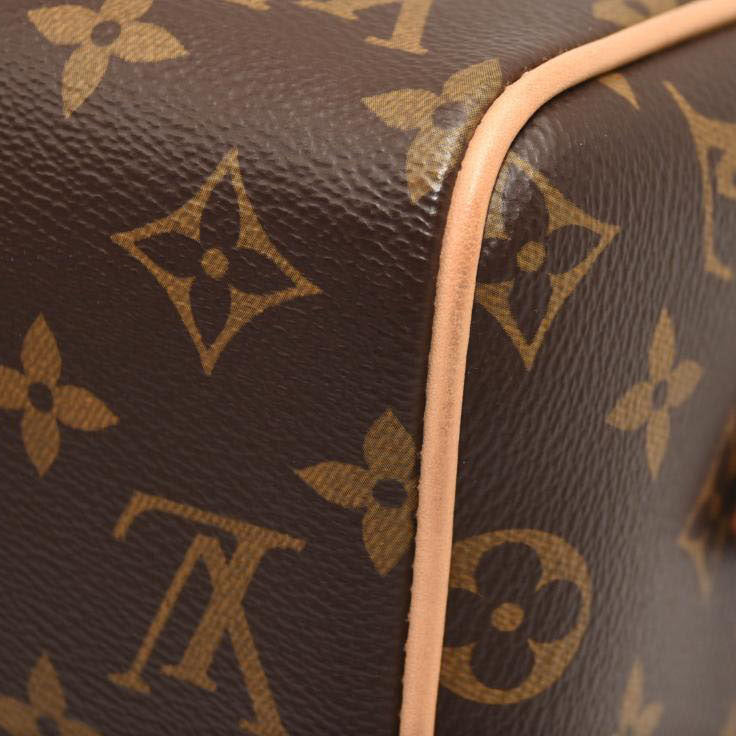 [Outside] overall : small scratches / (There is slight scuffing on the tanned leather part, and thin scratches on the metal part) / small dirt marks / (Slightly dirty on the tanned leather part) bottom : slight corner rubbing / cowhide leather / light rain stains / color changed into brown due to tanning [Inside] bottom : small dirt marks / (slightly dust on bottom and corners) Note : Accessories damaged. / (Strap hardware, Padlock: some scratches)