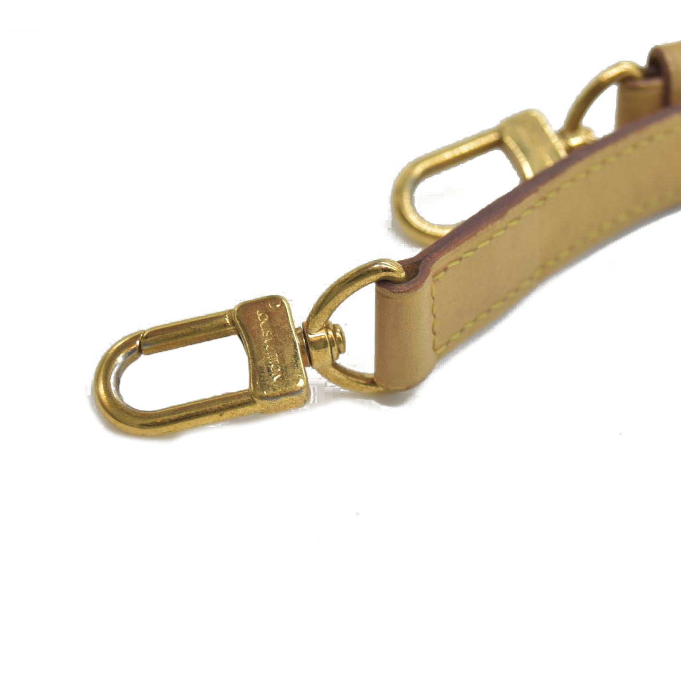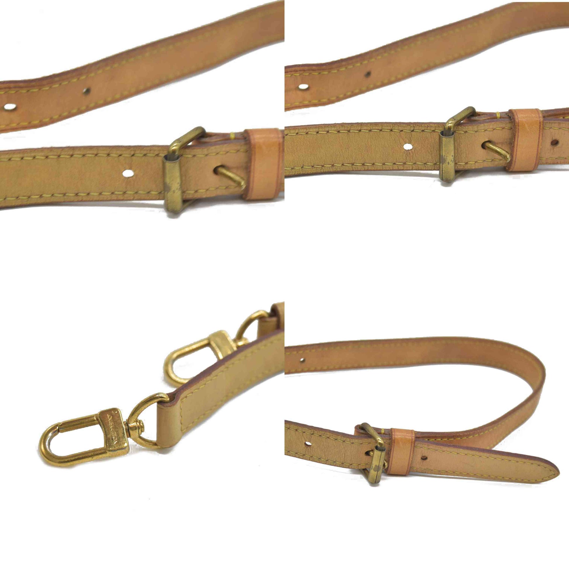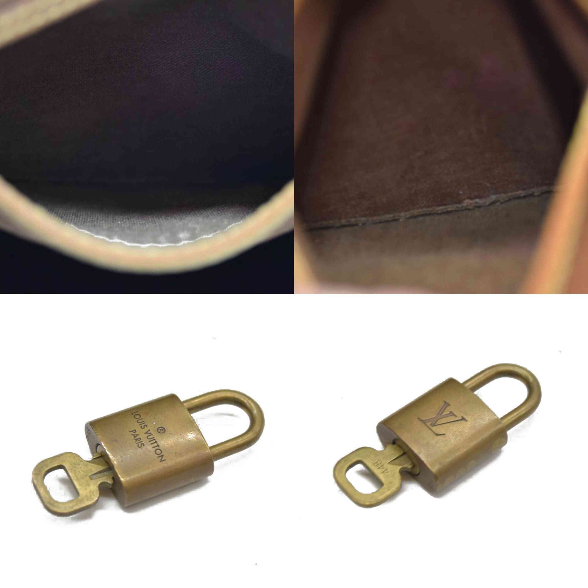Overall: Pre-owned condition with signs of use. Outside: Some wrinkles, Some scratches, Some abrasion, Faded, Soiled, Few cracking. Inside: Slight soiled, Some faded. Outside pocket: - Inside pocket: Some faded, Some soiled, Slight abrasion. Handle strap: Faded, Scratches, Some abrasion, Soiled. Shoulder strap: Wrinkles, Faded, Soiled, Few cracking, Slight abrasion, Slight scratches. It is engraved with the initials of the previous user. Corners: Wrinkles, Faded, Soiled, Some abrasion, Slight scratches. A few cracking at the corners of the opening. Snaps, Zippers, and Hardware : Faded, Soiled, Abrasion. The d-ring, key, and lock were particularly dirty and worn out.