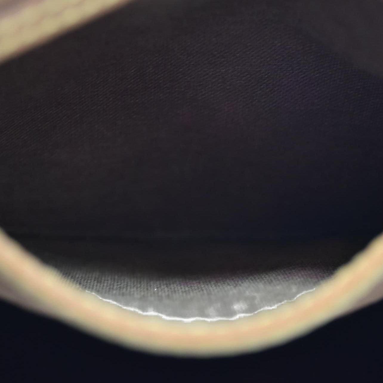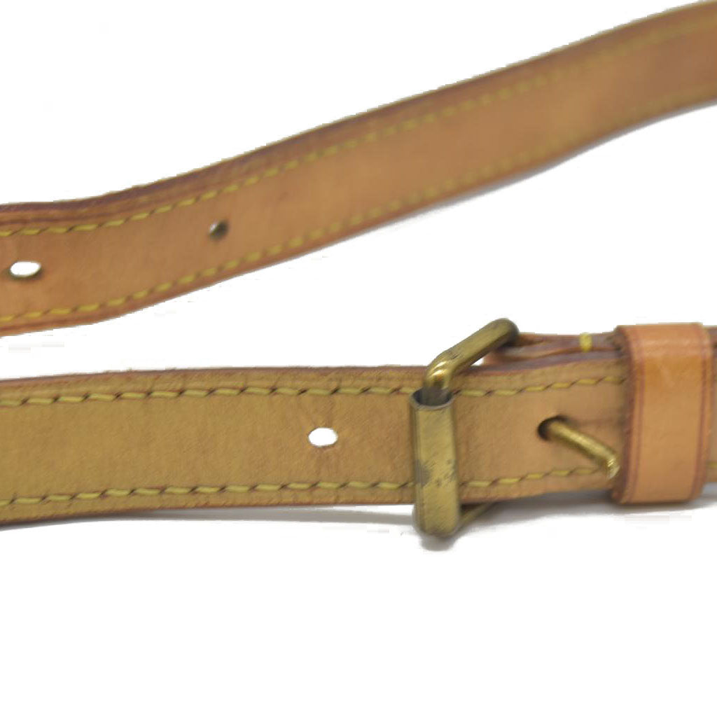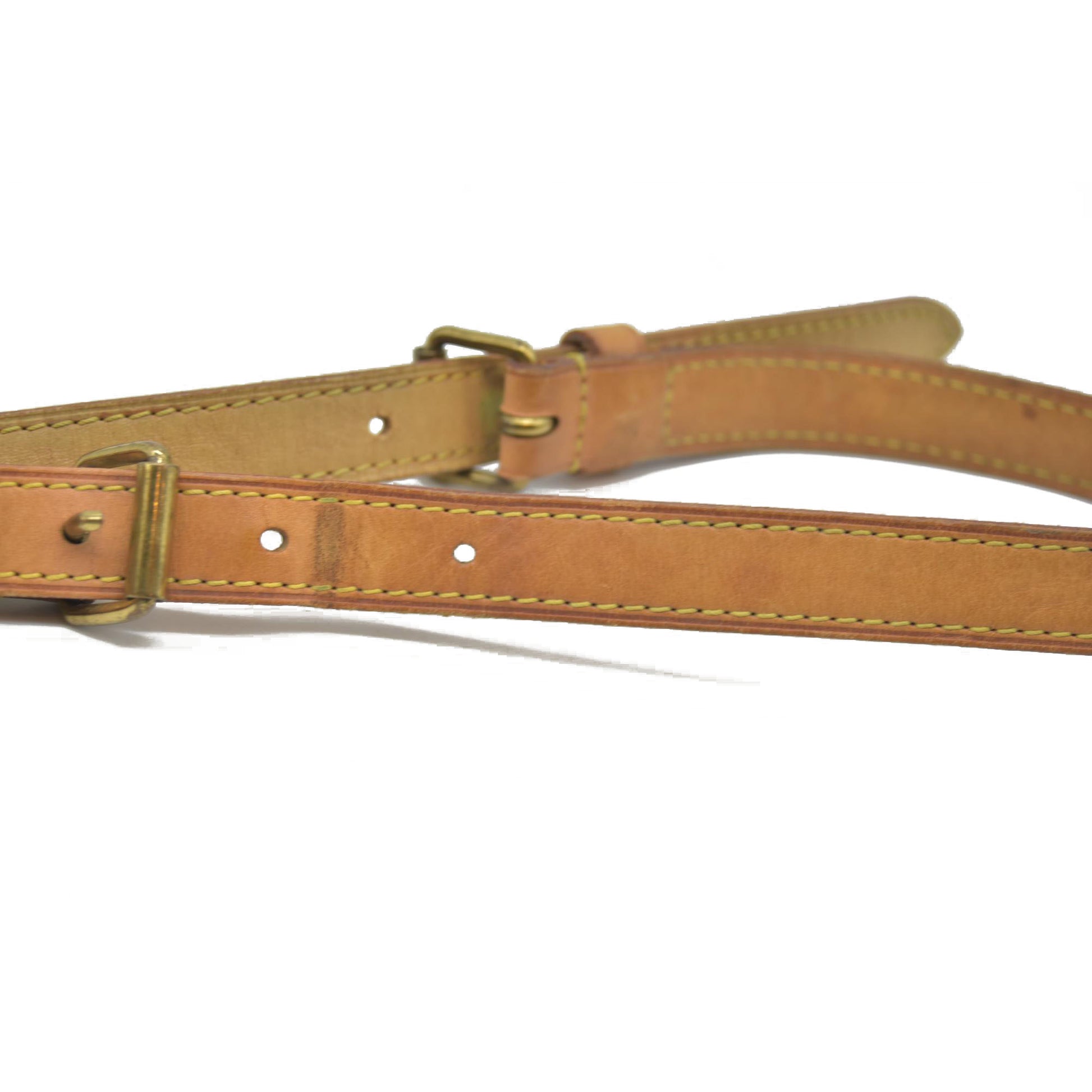 Overall: Pre-owned condition with signs of use. Outside: Some wrinkles, Some scratches, Some abrasion, Faded, Soiled, Few cracking. Inside: Slight soiled, Some faded. Outside pocket: - Inside pocket: Some faded, Some soiled, Slight abrasion. Handle strap: Faded, Scratches, Some abrasion, Soiled. Shoulder strap: Wrinkles, Faded, Soiled, Few cracking, Slight abrasion, Slight scratches. It is engraved with the initials of the previous user. Corners: Wrinkles, Faded, Soiled, Some abrasion, Slight scratches. A few cracking at the corners of the opening. Snaps, Zippers, and Hardware : Faded, Soiled, Abrasion. The d-ring, key, and lock were particularly dirty and worn out.