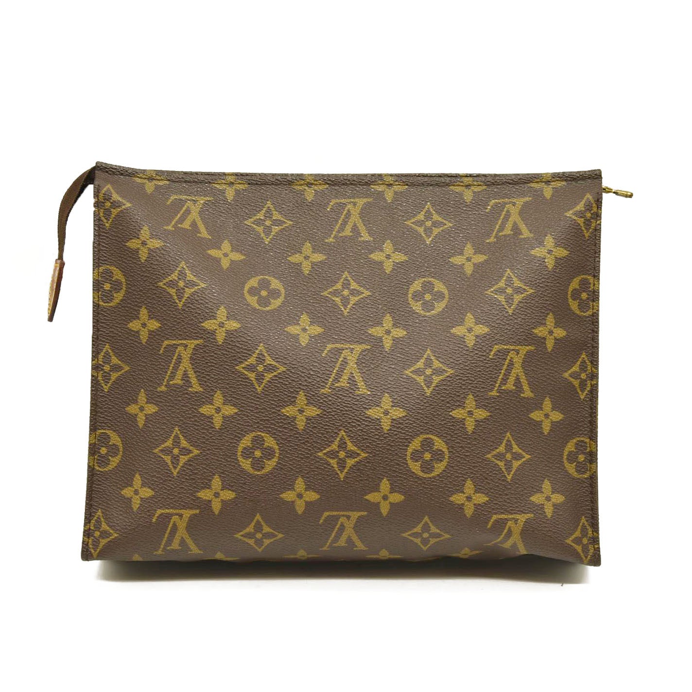 This is a stylish and authentic LOUIS VUITTON Damier Toiletry Pouch 26. This large accessory travel case is constructed of signature Damier toile canvas in a characteristic squared shape. It has a sturdy overhanging top zipper that will last generations. The interior is a resistant red lining. This is a stylish and practical pouch that will help you manage your traveling needs, be it for the day or a ten day cruise... this will prove very useful, from Louis Vuitton!