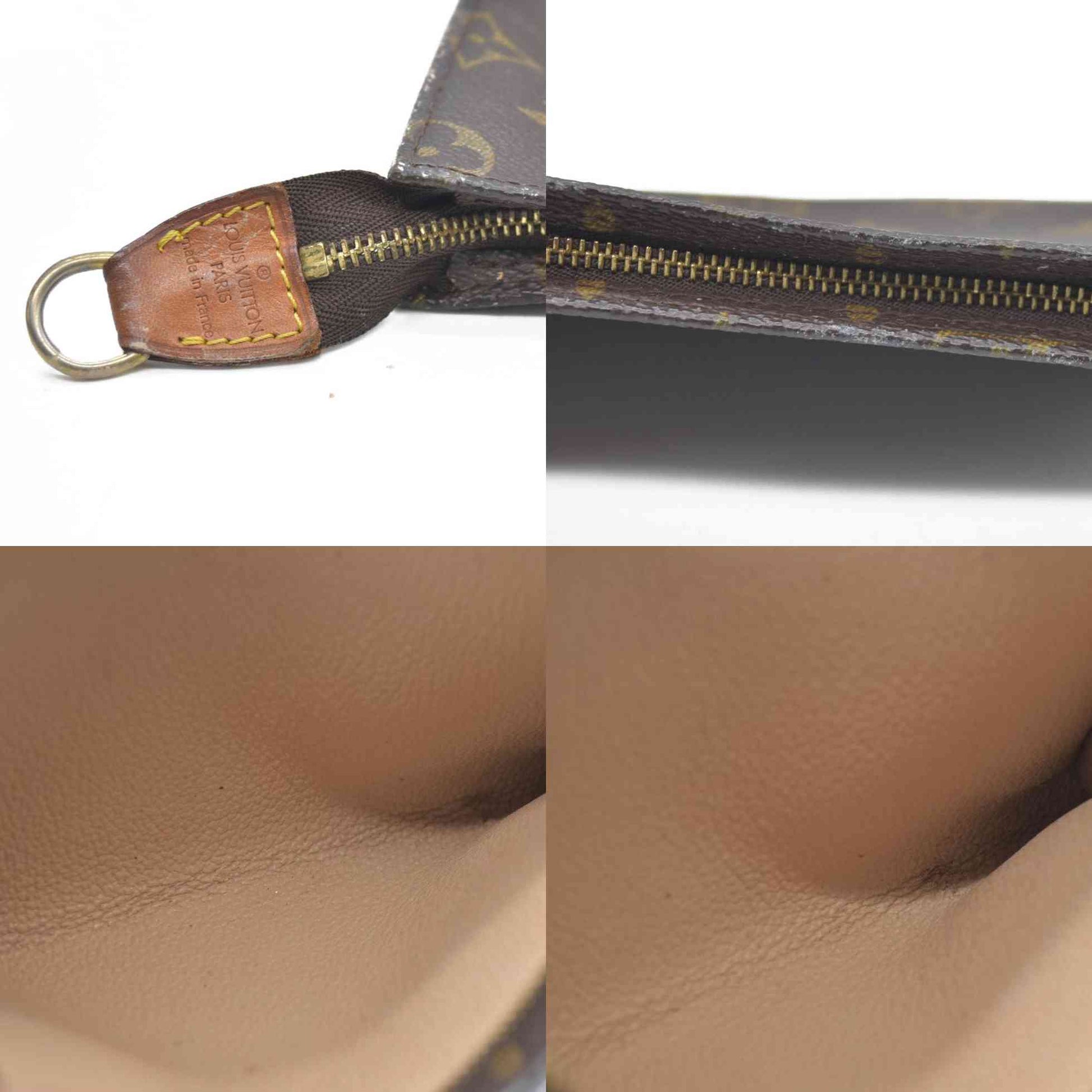 This is an authentic LOUIS VUITTON Monogram Cosmetics Pouch PM. Crafted from Louis Vuitton's signature Monogram coated canvas, this compact pouch features a zip closure with a gold-tone zipper pull. The interior is lined with a beige textile lining, offering a clean and durable finish.