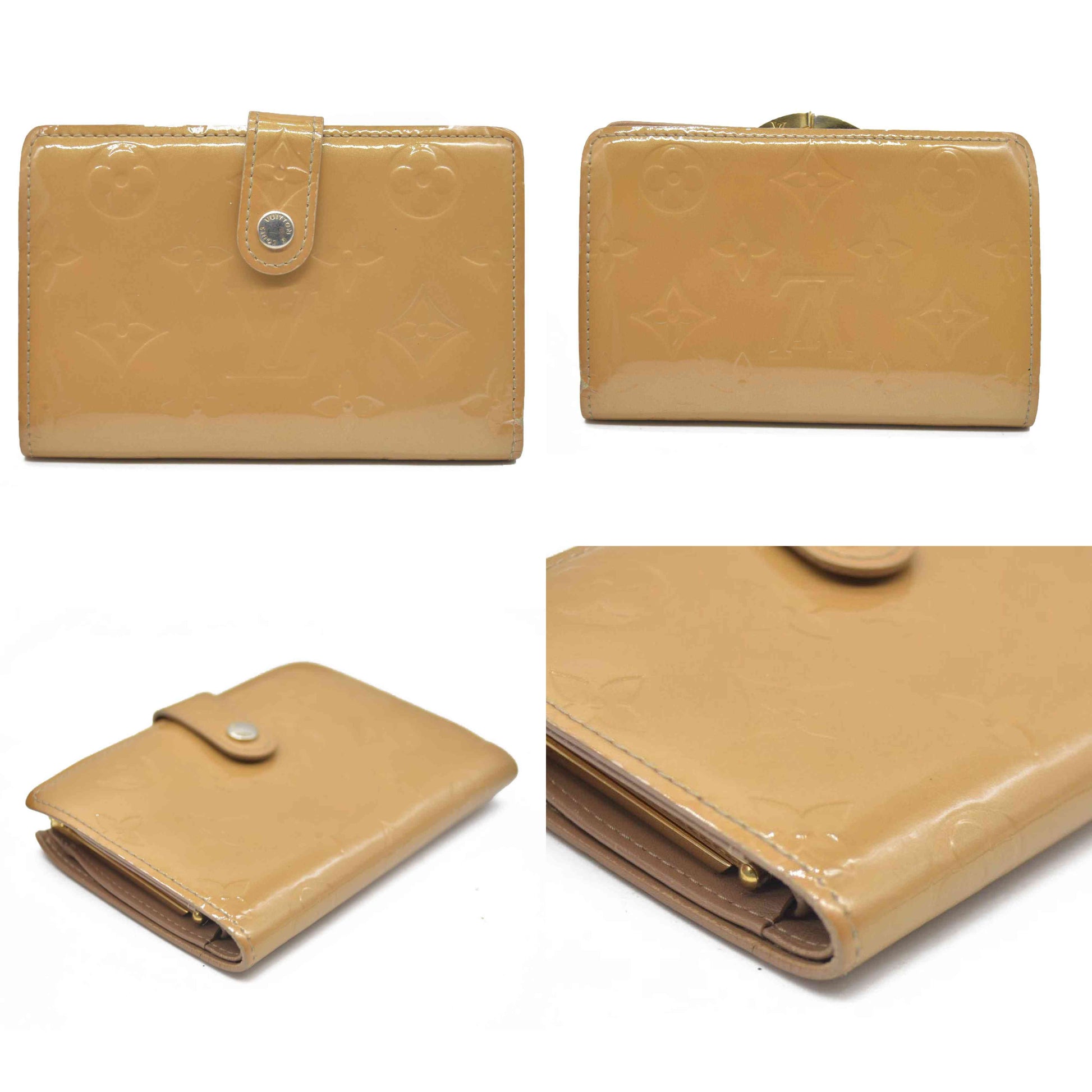 AUCTION $935 Louis Vuitton Vernis French Purse Wallet Beige MI0025