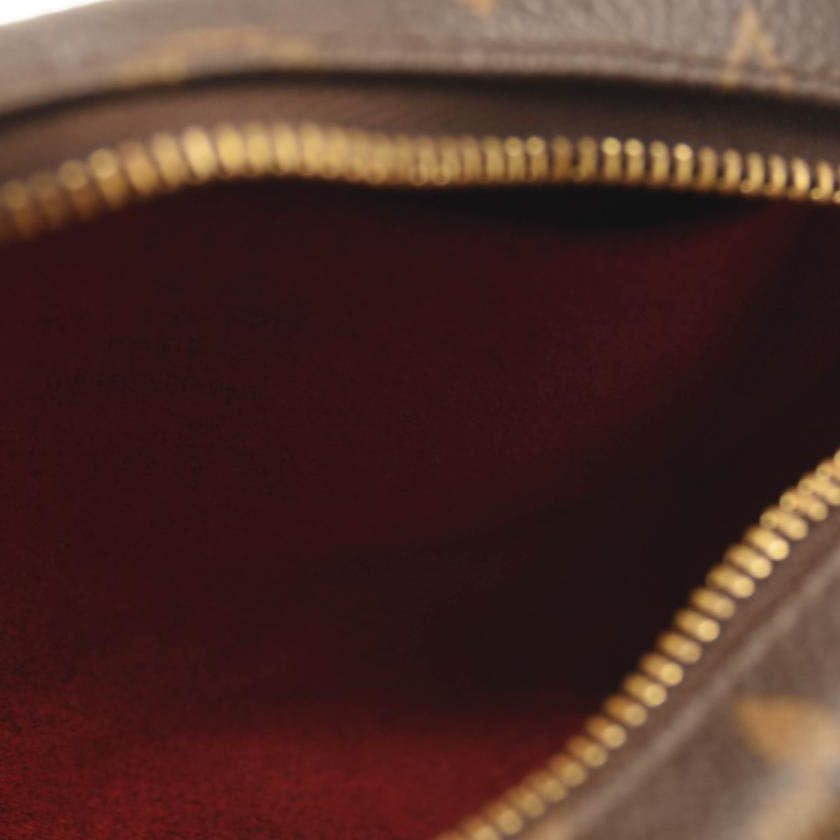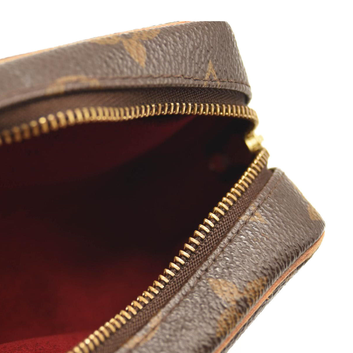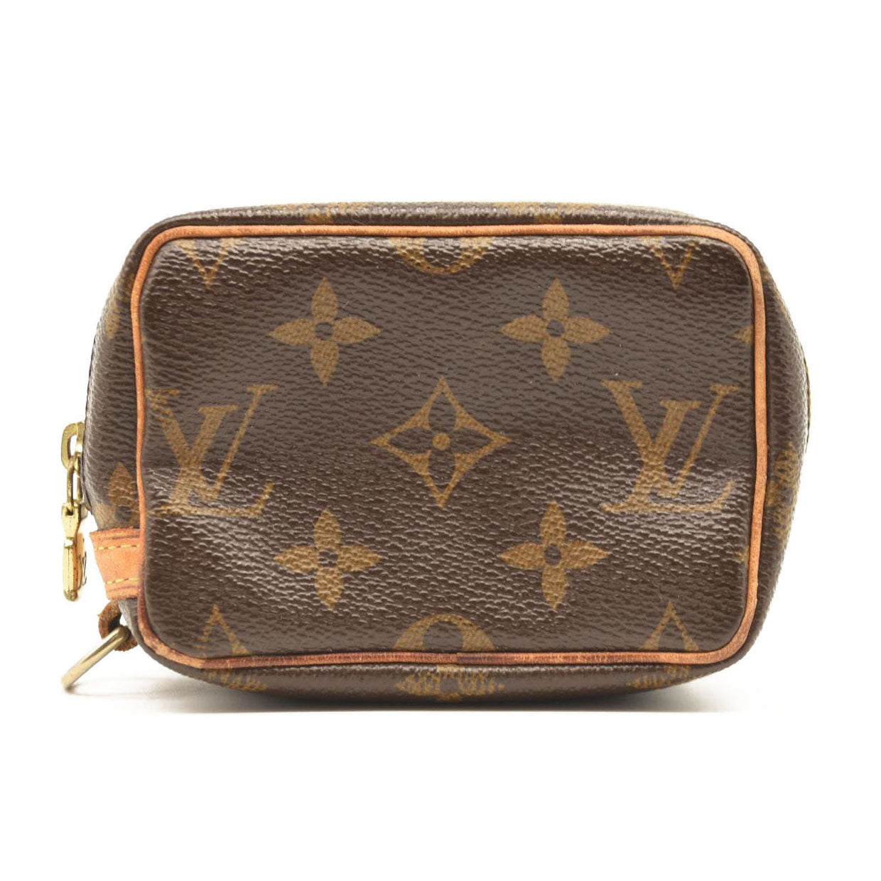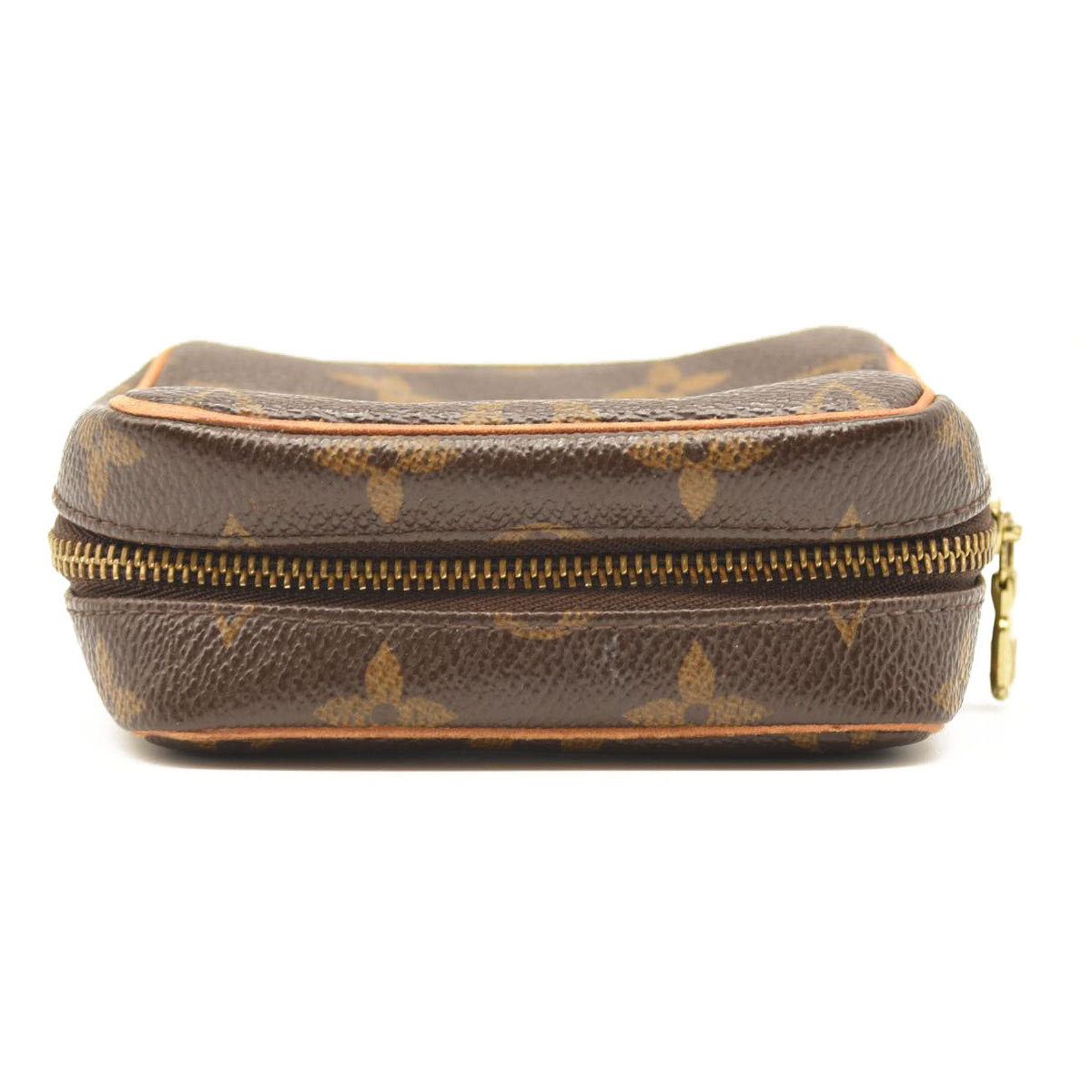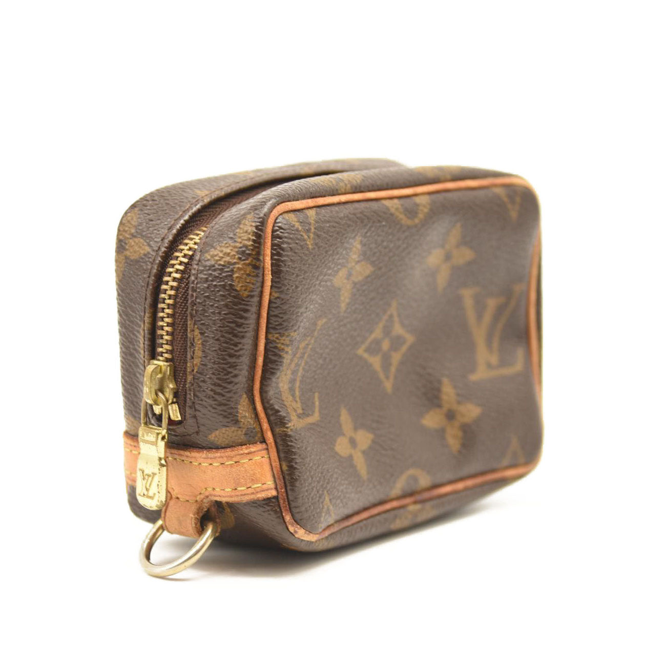This is an authentic LOUIS VUITTON Monogram Wapity. This petite accessory case is crafted of classic Louis Vuitton monogram on toile canvas. This case has signature vachetta cowhide leather piping. The brass zipper opens to a red Alcantara interior with a patch pocket.