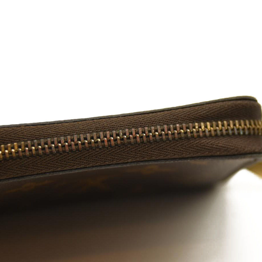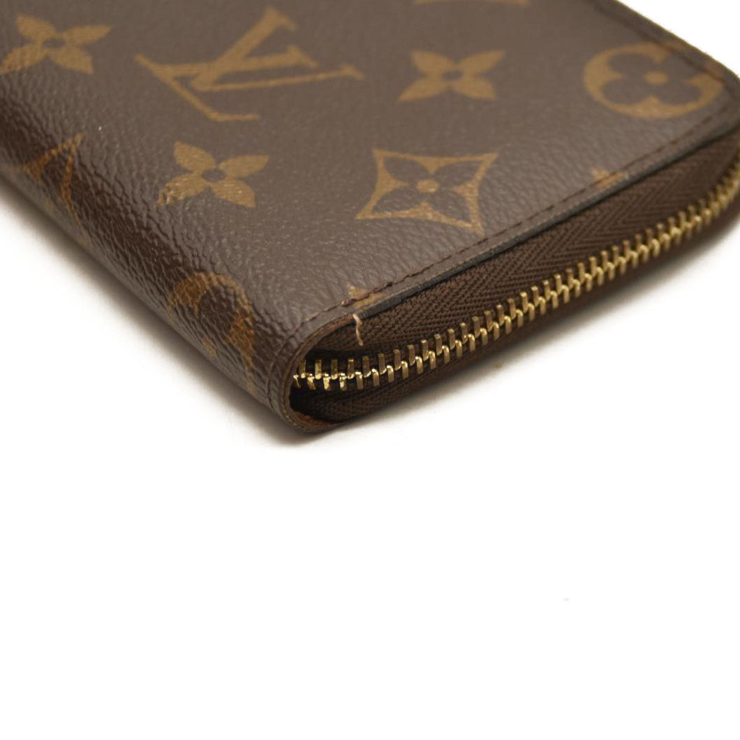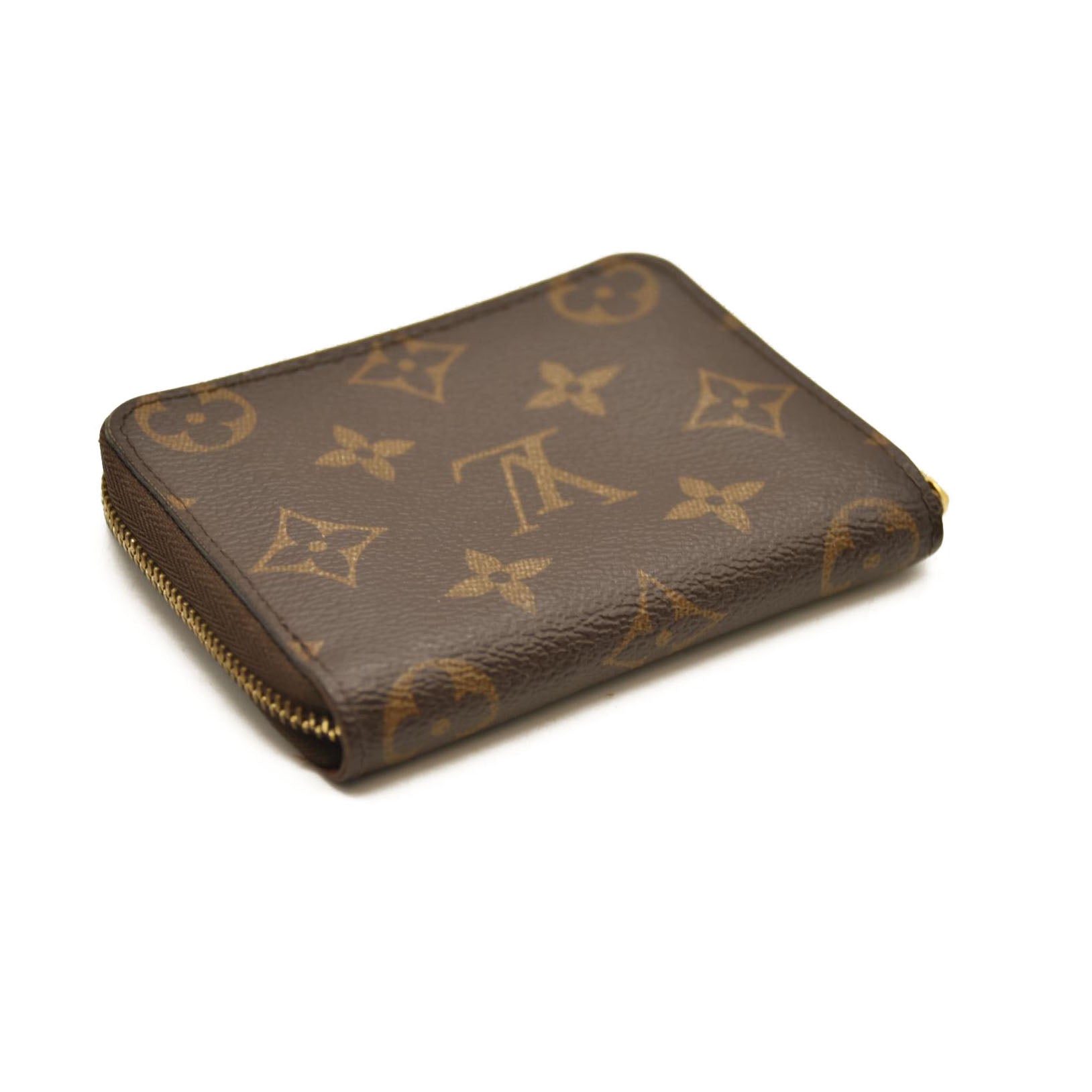 This is an authentic LOUIS VUITTON Monogram Zippy Coin Purse. This chic wallet is crafted of traditional Louis Vuitton monogram toile canvas. The gold 3/4 zipper opens to a cross-grain terra cotta leather interior of card slots and patch pockets.