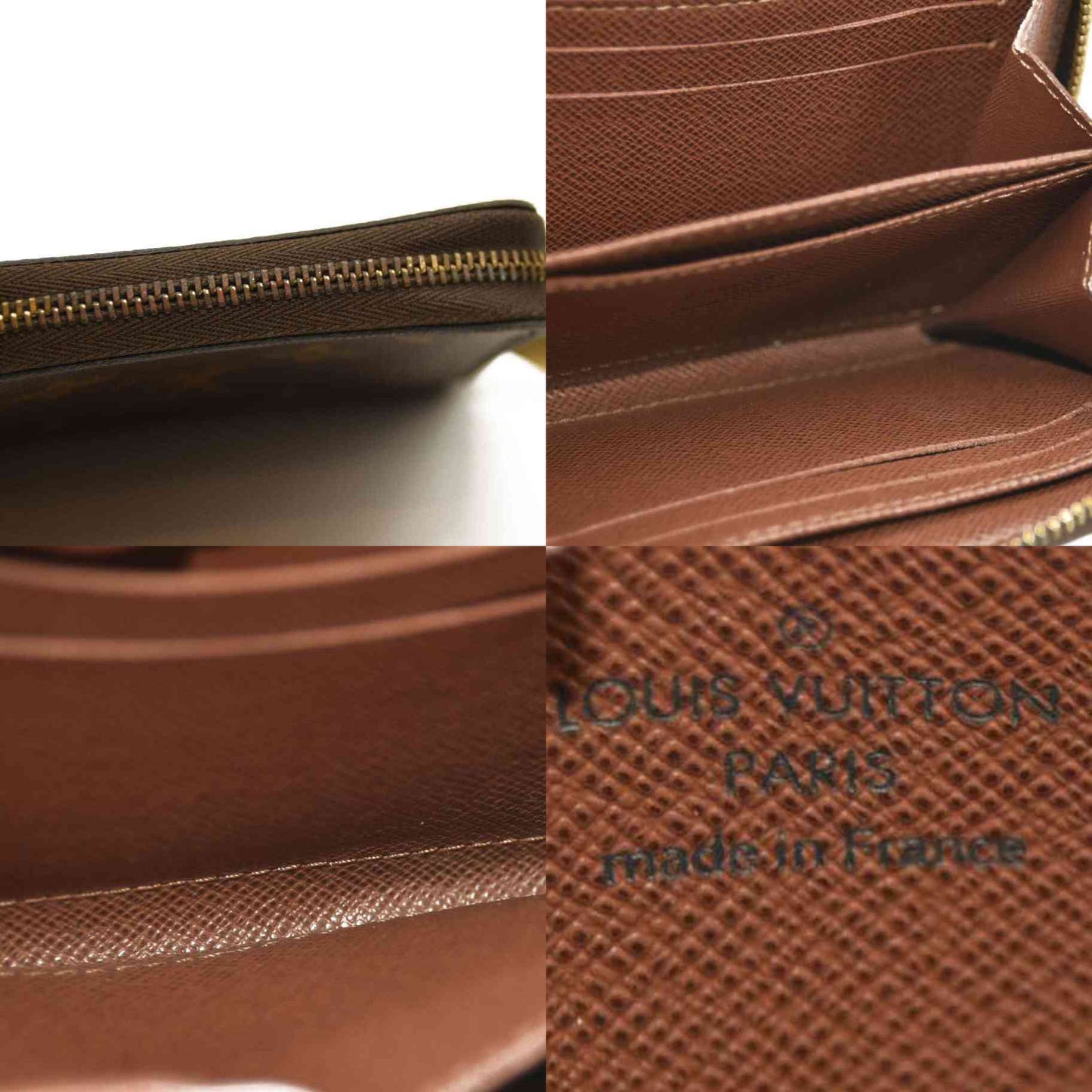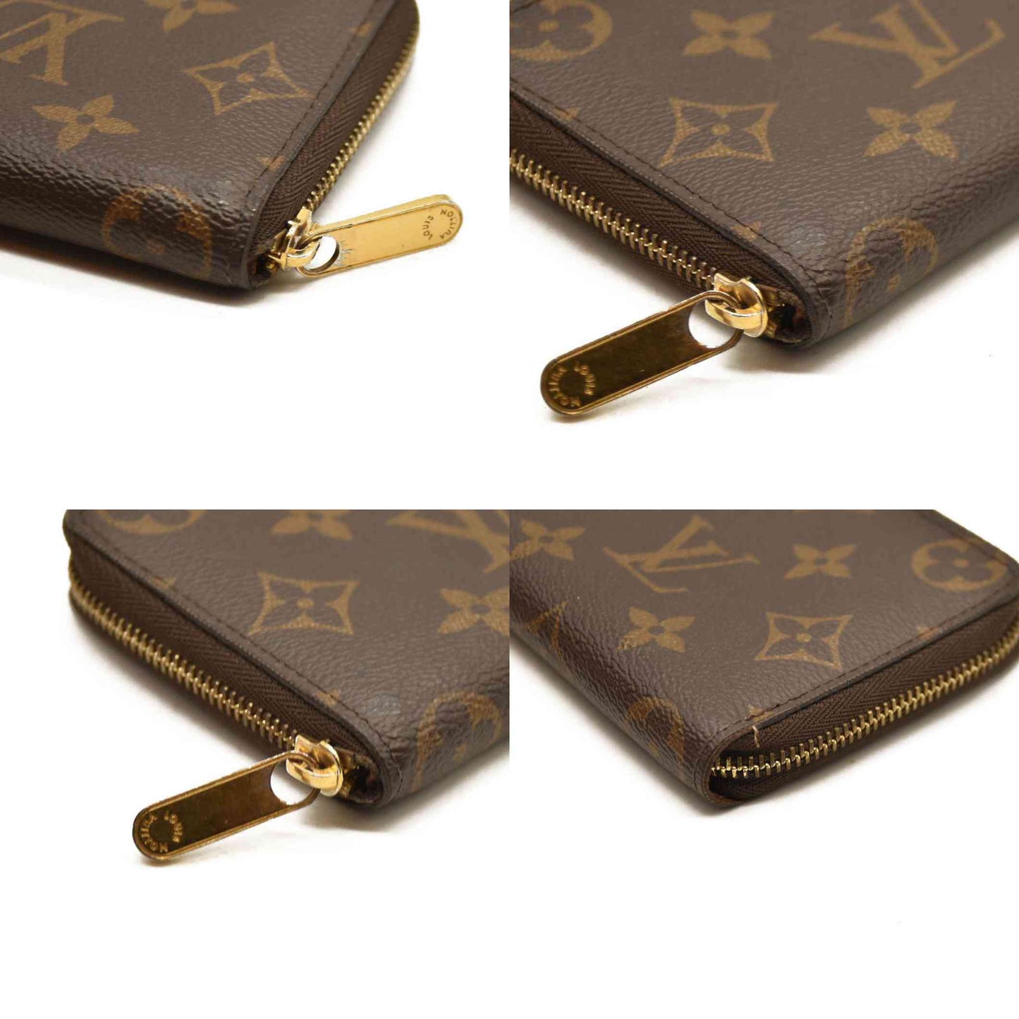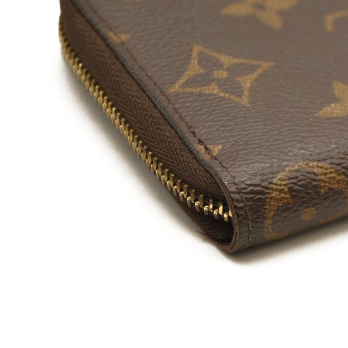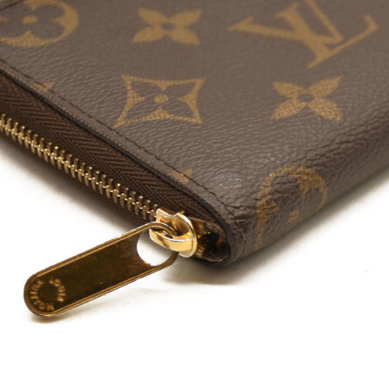 This is an authentic LOUIS VUITTON Monogram Zippy Coin Purse. This chic wallet is crafted of traditional Louis Vuitton monogram toile canvas. The gold 3/4 zipper opens to a cross-grain terra cotta leather interior of card slots and patch pockets.