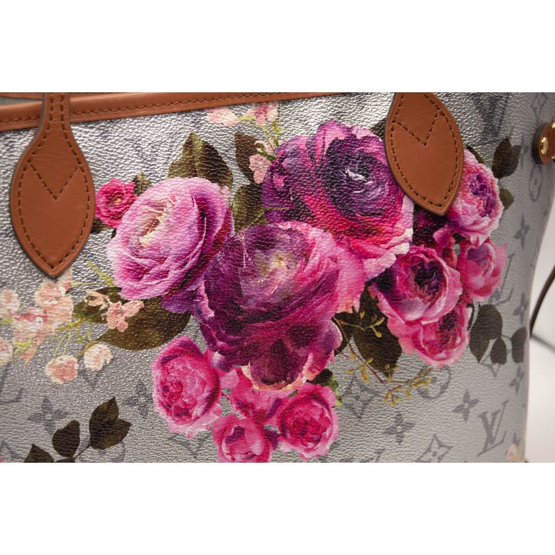 Louis Vuitton Neverfull Metallic Lv Garden Mm Silver Monogram Canvas Tote