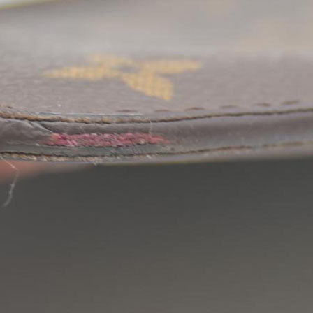 - Heavy patina at handle; moderate patina at trim; moderate marking at interior; moderate residue at interior; moderate peeling at trim; minor creasing at exterior; shape has relaxed due to wear
