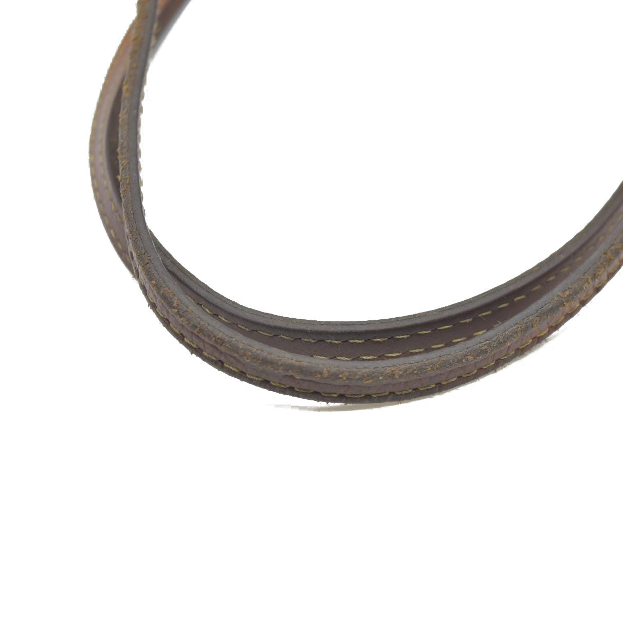 - Heavy patina at handle; moderate patina at trim; moderate marking at interior; moderate residue at interior; moderate peeling at trim; minor creasing at exterior; shape has relaxed due to wear
