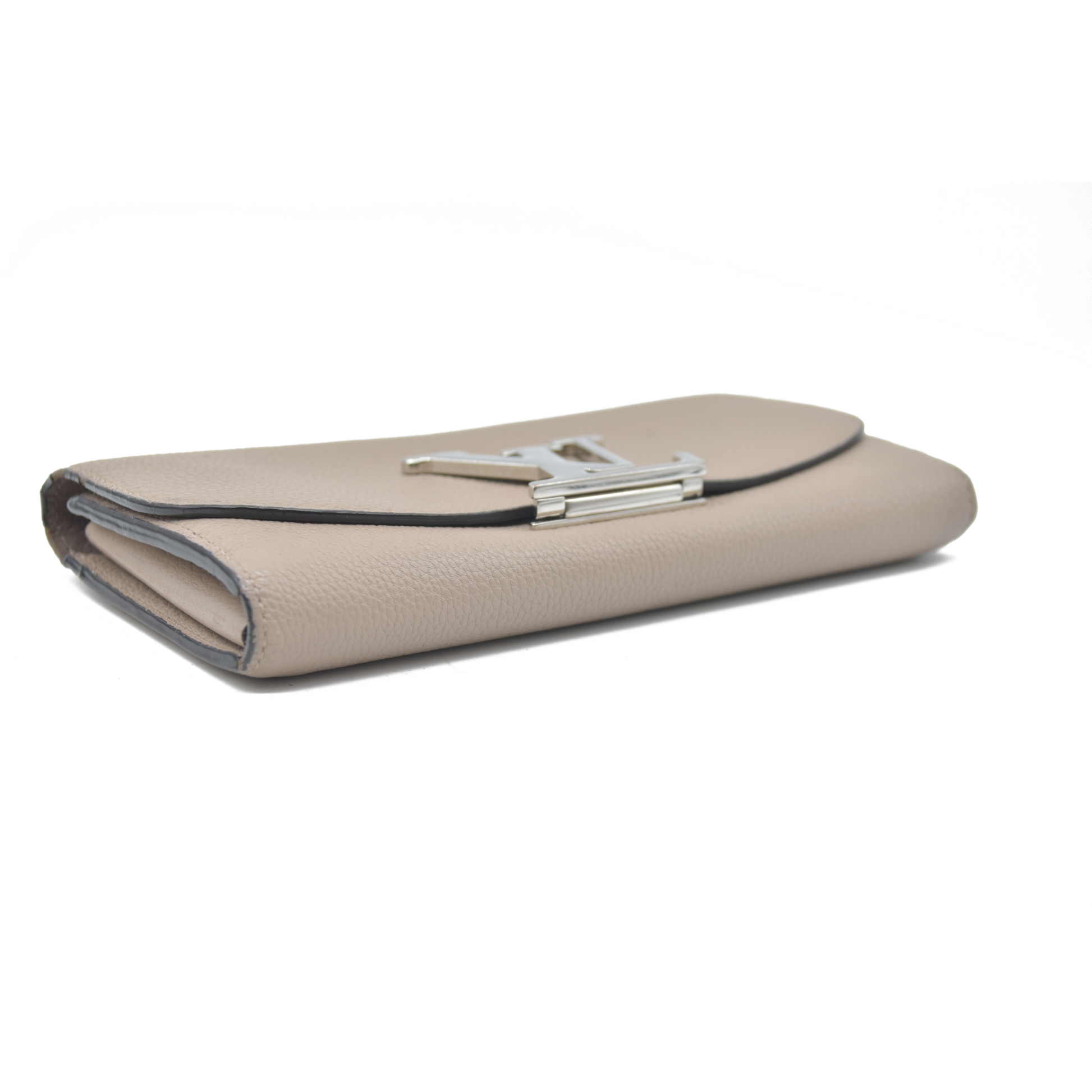This stunning long wallet exudes elegance. Louis Vuitton has taken inspiration from Parnassus, known as the mythical dwelling place of the muses. Crafted out of beautiful leather, the leather is soft to the touch with a discreet sheen along with a extra large silvertone metallic LV logo closure. The interior is lined with contrasting goatskin and boasts two card slots under the flap, six card slots inside. We have fallen head over heels for this stunning Vivienne Long wallet. Retail price is $2090.