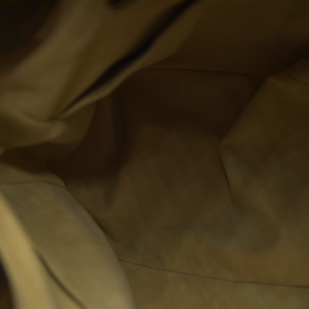CONDITION: Moderate discoloration at interior, chip on the snakeskin top handle, scratches on hardware, ink mark/stain in pocket