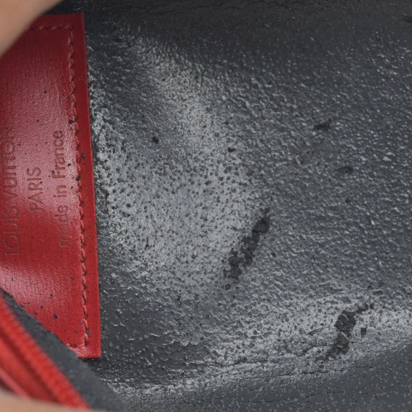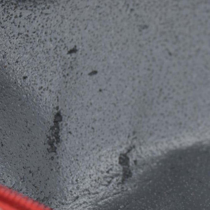 Heavy discoloration at exterior; heavy pilling at interior; minor pulling at interior; minor scuffs at exterior. Sticky/ peeling interior lining