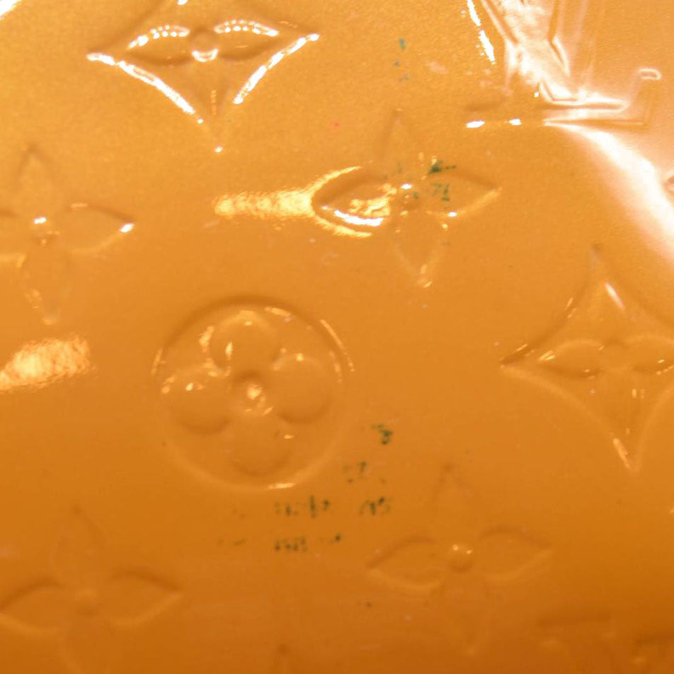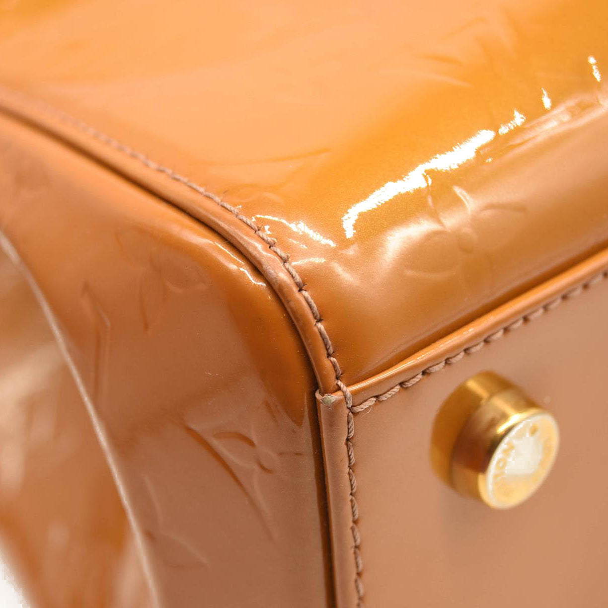 This is an authentic LOUIS VUITTON Vernis Brea GM in Bronze. This sophisticated tote is crafted of beige monogram-embossed patent leather with vachetta leather handles, leather trim, and brass hardware. The top zipper opens to a dark purple canvas interior with zipper and patch pockets.