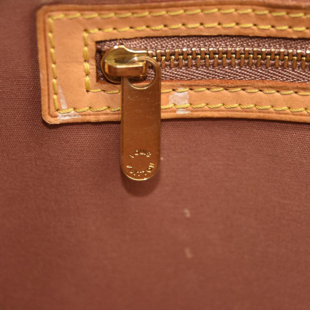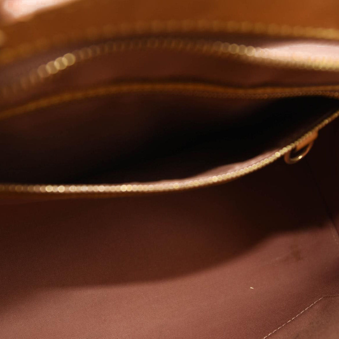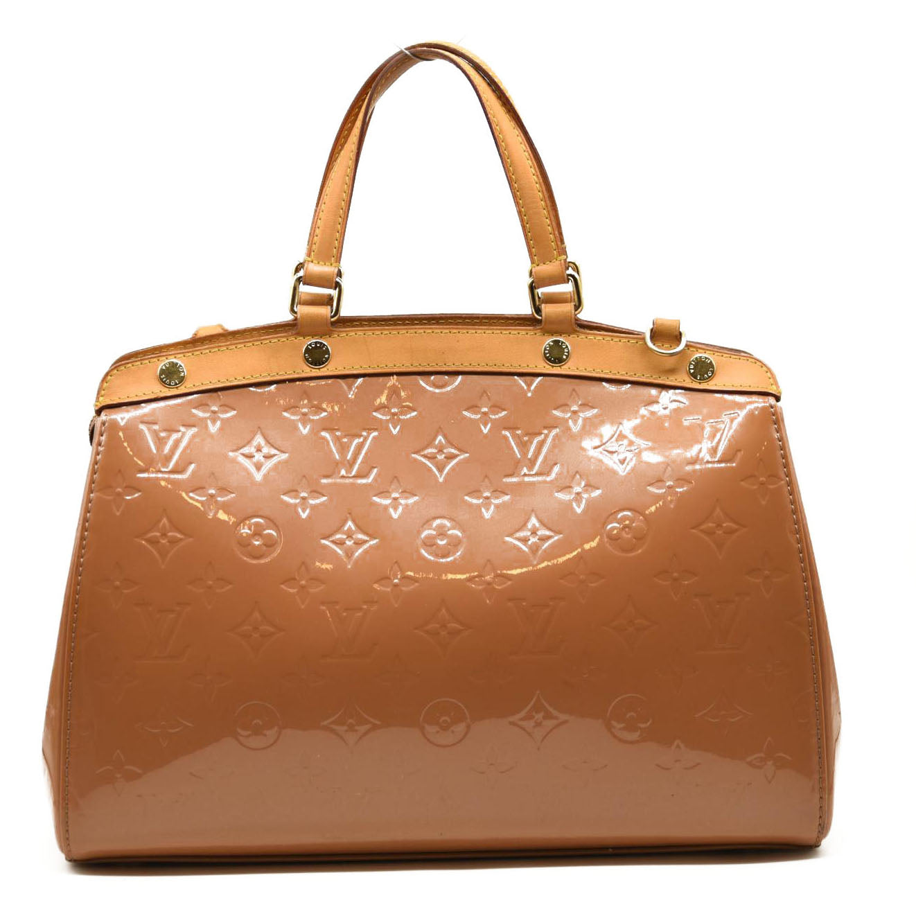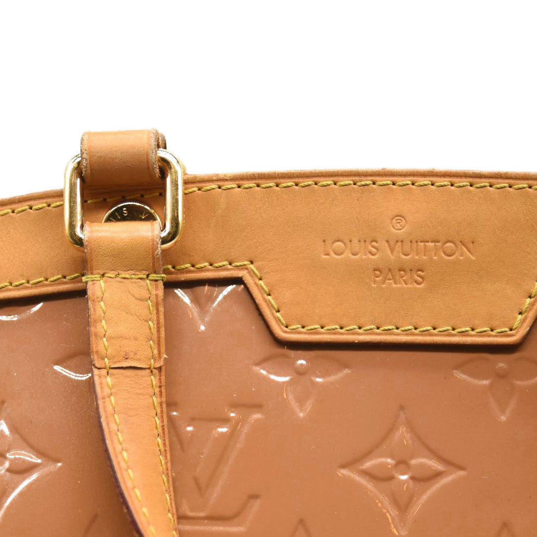 This is an authentic LOUIS VUITTON Vernis Brea MM in Rose Velours. This sophisticated tote is crafted of pink monogram-embossed patent leather with vachetta leather handles, leather trim, and brass hardware. The top zipper opens to interior of beige canvas with zipper and patch pockets.