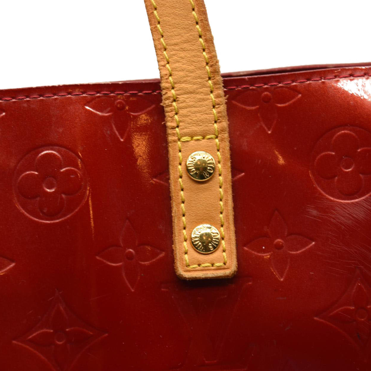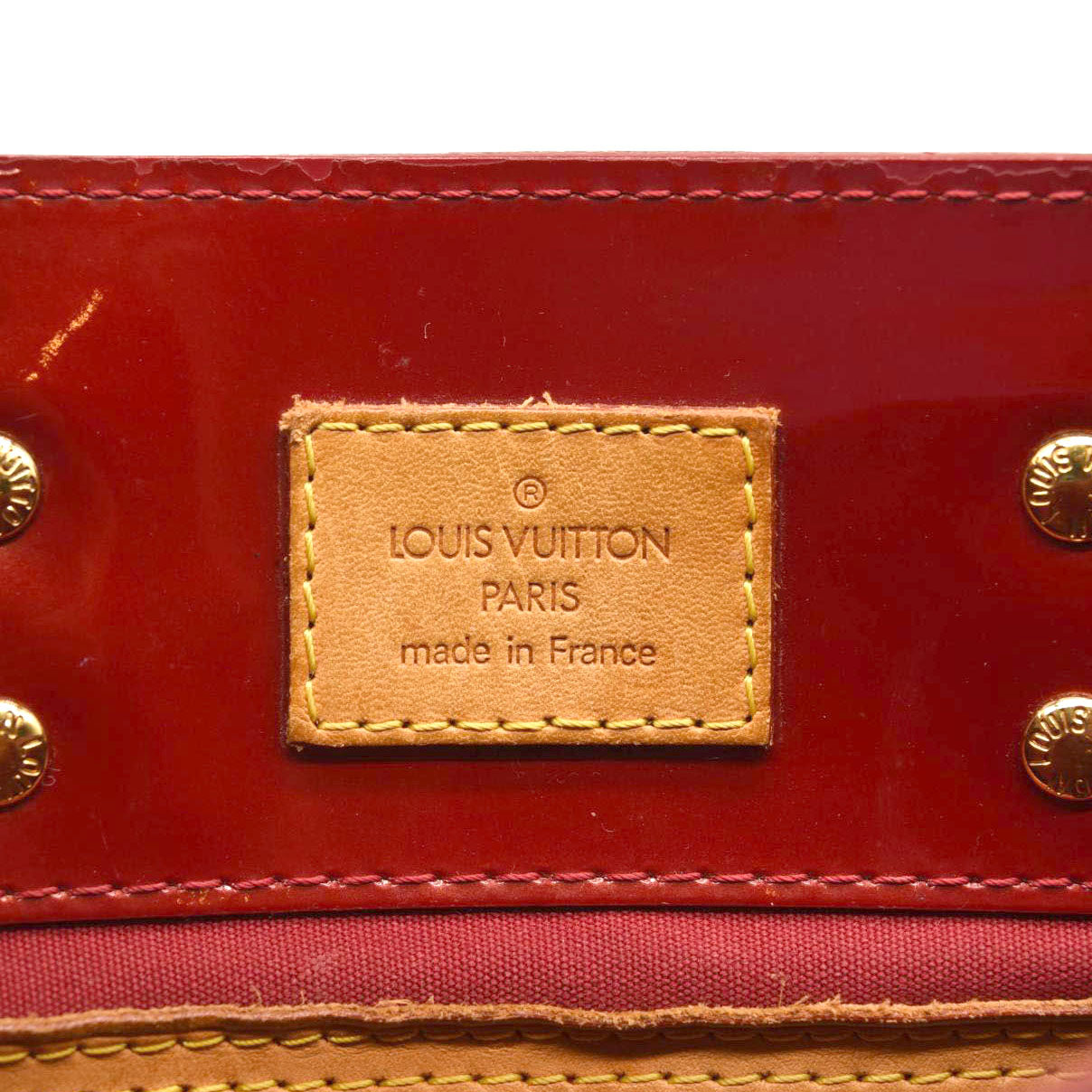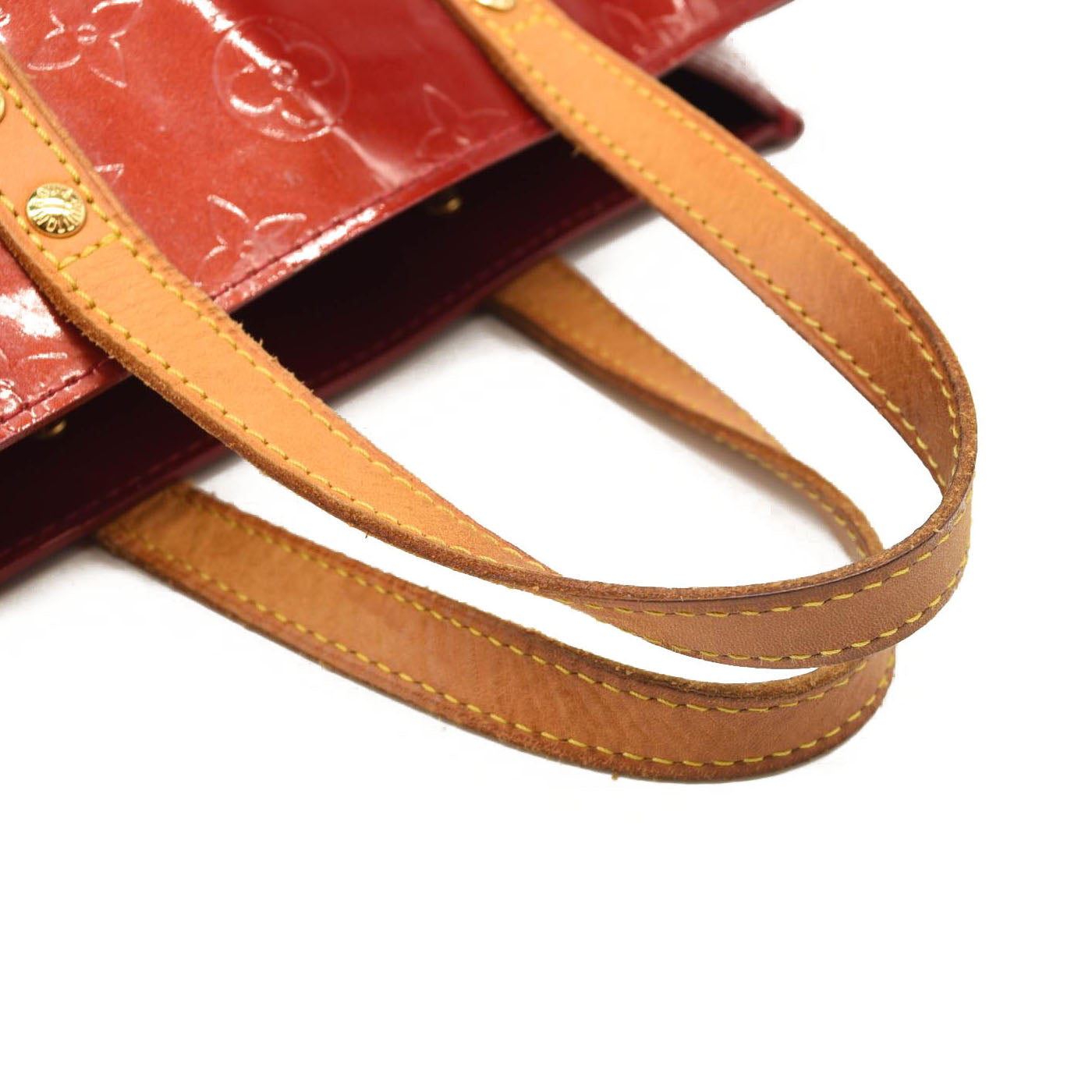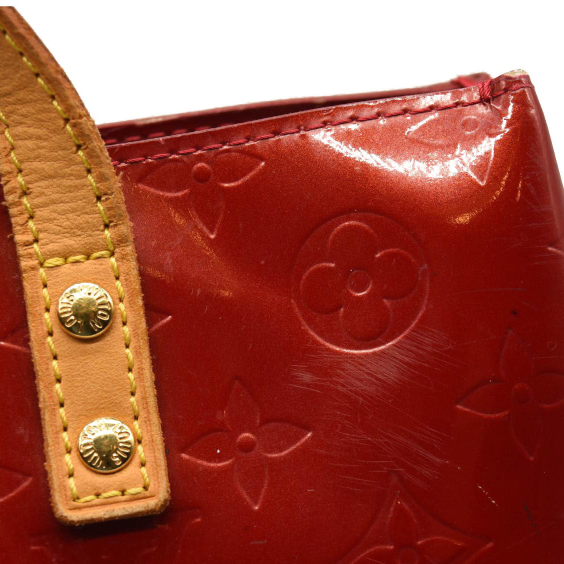 This is the stunning and authentic LOUIS VUITTON Vernis Reade PM in Rouge Red. It is a structured bag of durable glossy vernis patent leather embossed with the Louis Vuitton monogram, here in a lovely red. The handles are a durable vachetta cowhide leather and are comfortable and sturdy with bronze studs. The interior is a lovely rouge fabric with a zipper pocket. This is an ideal bag for day or evening from Louis Vuitton!