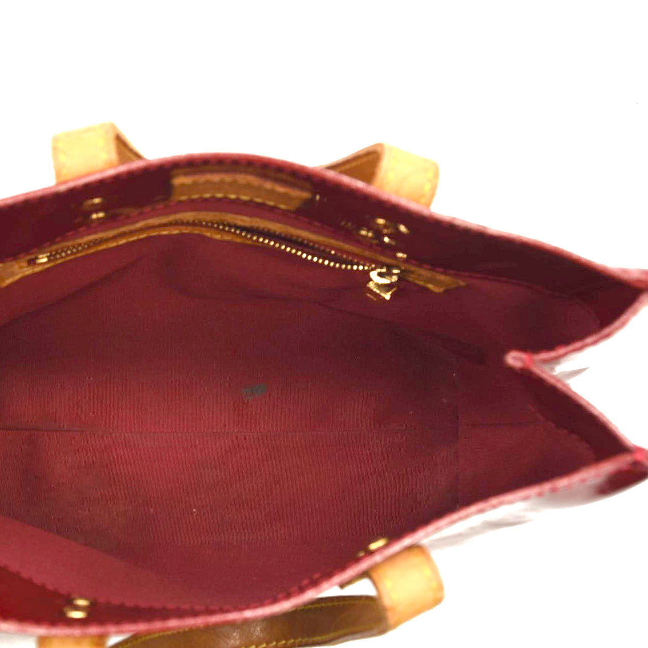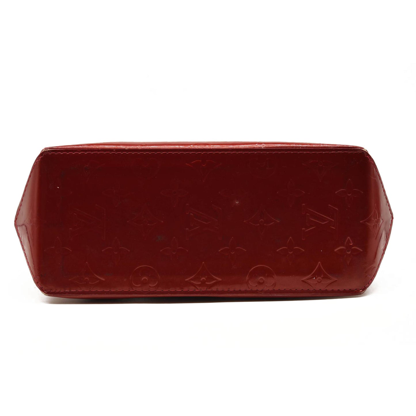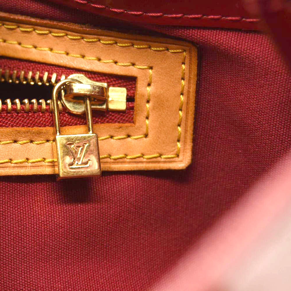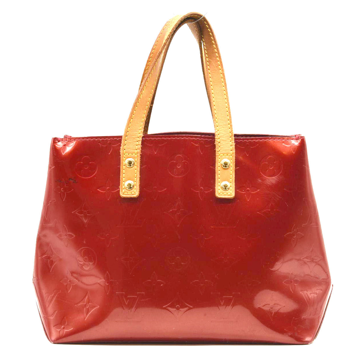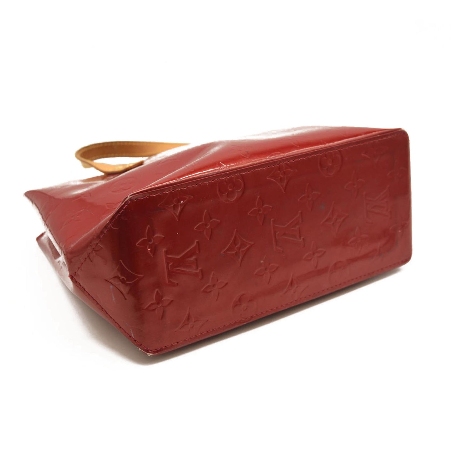 This is the stunning and authentic LOUIS VUITTON Vernis Reade PM in Rouge Red. It is a structured bag of durable glossy vernis patent leather embossed with the Louis Vuitton monogram, here in a lovely red. The handles are a durable vachetta cowhide leather and are comfortable and sturdy with bronze studs. The interior is a lovely rouge fabric with a zipper pocket. This is an ideal bag for day or evening from Louis Vuitton!