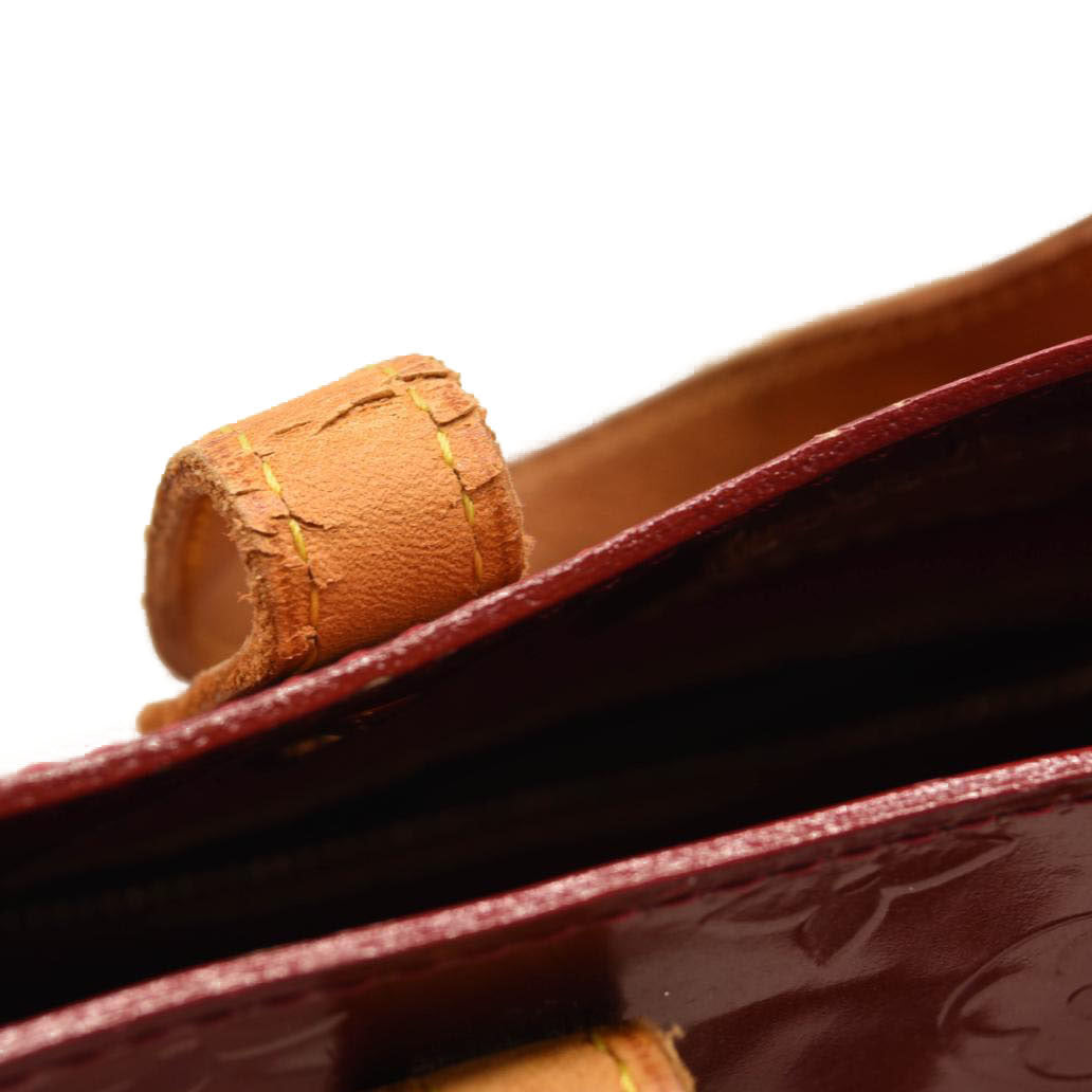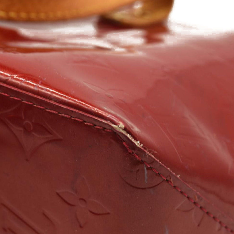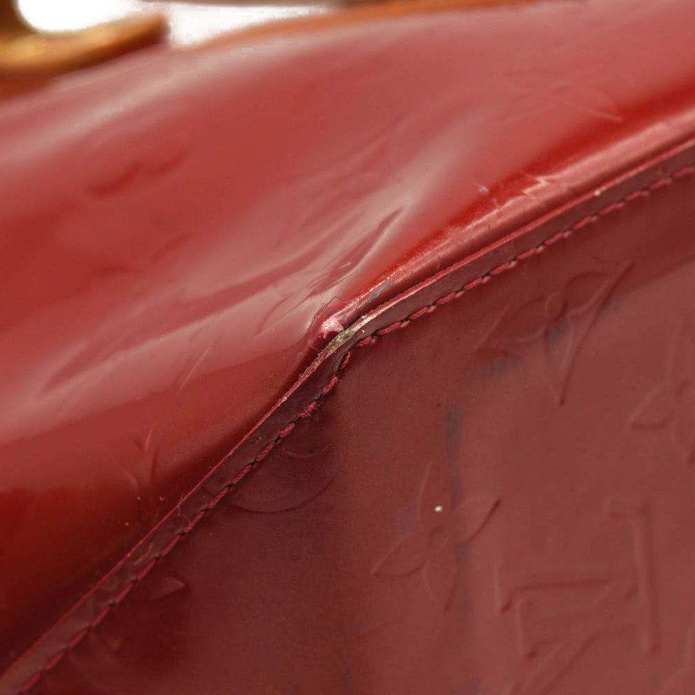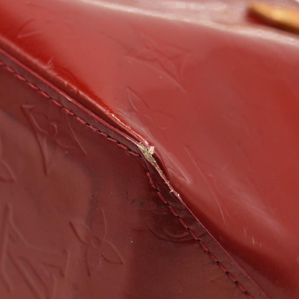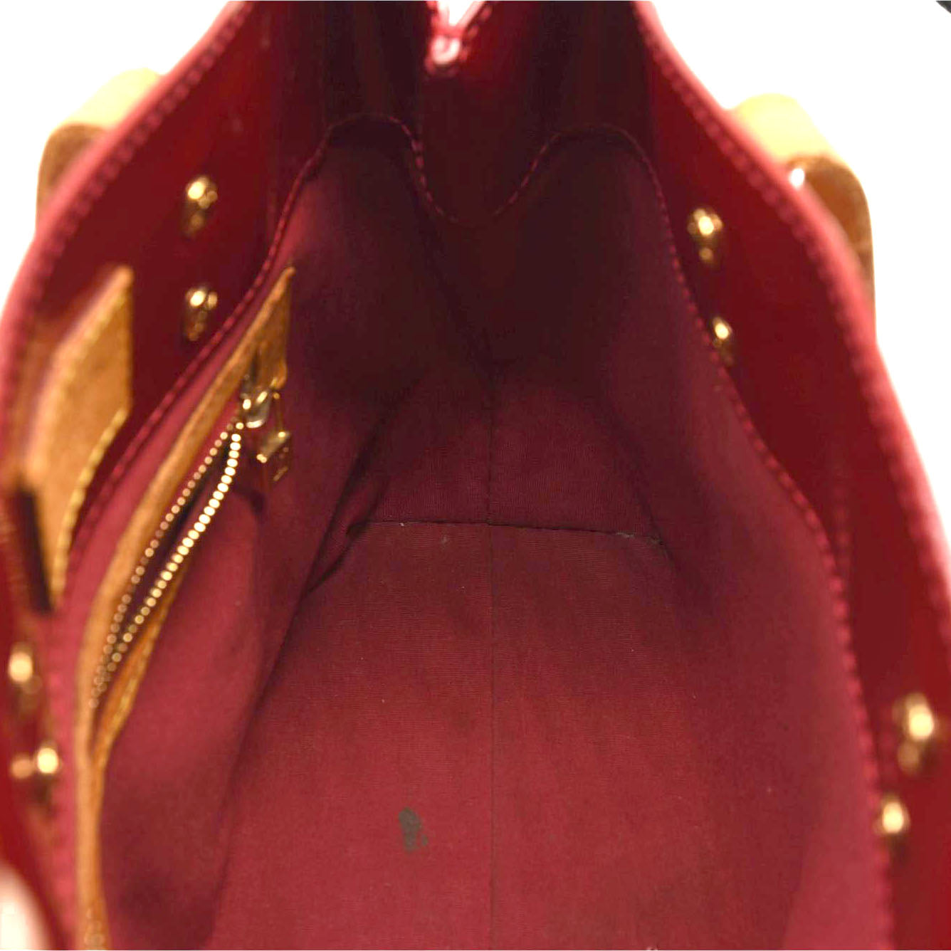 This is the stunning and authentic LOUIS VUITTON Vernis Reade PM in Rouge Red. It is a structured bag of durable glossy vernis patent leather embossed with the Louis Vuitton monogram, here in a lovely red. The handles are a durable vachetta cowhide leather and are comfortable and sturdy with bronze studs. The interior is a lovely rouge fabric with a zipper pocket. This is an ideal bag for day or evening from Louis Vuitton!