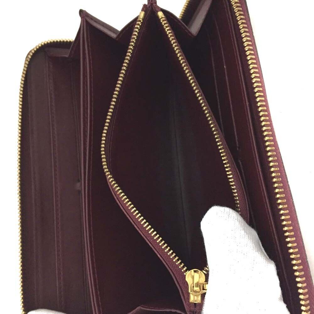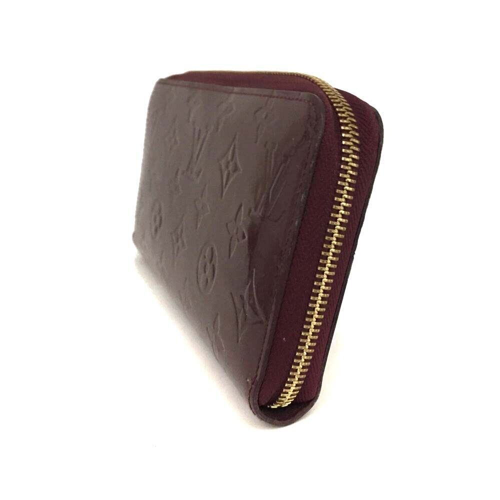 This is an authentic LOUIS VUITTON Vernis Zippy Wallet in Rouge Fauviste. This wallet is crafted of patent leather embossed with the Louis Vuitton monogram in deep purple. The wallet has a sturdy gold zipper that wraps 3/4 of the wallet and opens to an interior of matching matte leather with card slots, flat pockets, and a zipper compartment.