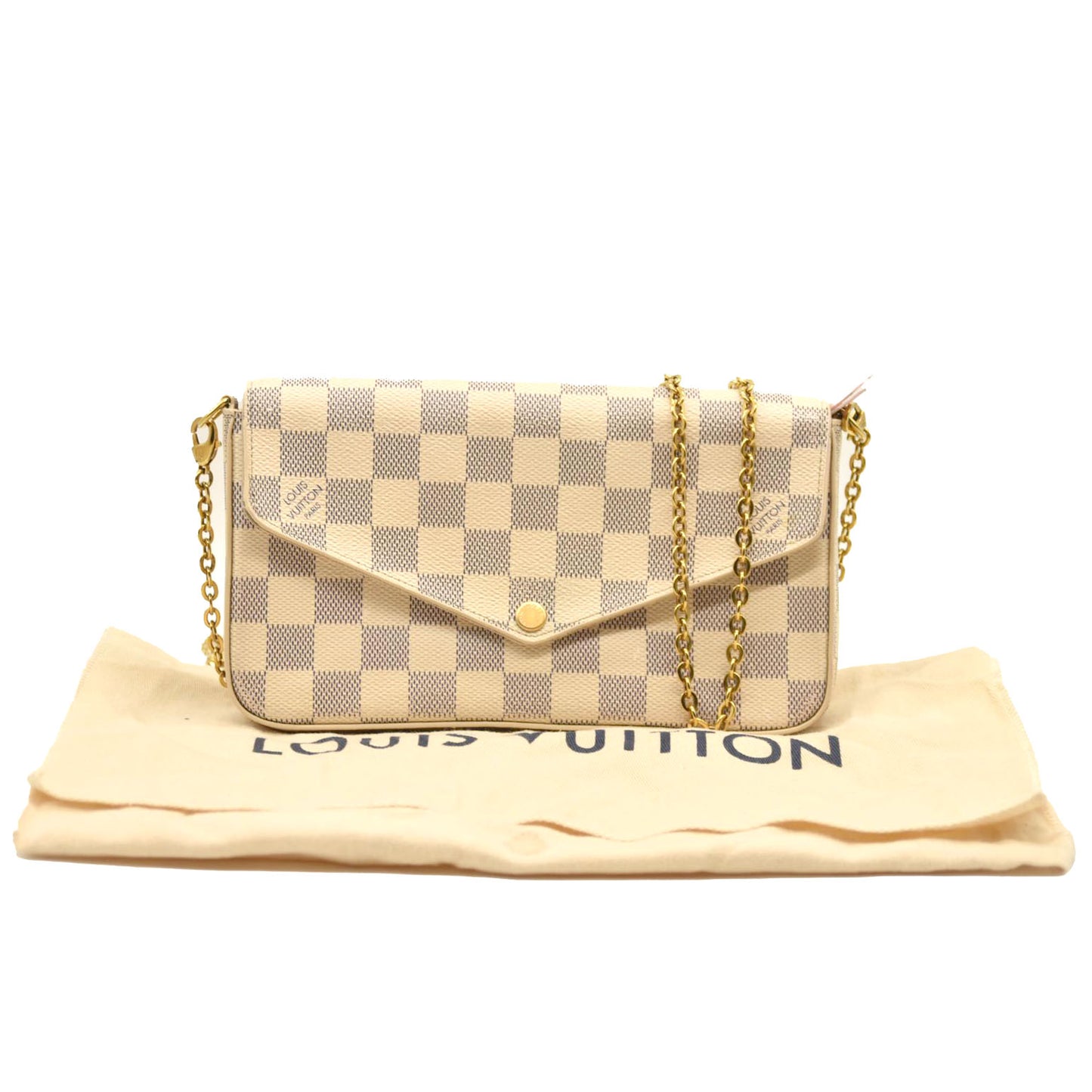 MI3158 LOUIS VUITTON Damier Azur Pochette Felicie Chain Wallet Rose Ballerine