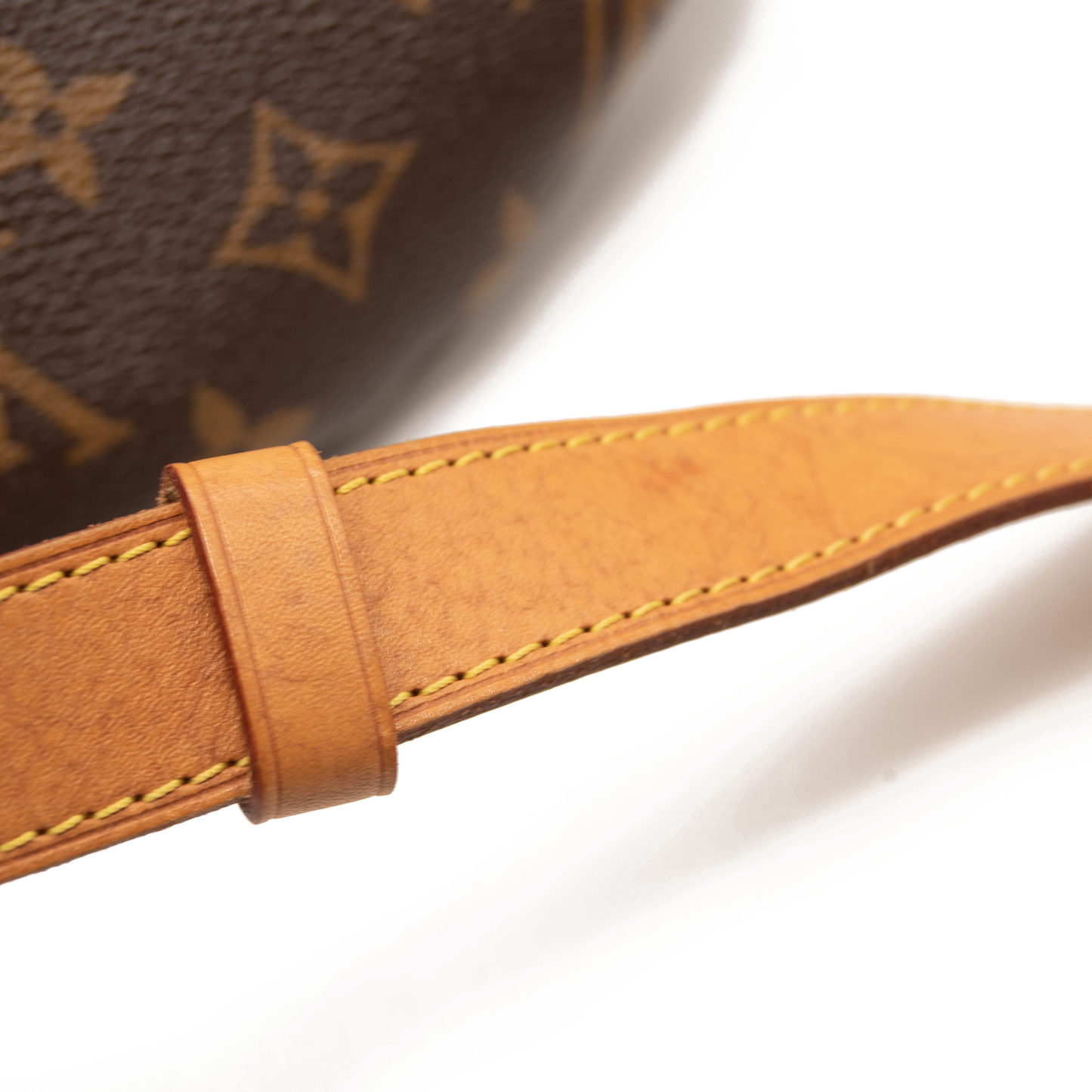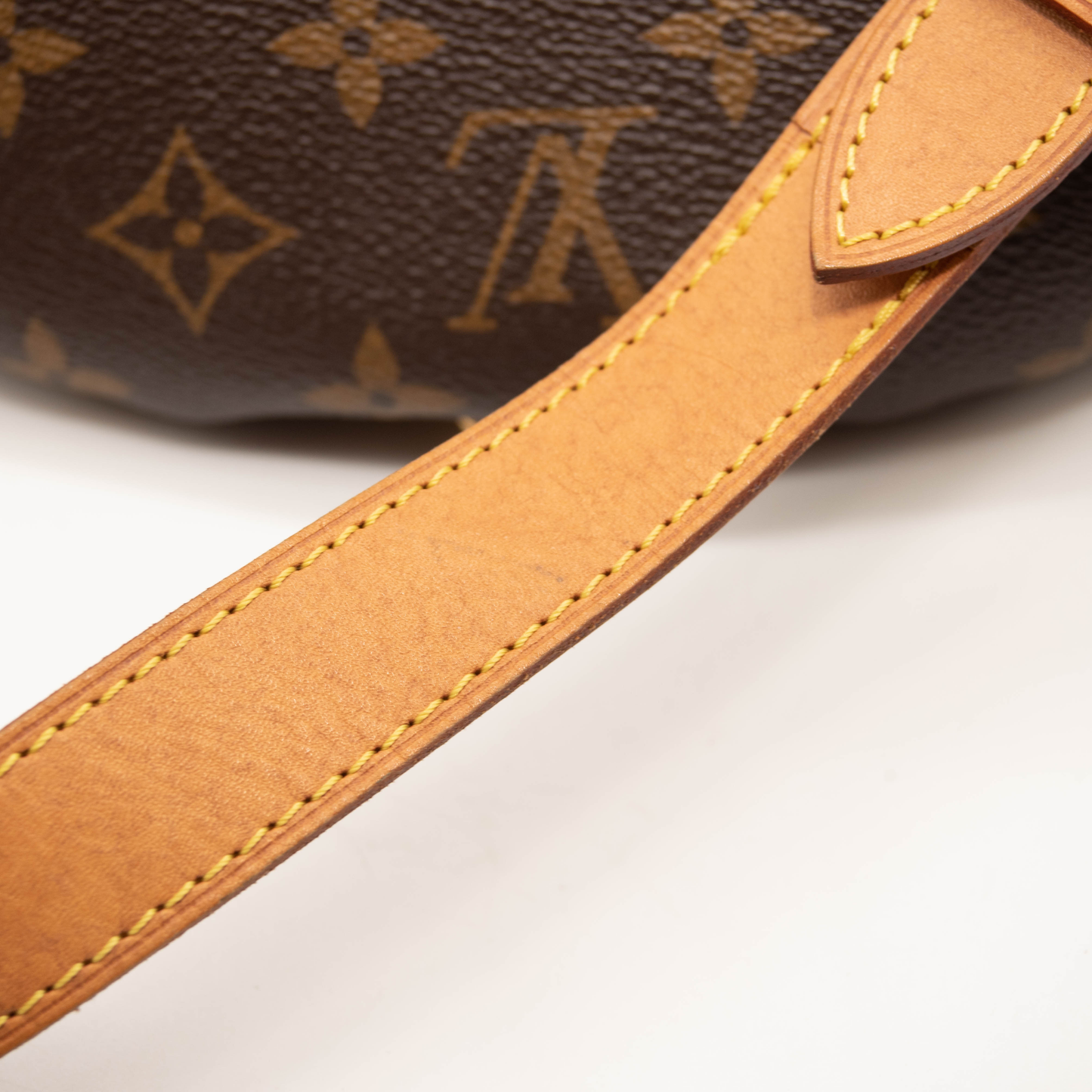 This is an authentic LOUIS VUITTON Monogram Bumbag. This stylish belt bag is created out of traditional Louis Vuitton monogram on toile canvas. The bag features a vachetta cowhide leather top handle, an adjustable waist strap, and a rear zipper pocket. The main zipper opens to a black fabric interior.