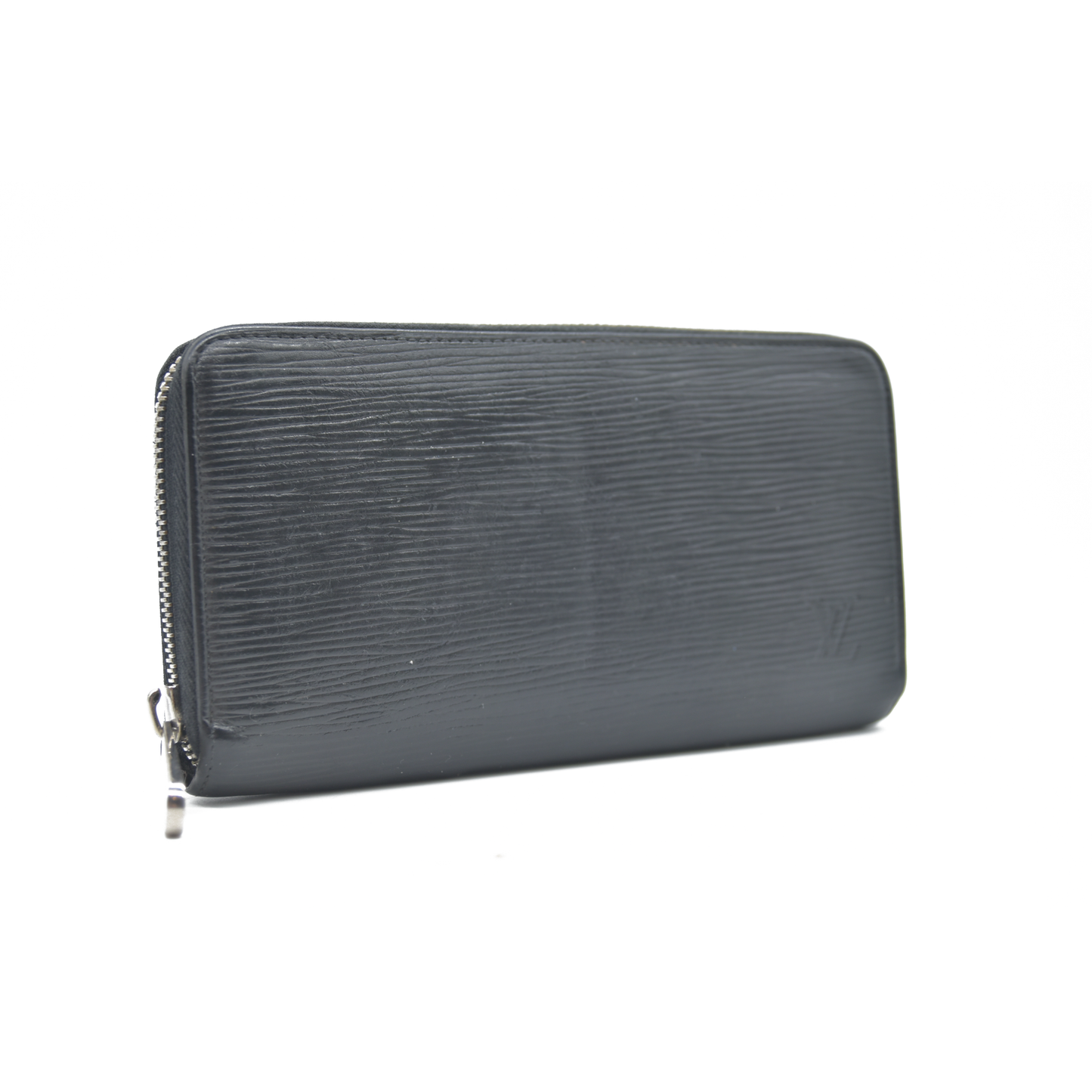 This is an authentic LOUIS VUITTON Epi Leather Zippy Wallet in Noir Black. This stylish wallet is crafted of Louis Vuitton signature textured Epi leather. The wallet features a wrap around zipper that opens to a compact interior with card slot panels, a zipper partition pocket, and a patch partition pocket. This is an excellent wallet for everyday use with the luxury and style of Louis Vuitton!
