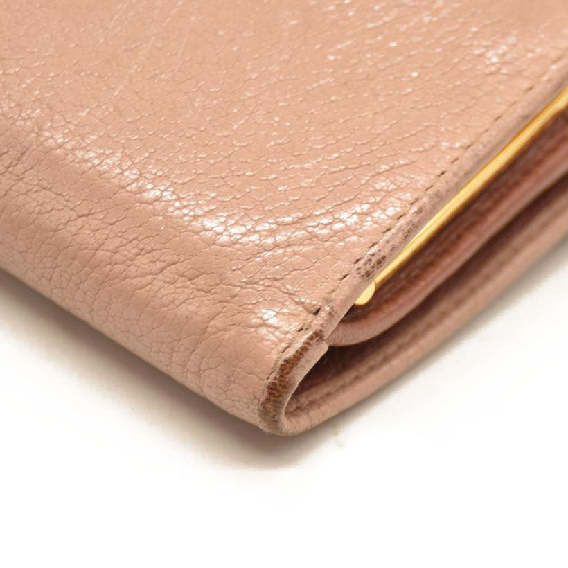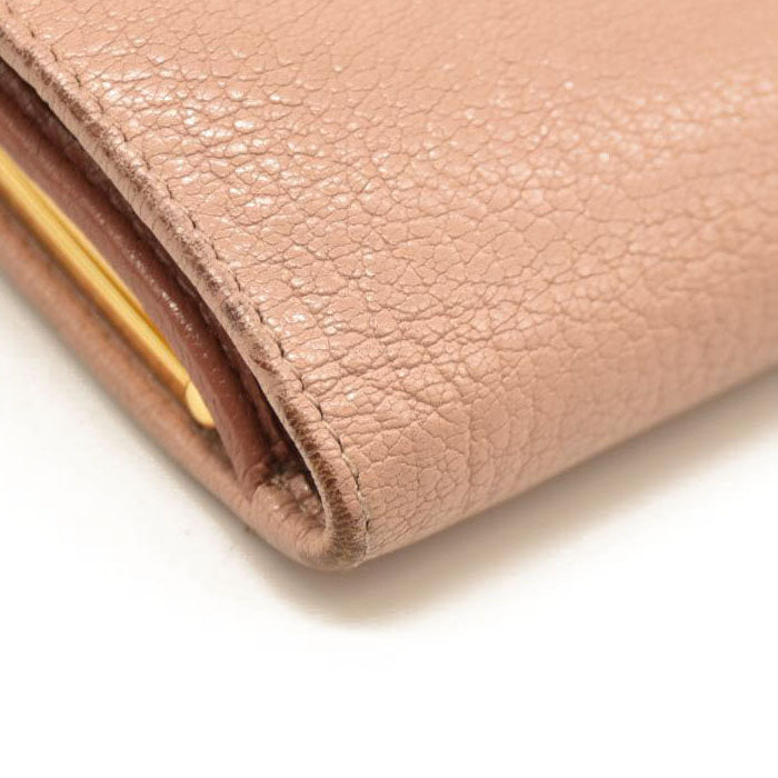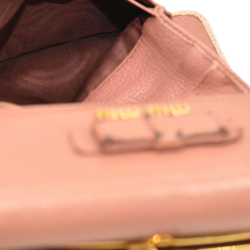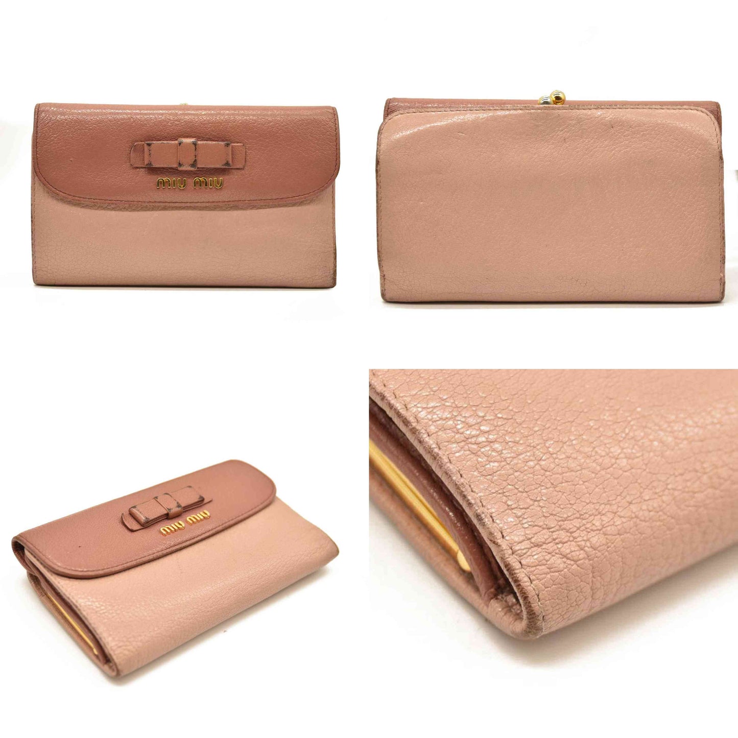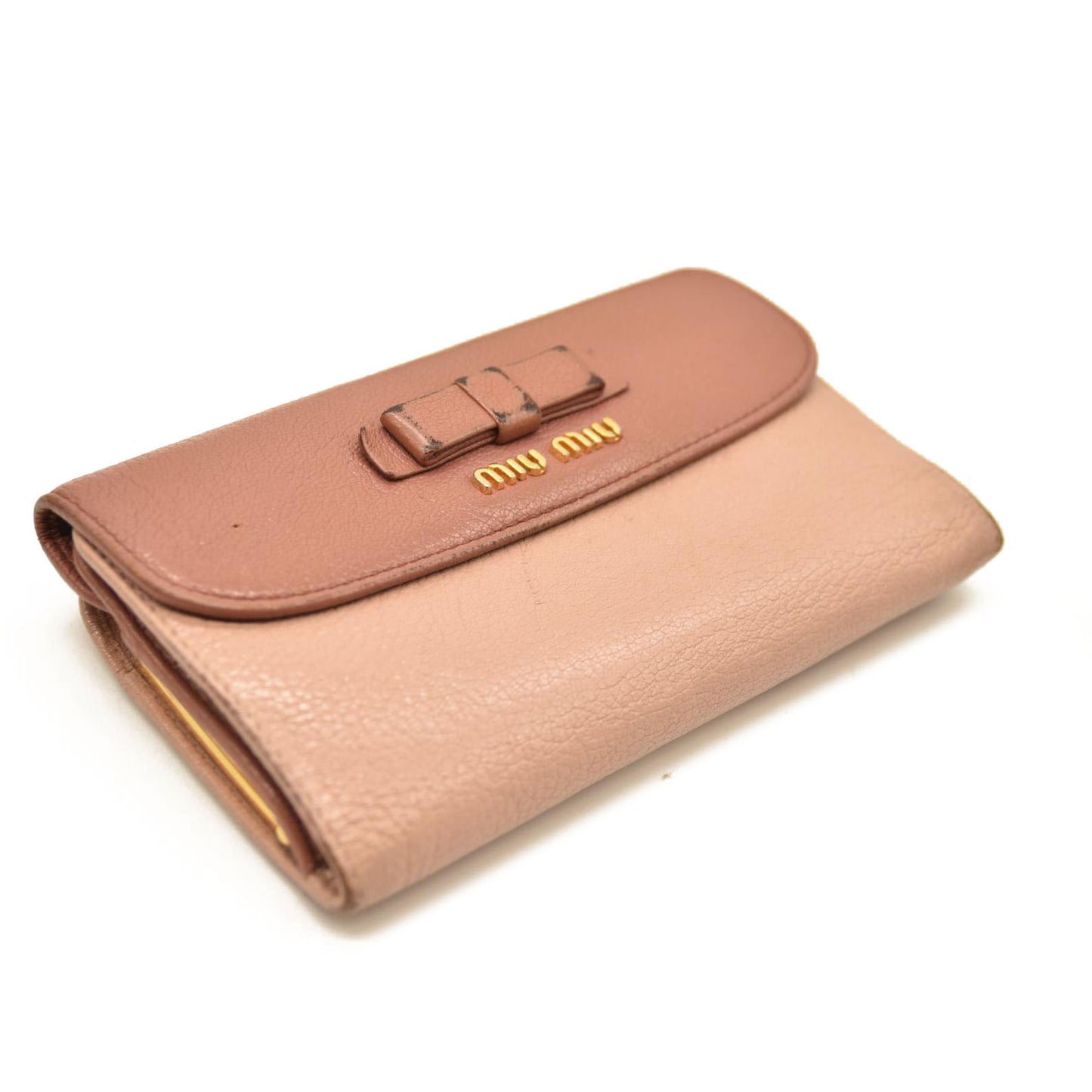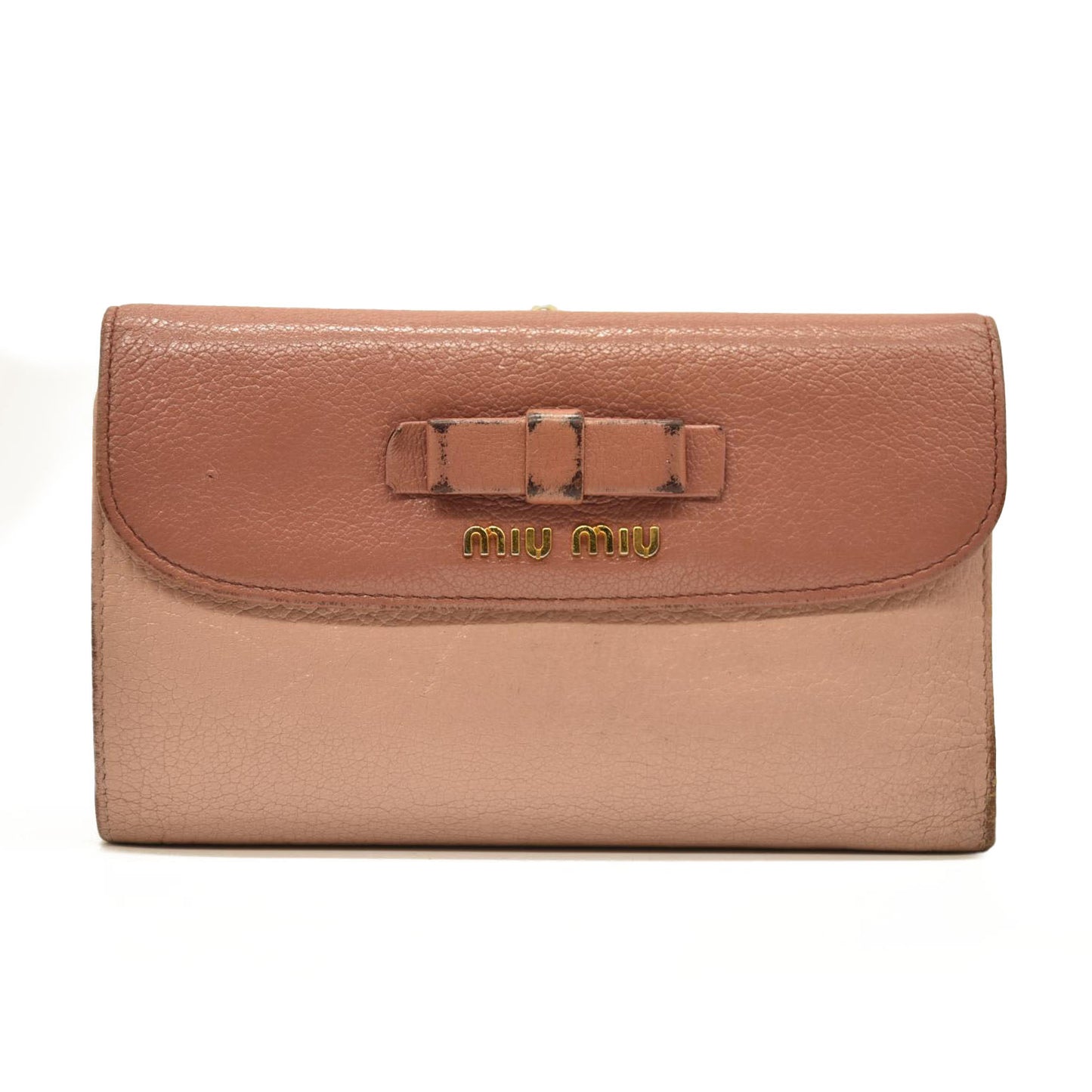 MIU MIU Logo Ribbon Madras Leather Long Trifold Wallet Bicolor