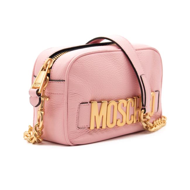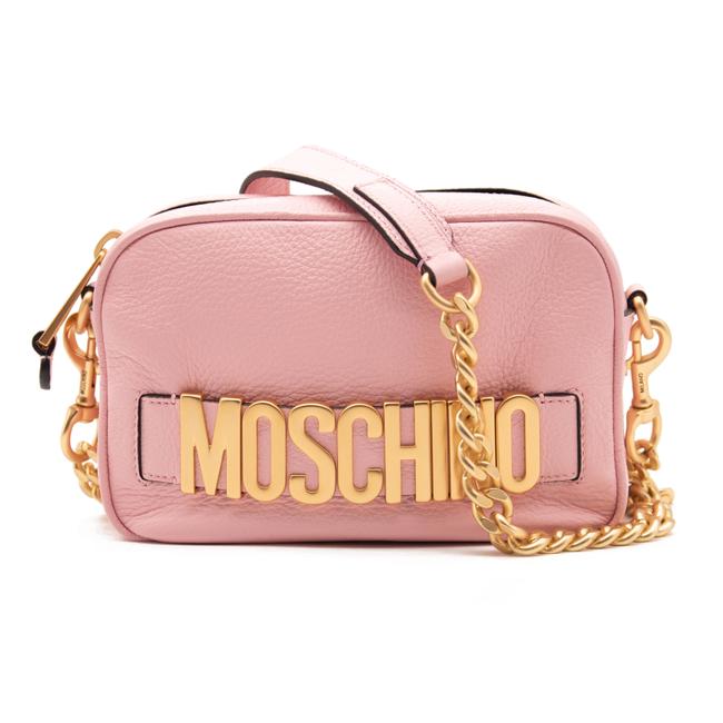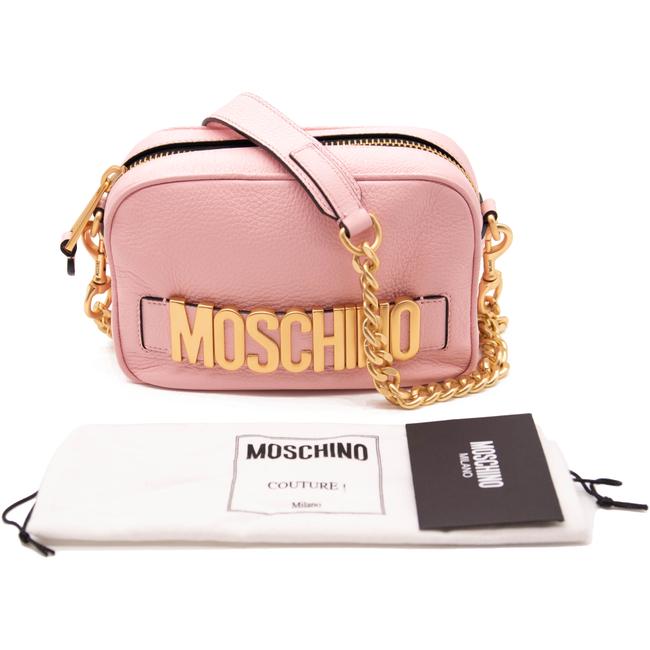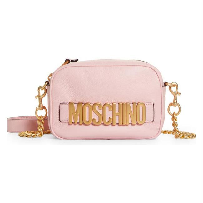 Moschino Clutch Camera Logo Convertible Cross Body Pink Leather Shoulder Bag