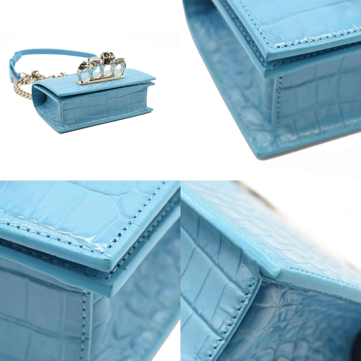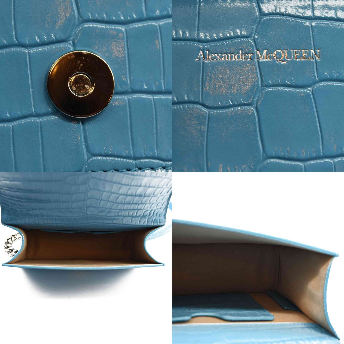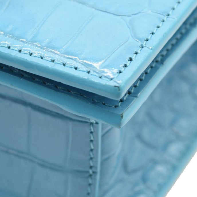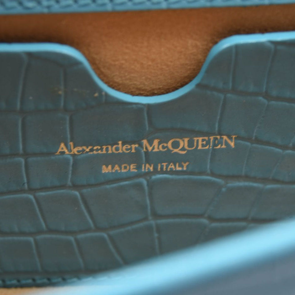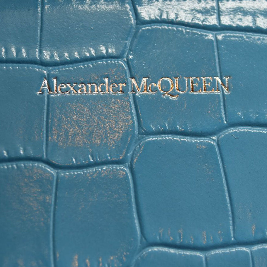NEW ALEXANDER MCQUEEN Shiny Crocodile Embossed Jeweled Satchel Blue