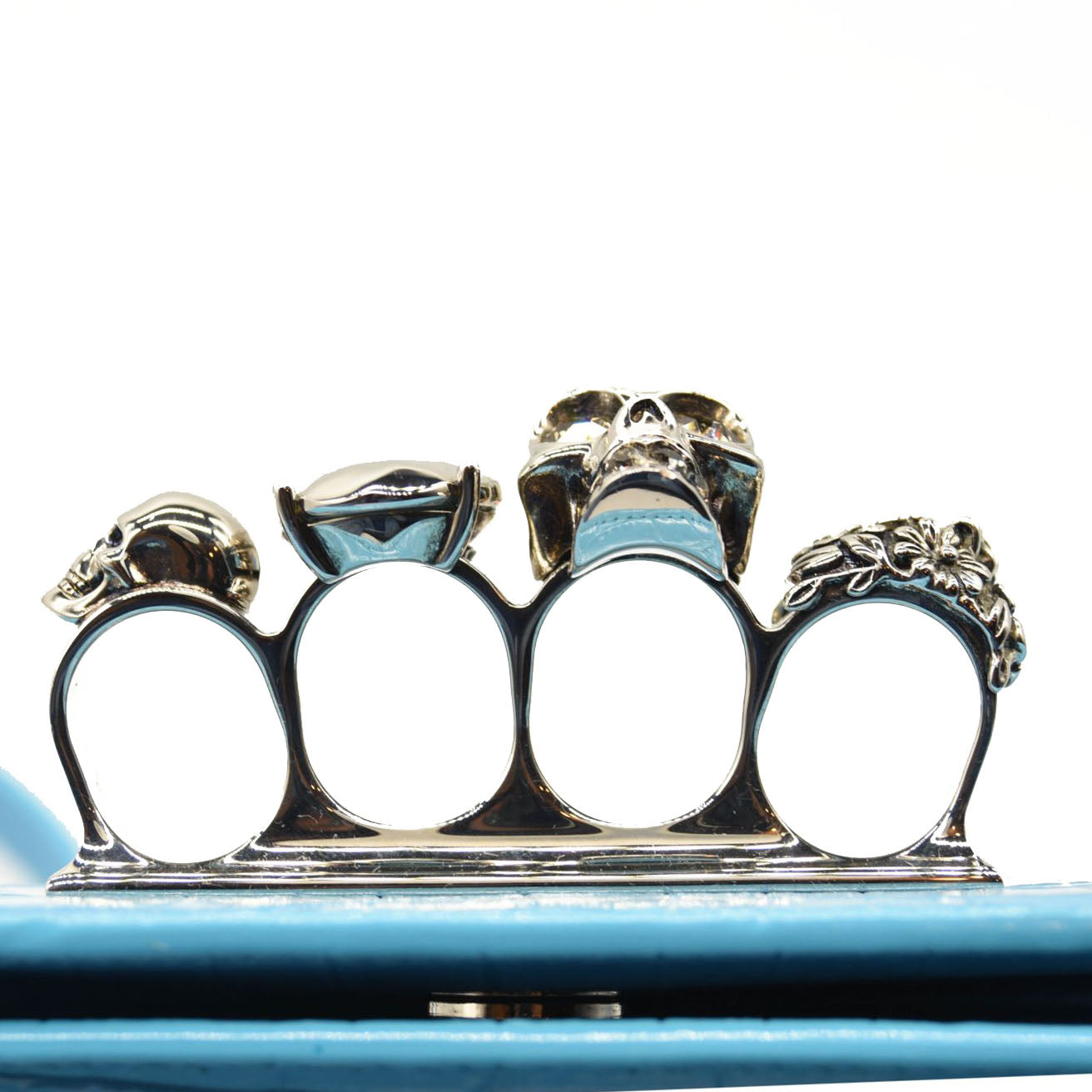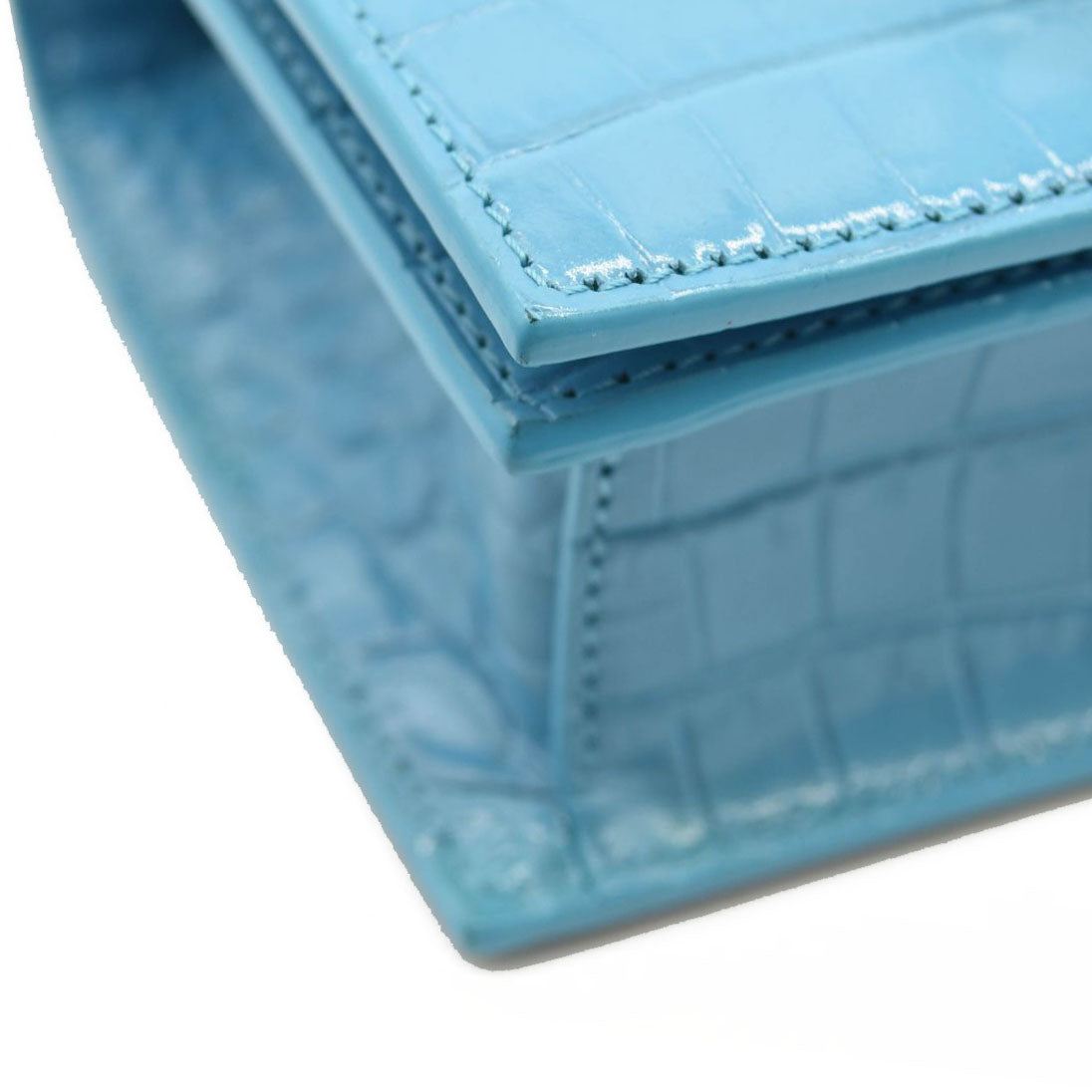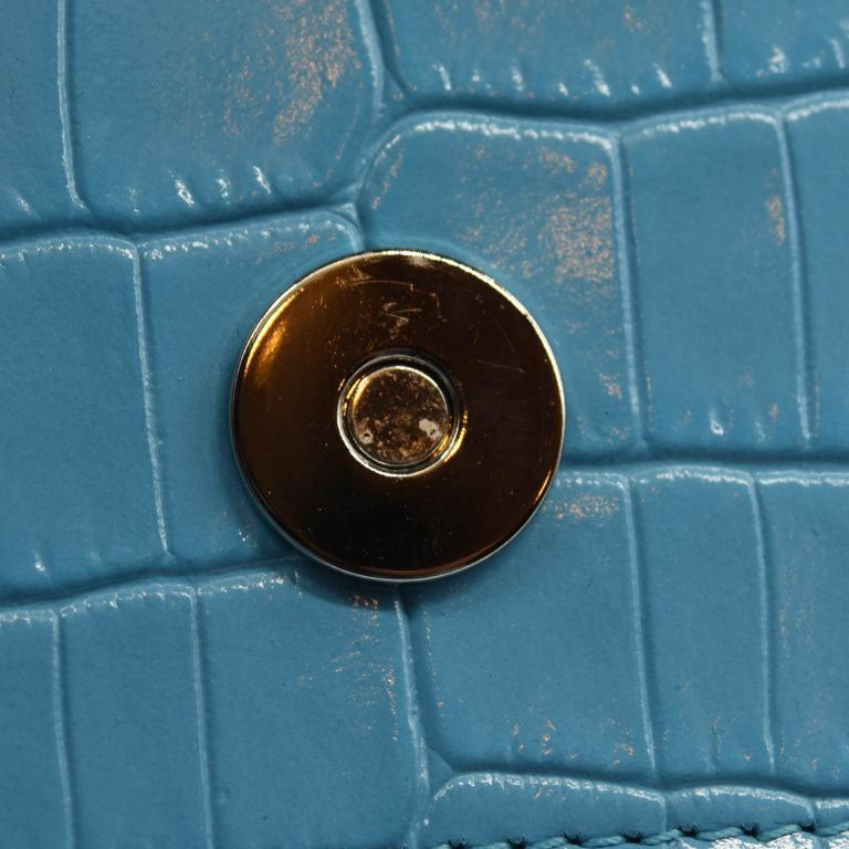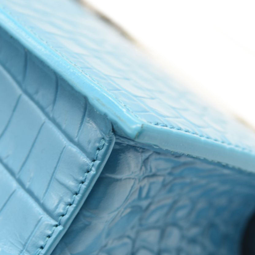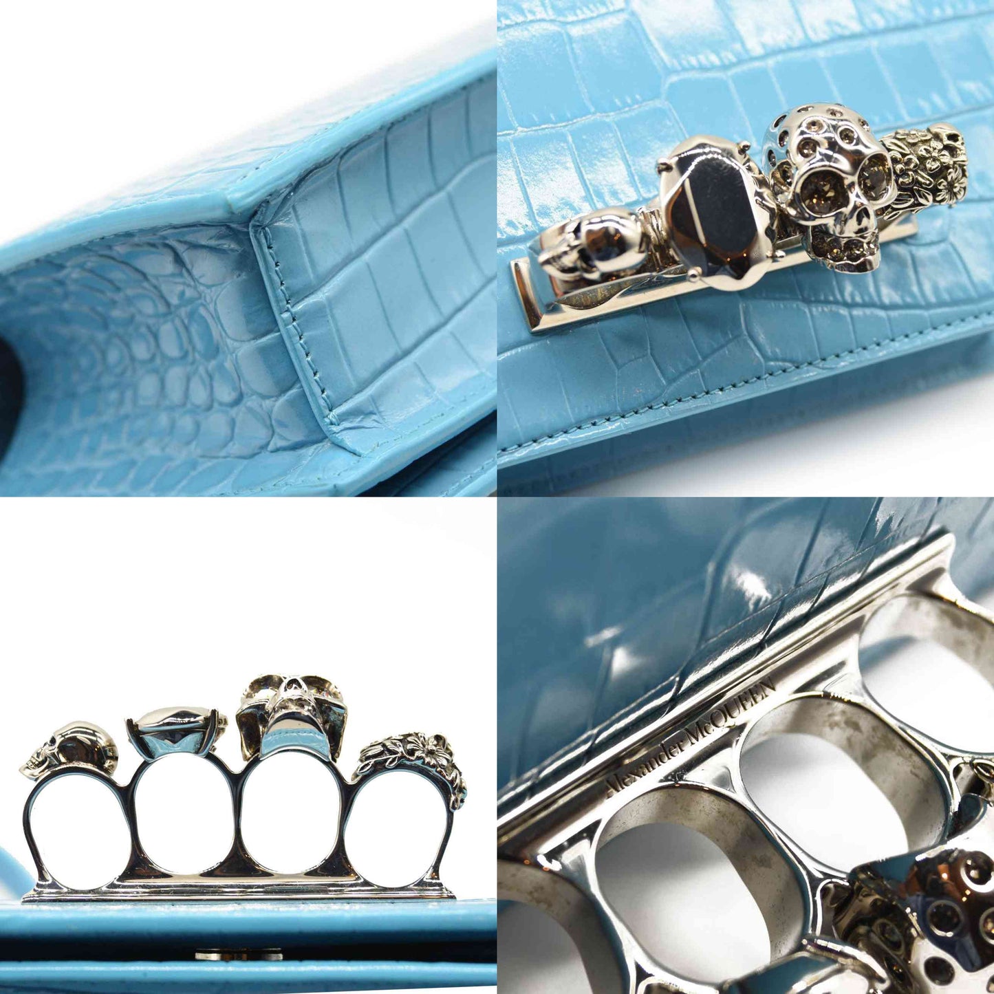 NEW ALEXANDER MCQUEEN Shiny Crocodile Embossed Jeweled Satchel Blue