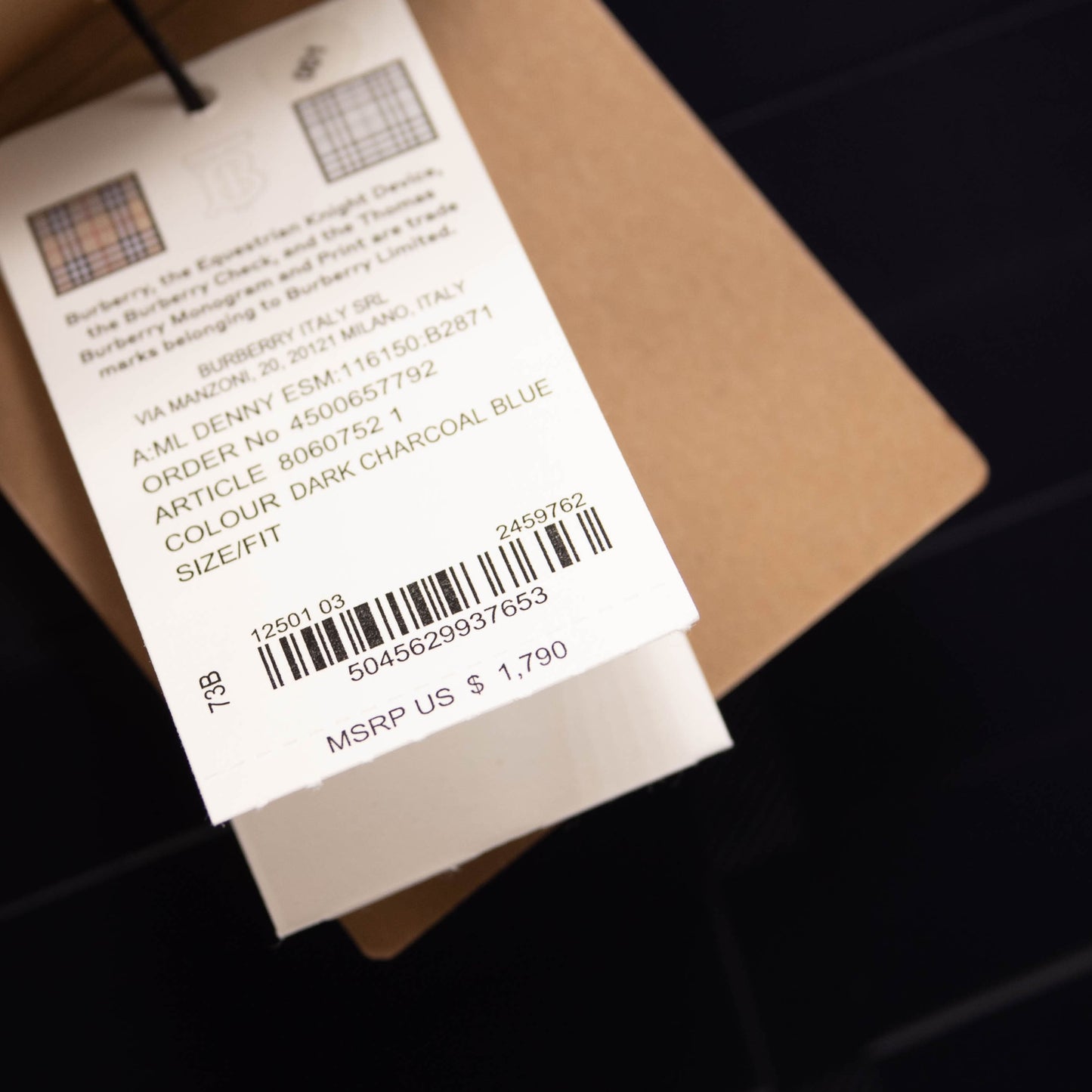 NEW Burberry Denny Embossed Check Leather Tote Blue Patent Dark Charcoal