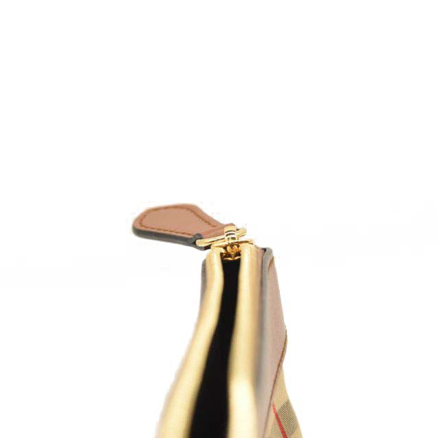 A Burberry clutch crafted in 100% polyamide horseferry check with a leather panel. This Burberry clutch features a main zip pocket, and 4 interior card slots; an adjustable/removable shoulder strap. Made in Italy. Dimnesions: 10.2" x 6.5".