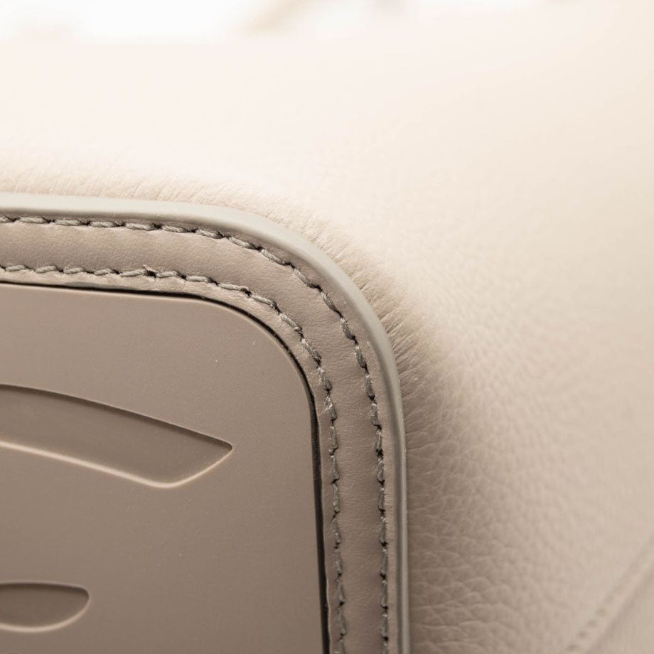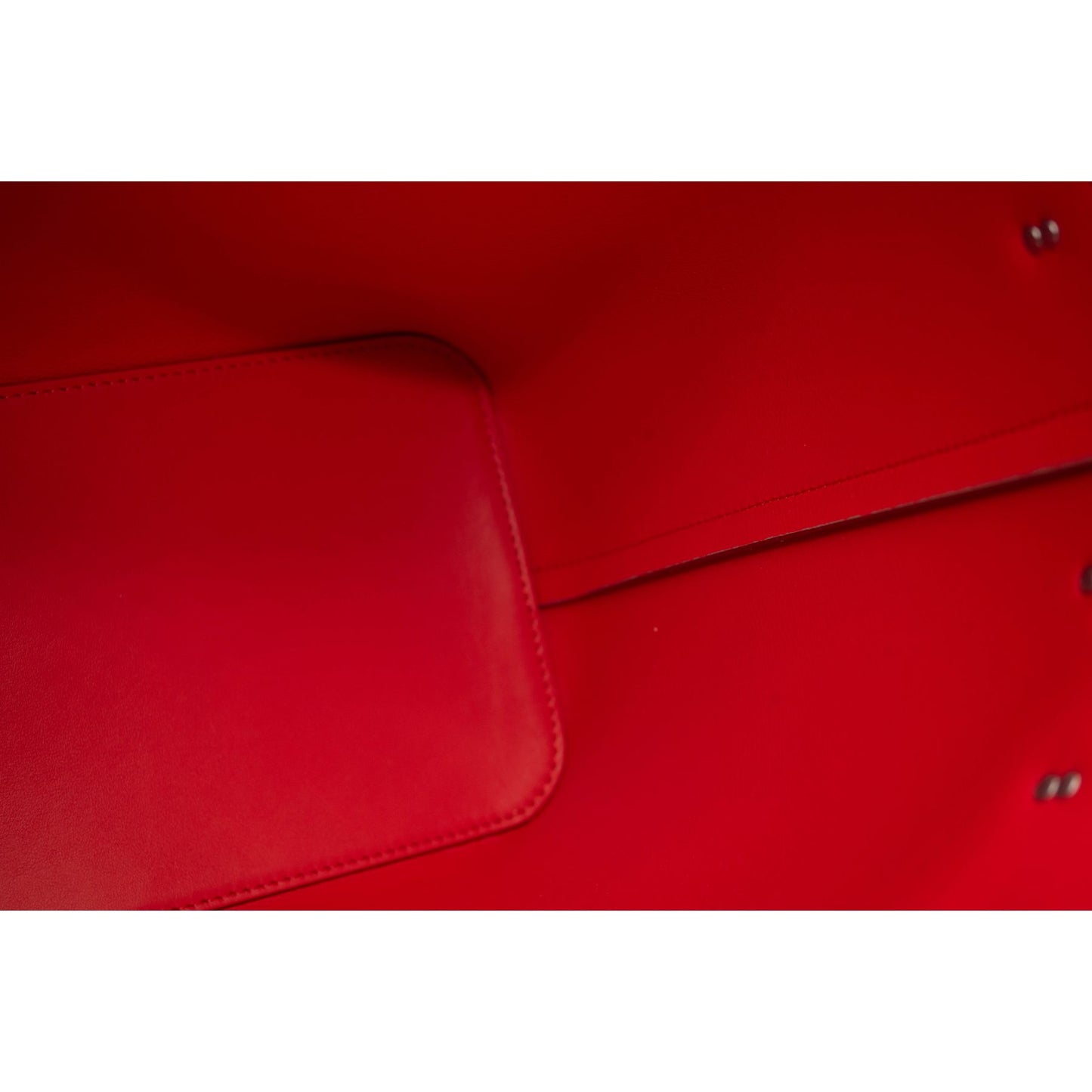 Signature mixed-metal studs shine around the topline of a calfskin leather tote reinforced with a logoed rubber base that also protects the bag from scratches. A tethered zip pouch is handy for keeping smaller items organized and easy to locate.