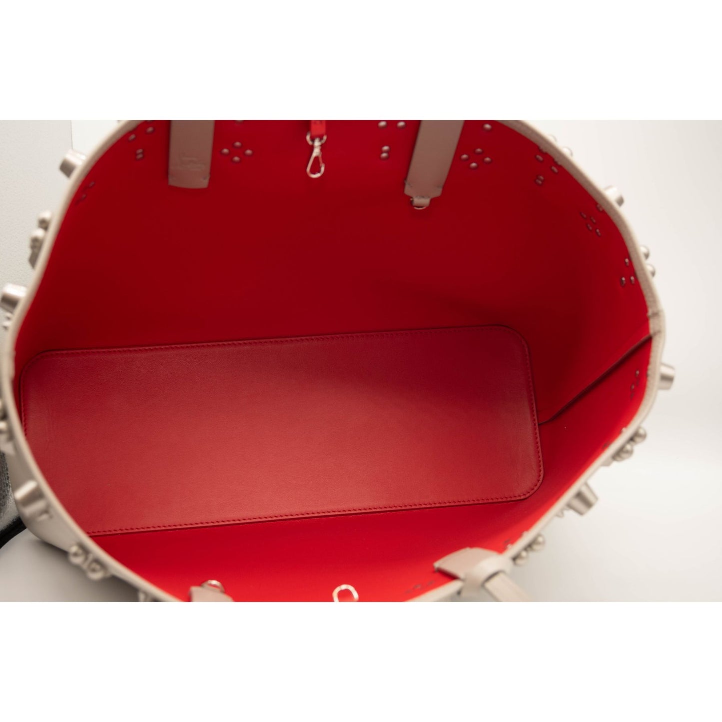NEW Christian Louboutin Cabata Studded Leather Tote Goose Grey