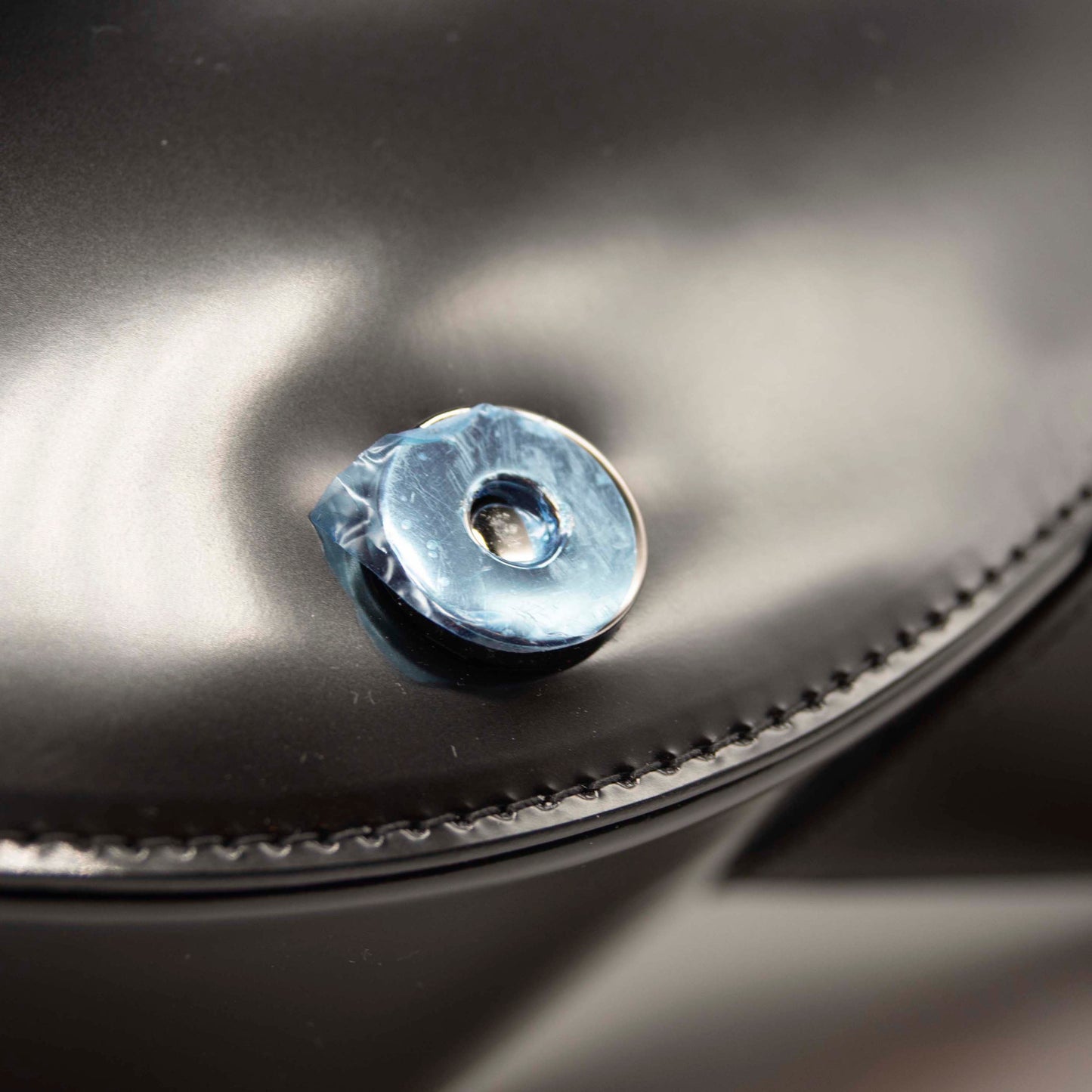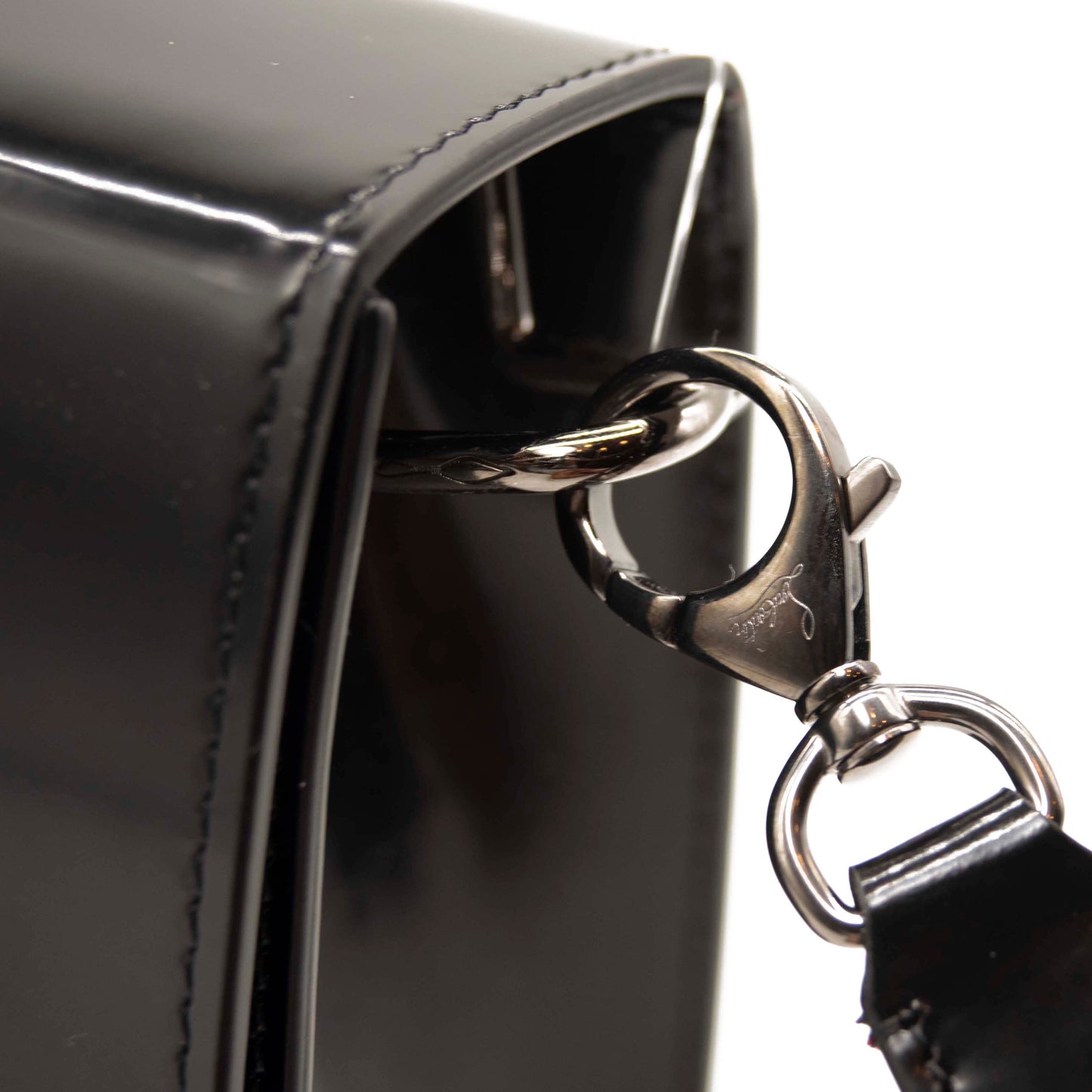 This updated take on the classic Loubi54 silhouette features an angular base, a matching leather crossbody strap and larger polished monogram hardware. The event-worthy look opens to reveal a signature Louboutin-red leather interior.