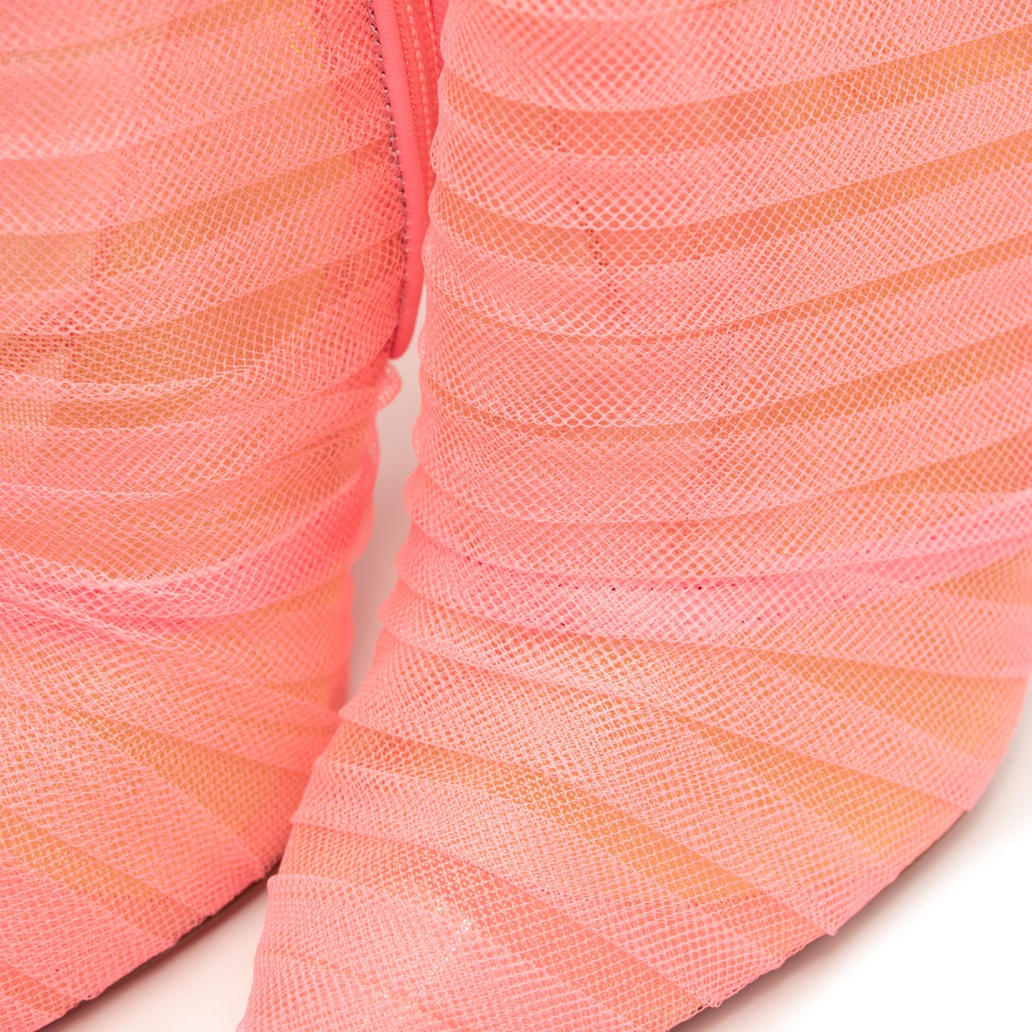 Rendered in sheer tulle, these statement booties flaunt a point toe, set atop of a slender stiletto heel.