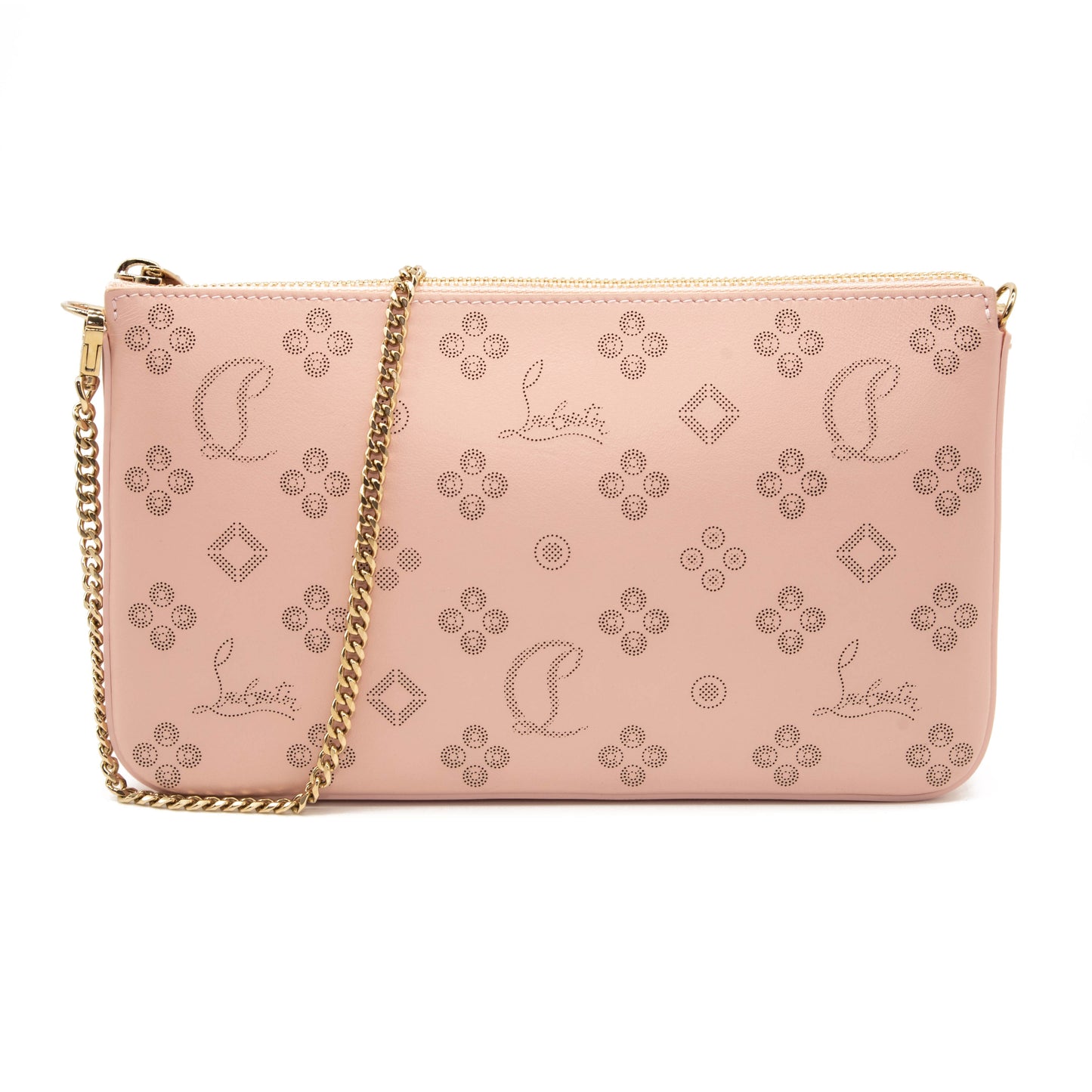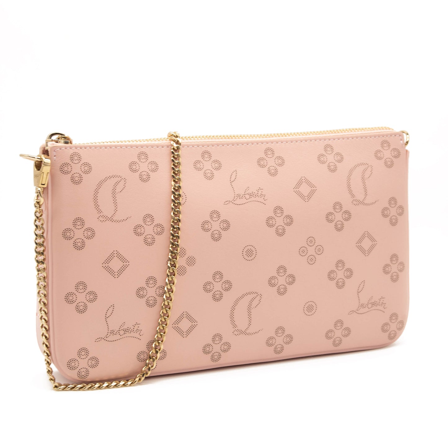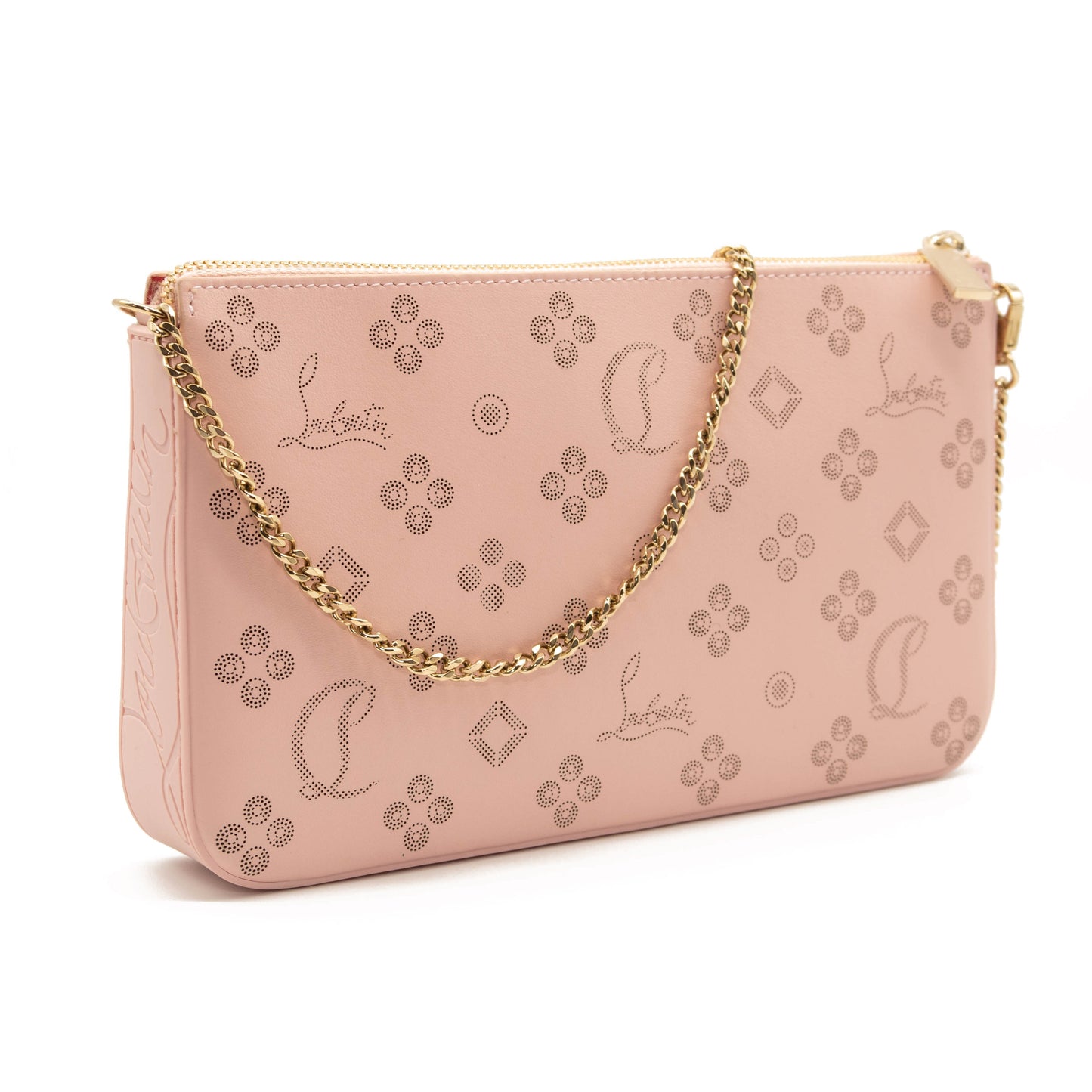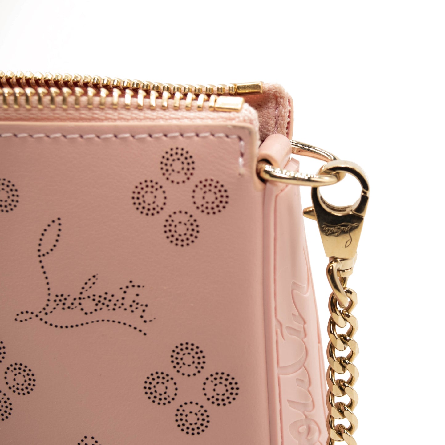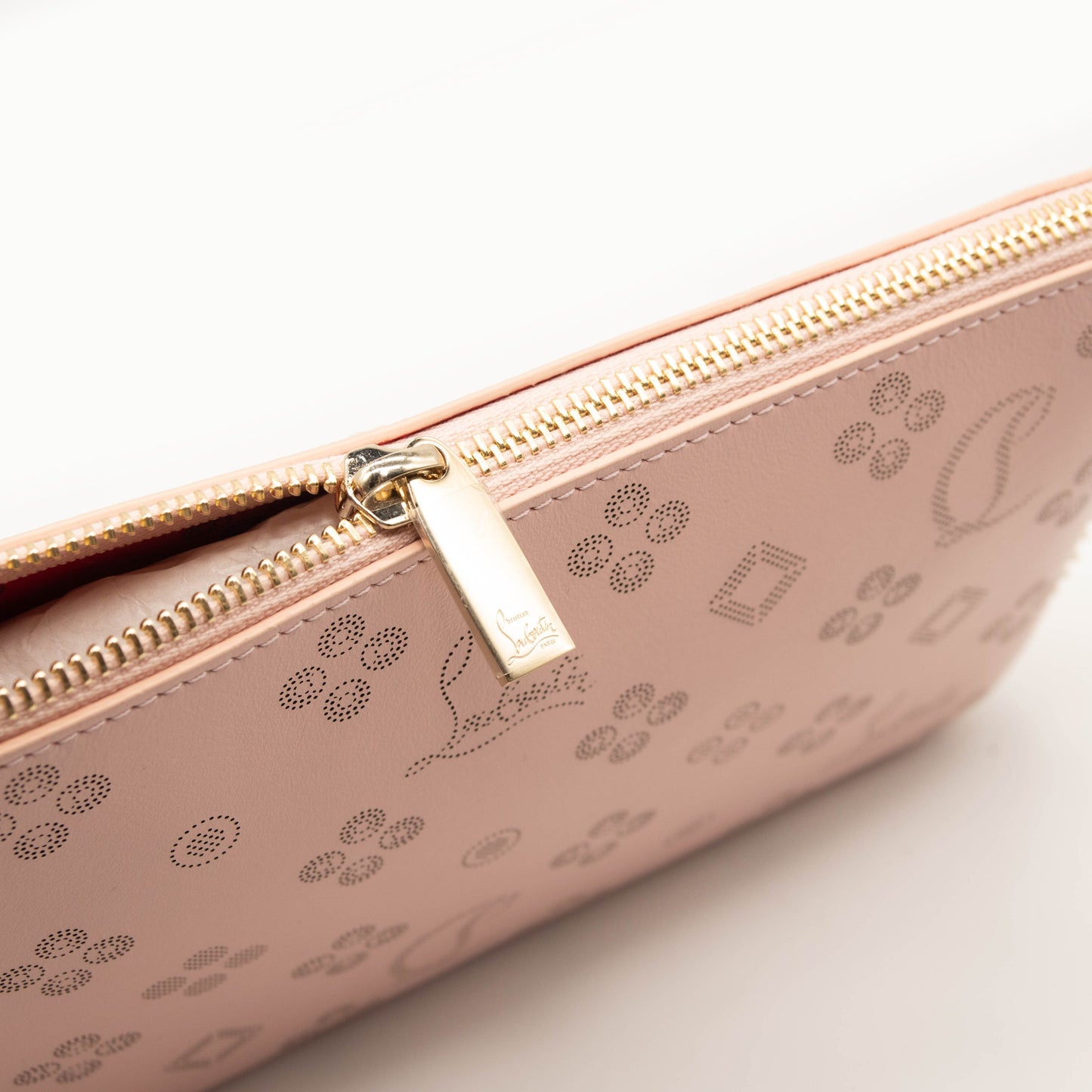 NEW Christian Louboutin Loubila Loubinthesky Laser Perforated Leather Pouch Pink