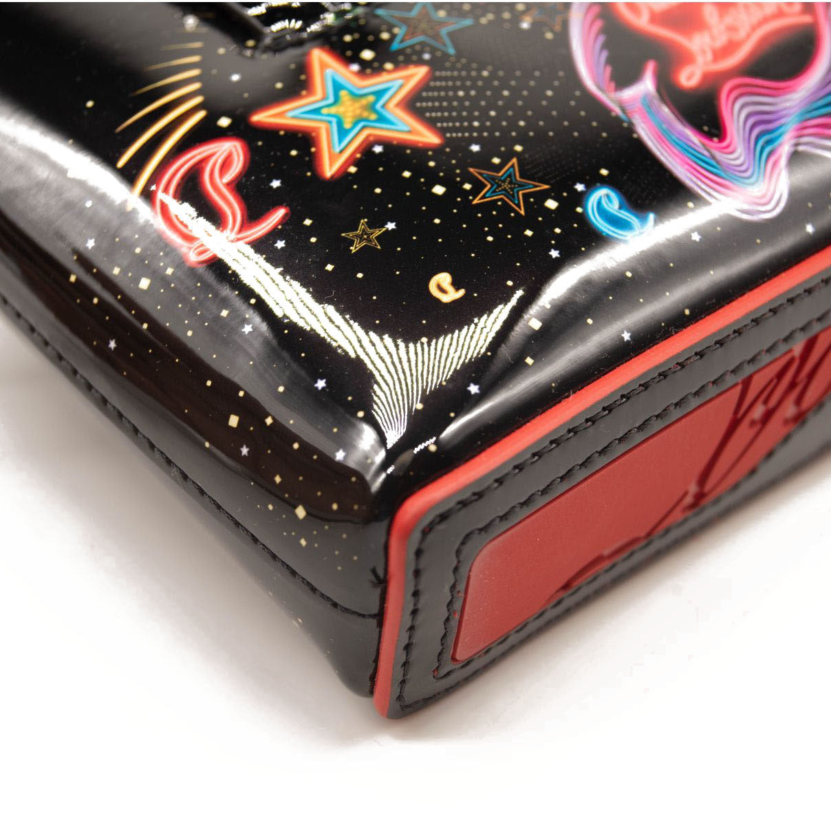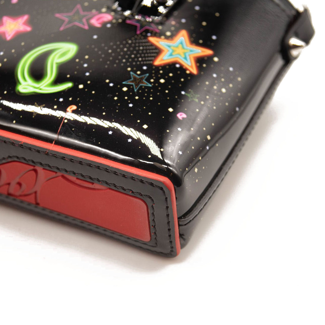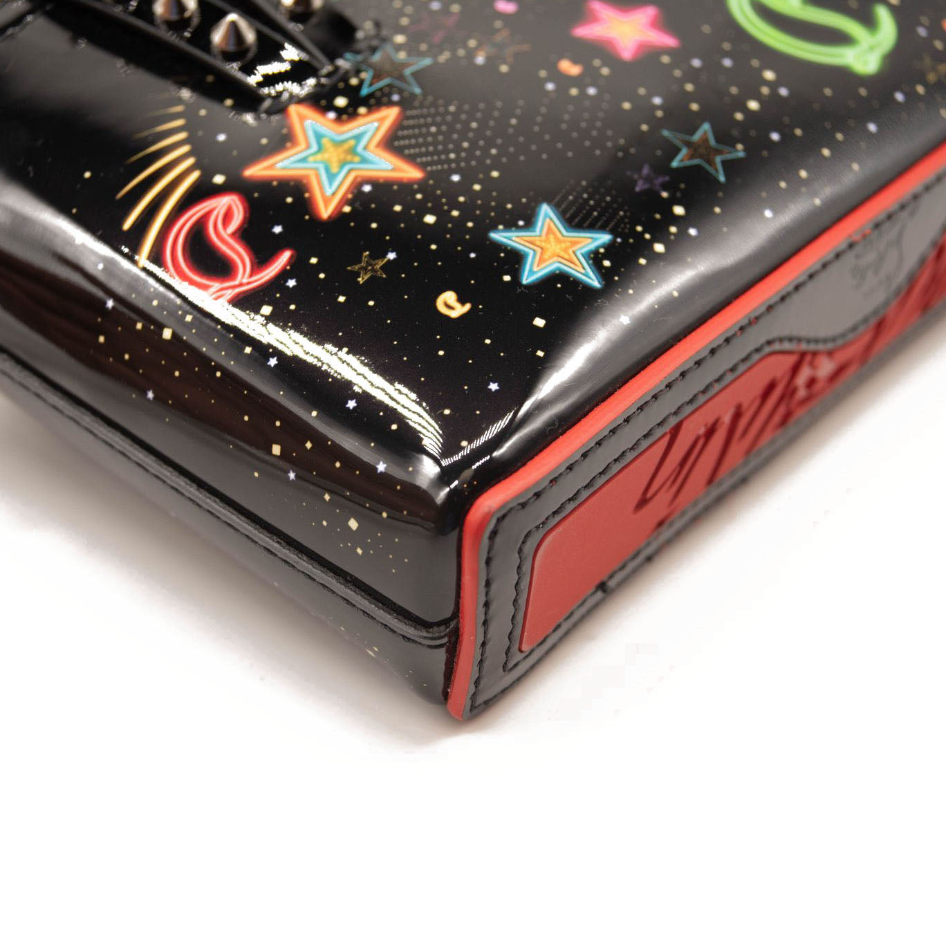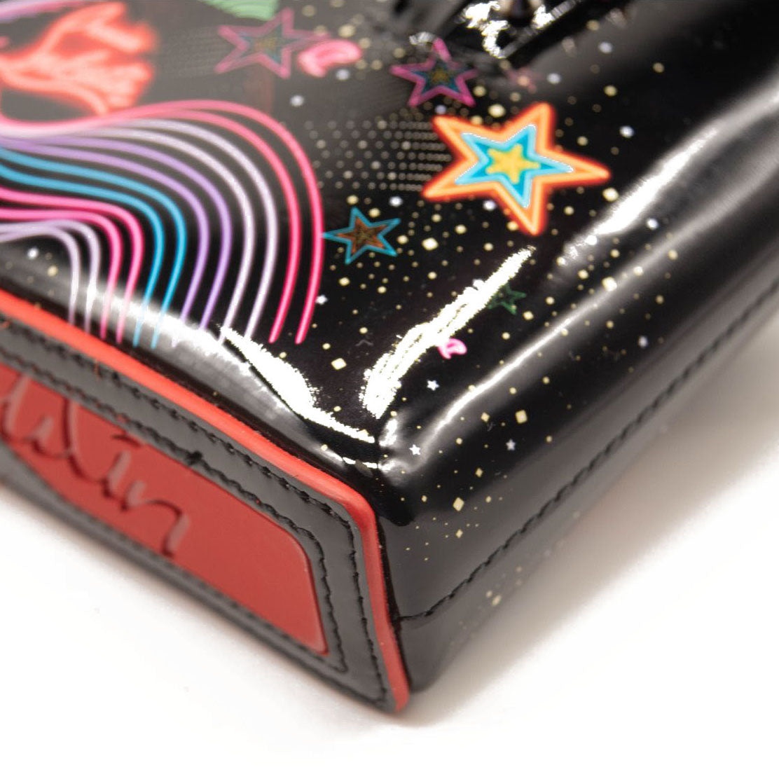 The glossiest of patent leathers creates a mirror-finish exterior on this nano-size tote trimmed with tonal spikes. The logo-embossed base and luscious Louboutin-red touches complete the covetable look.
