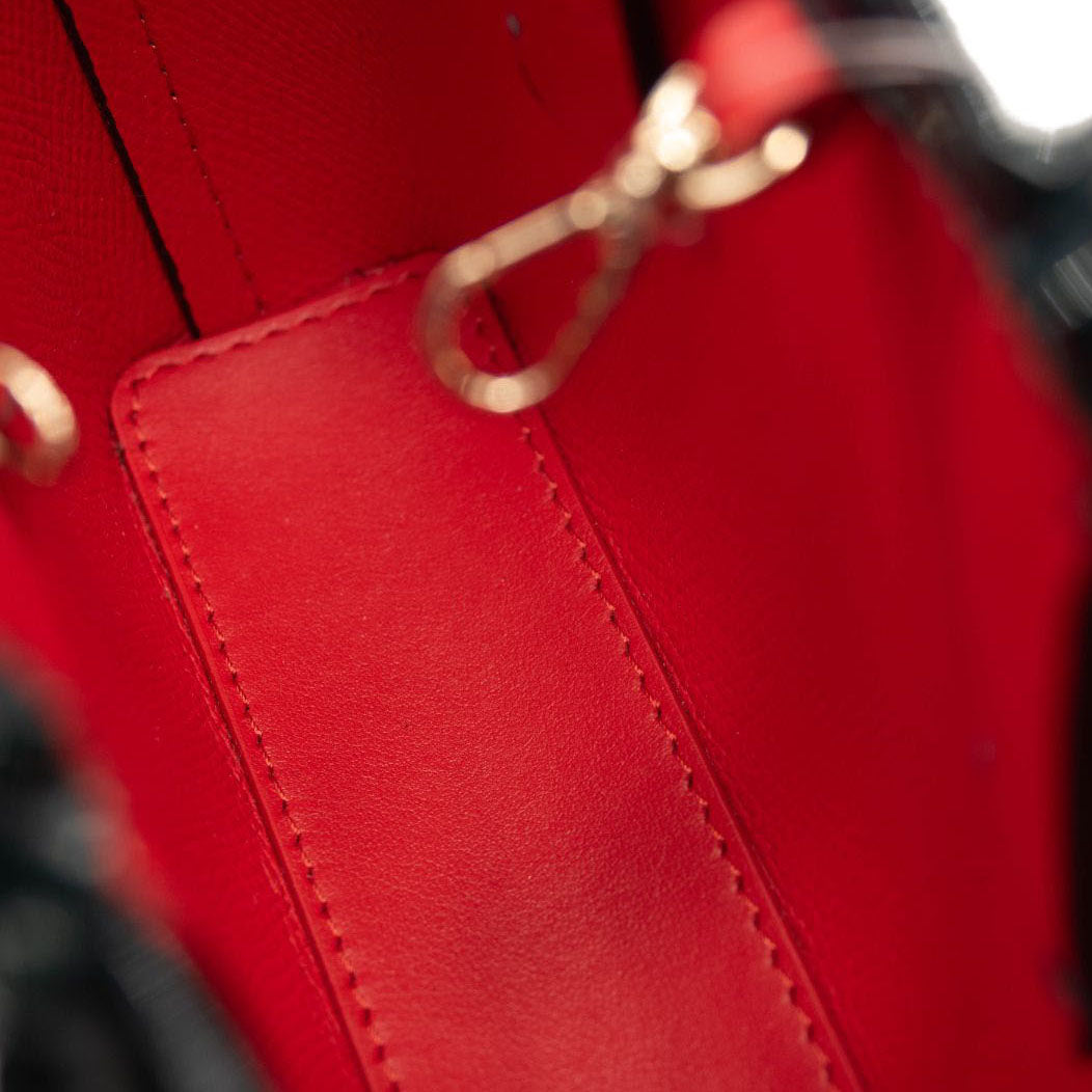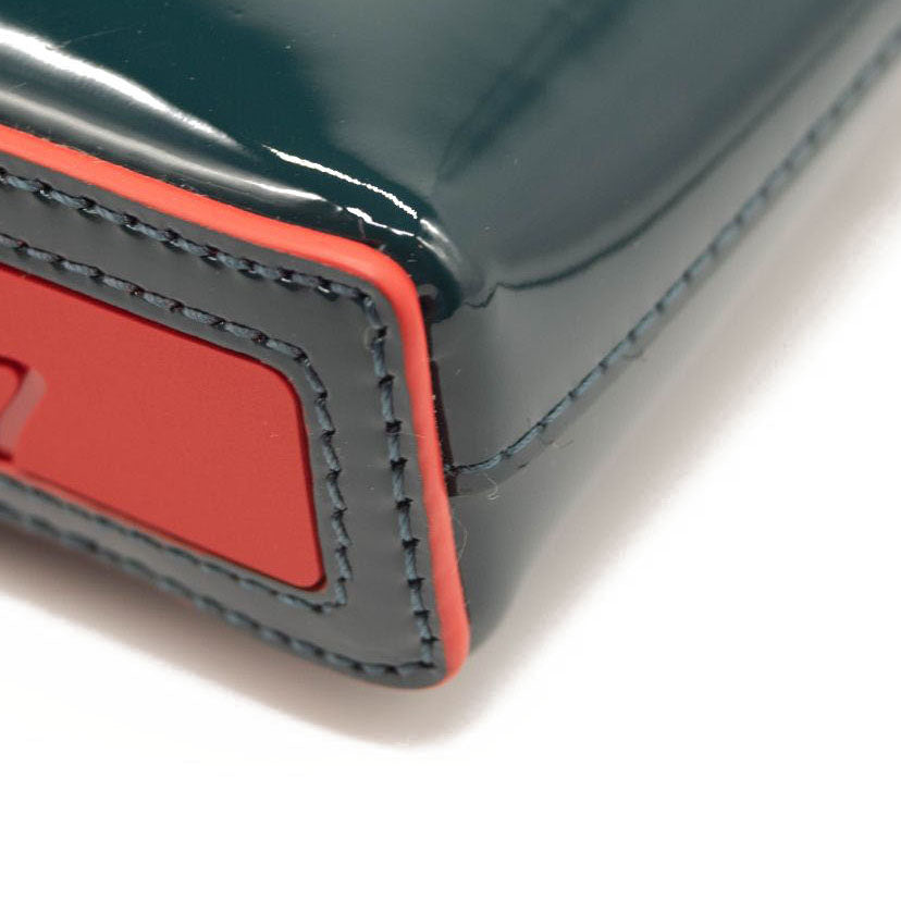 The glossiest of patent leathers creates a mirror-finish exterior on this nano-size tote trimmed with tonal spikes. The logo-embossed base and luscious Louboutin-red touches complete the covetable look.