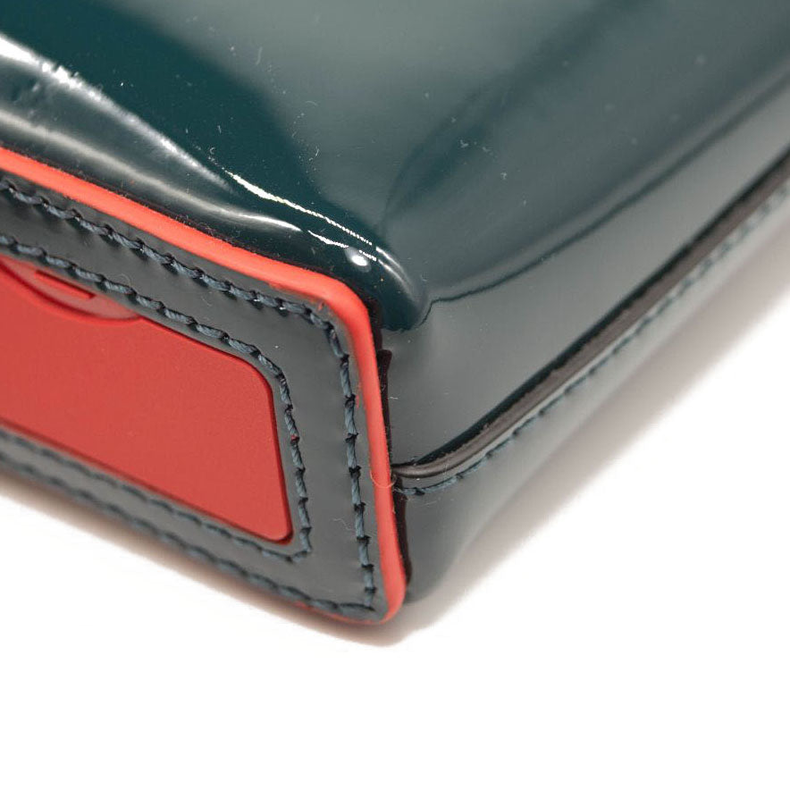 The glossiest of patent leathers creates a mirror-finish exterior on this nano-size tote trimmed with tonal spikes. The logo-embossed base and luscious Louboutin-red touches complete the covetable look.