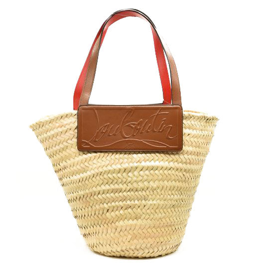 NEW $600 CHRISTIAN LOUBOUTIN Woven Straw Loubishore Tote Beige