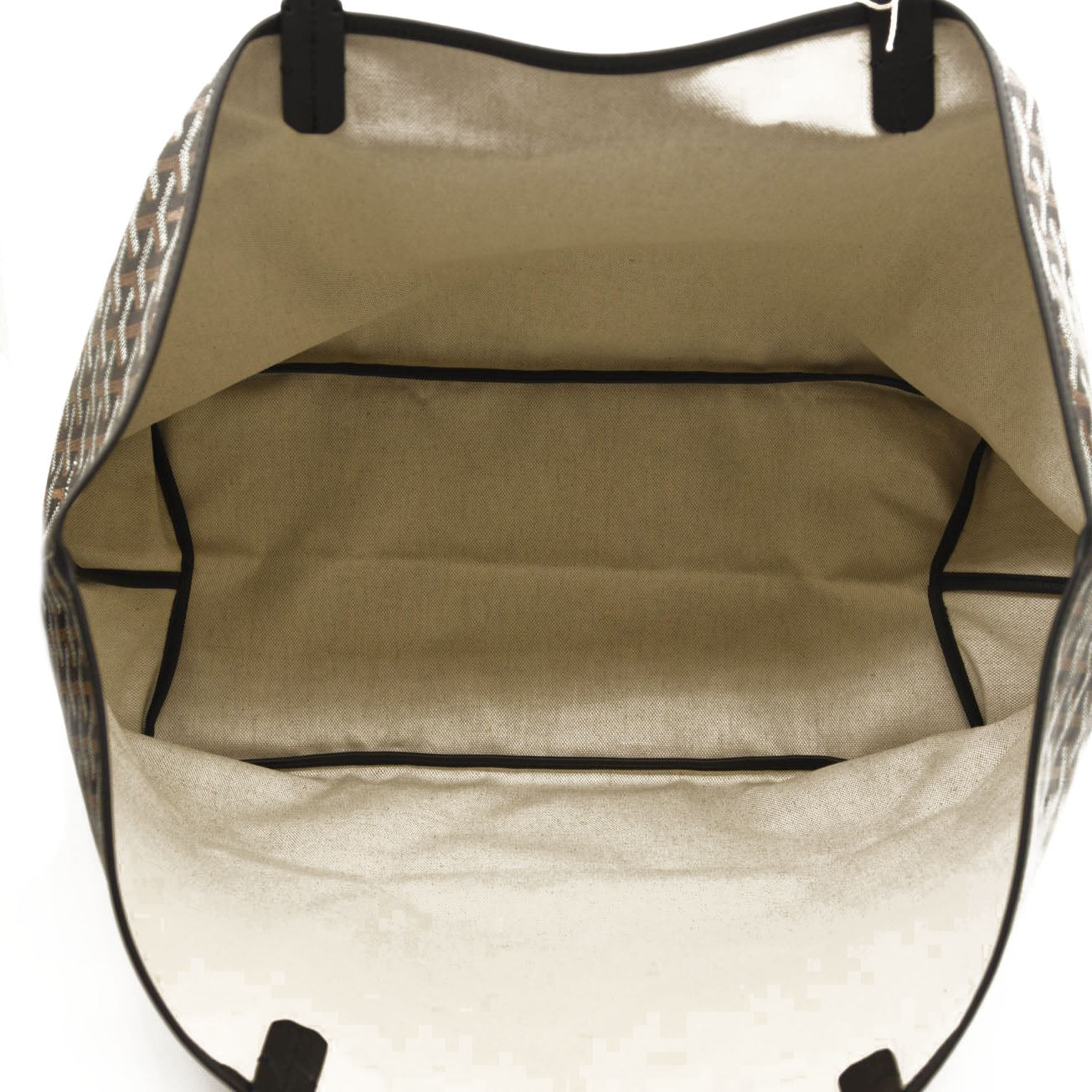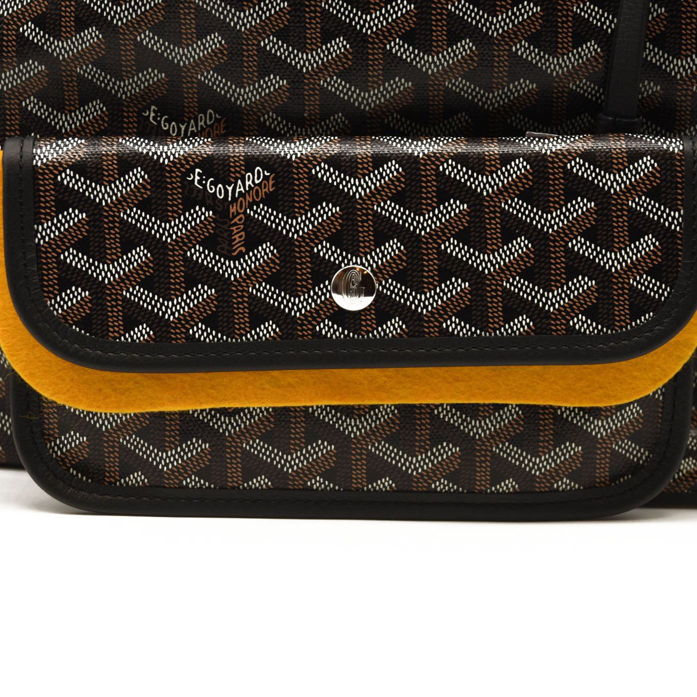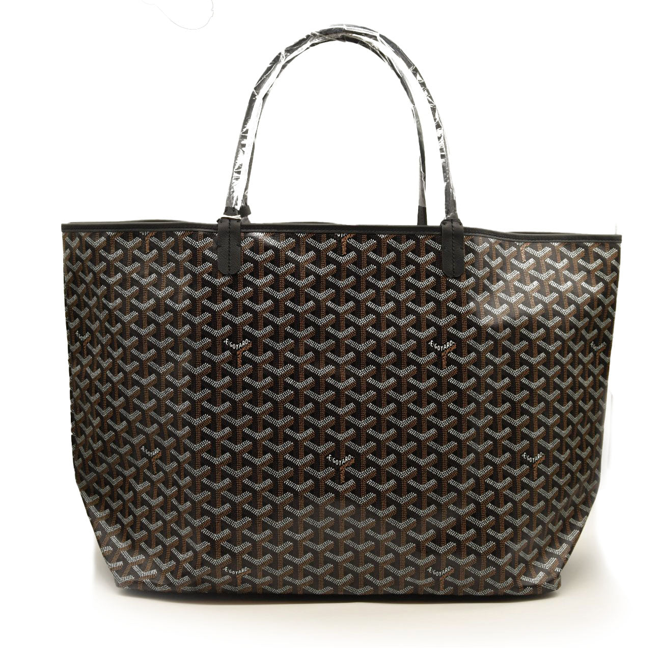 This is an authentic GOYARD Goyardine Saint Louis GM in Black. This tote is crafted of coated canvas with the classic Goyard goyardine chevron monogram in black. The bag features black leather strap handles, a removable pouch and a top border trim. The top is open to a spacious beige linen interior.