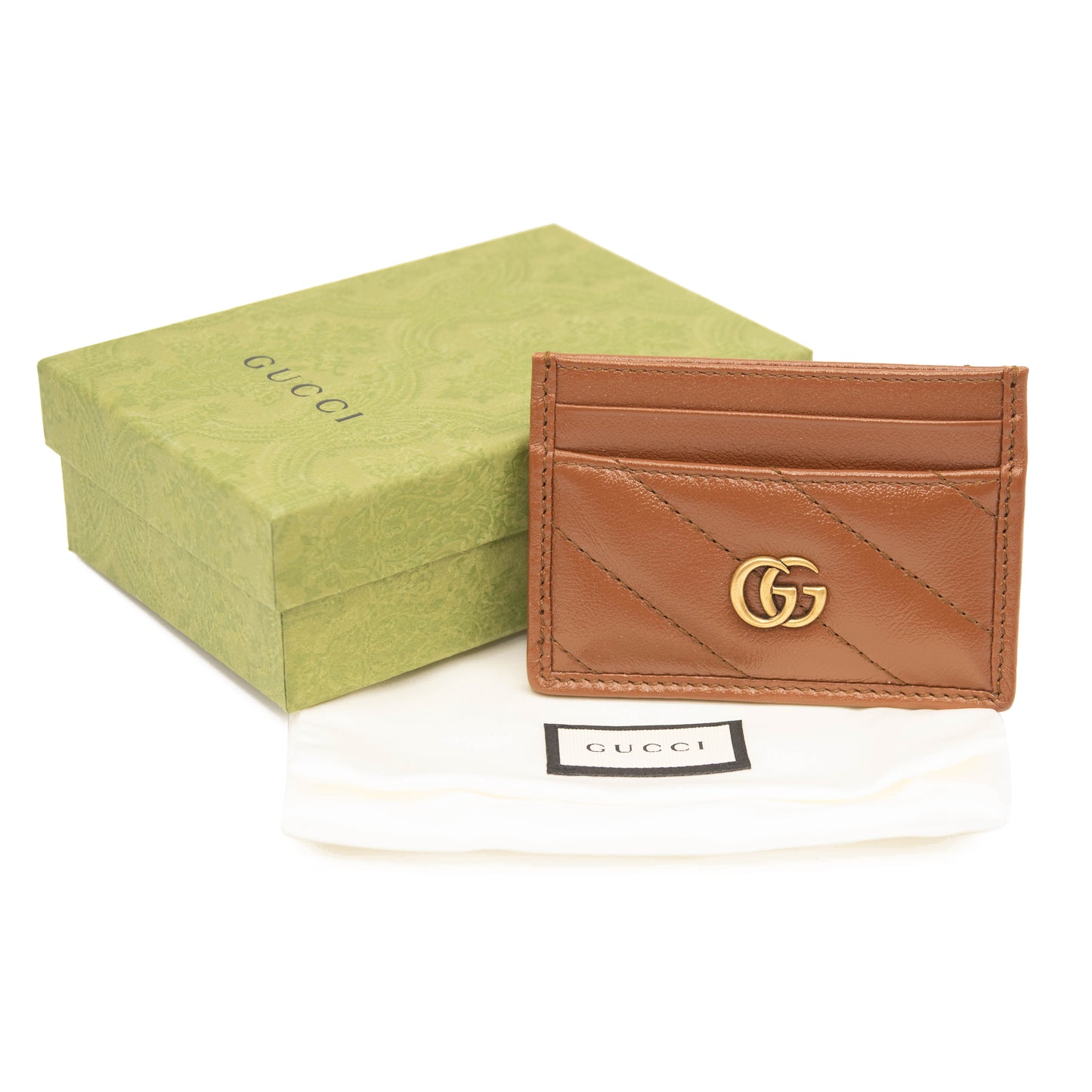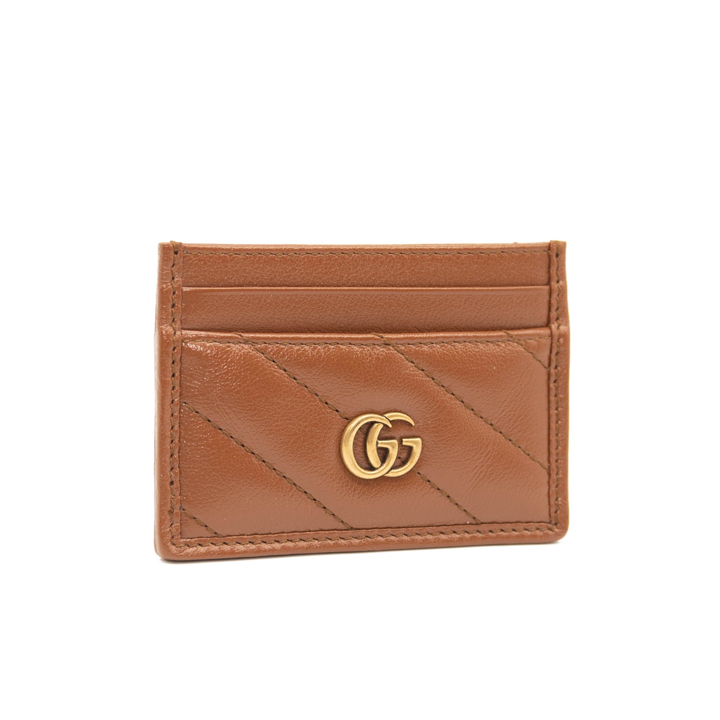 GUCCI Brown Diagonal GG Marmont 2.0 Card Holder
