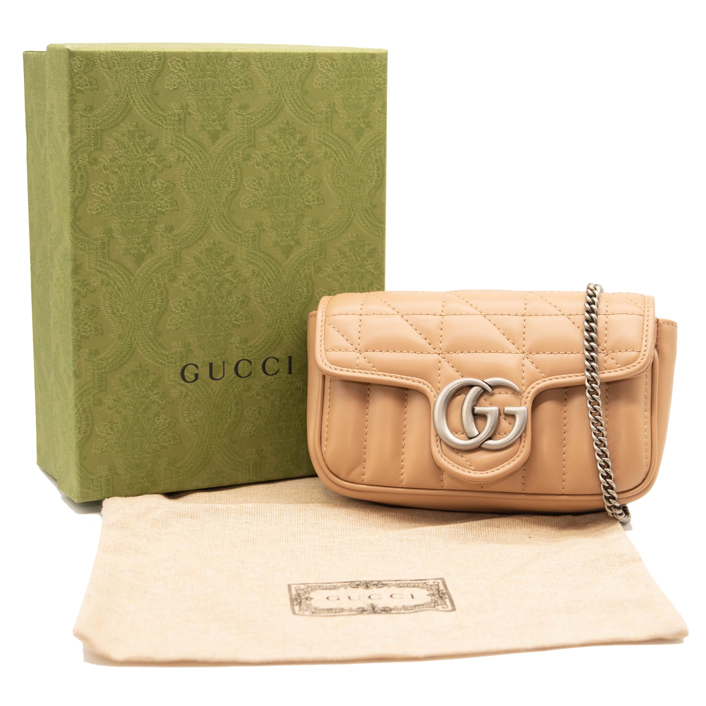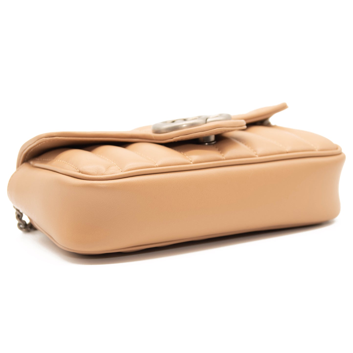NEW GUCCI MARMONT GG SUPER MINI ROSE BEIGE MATELASSE LEATHER SHOULDER BAG