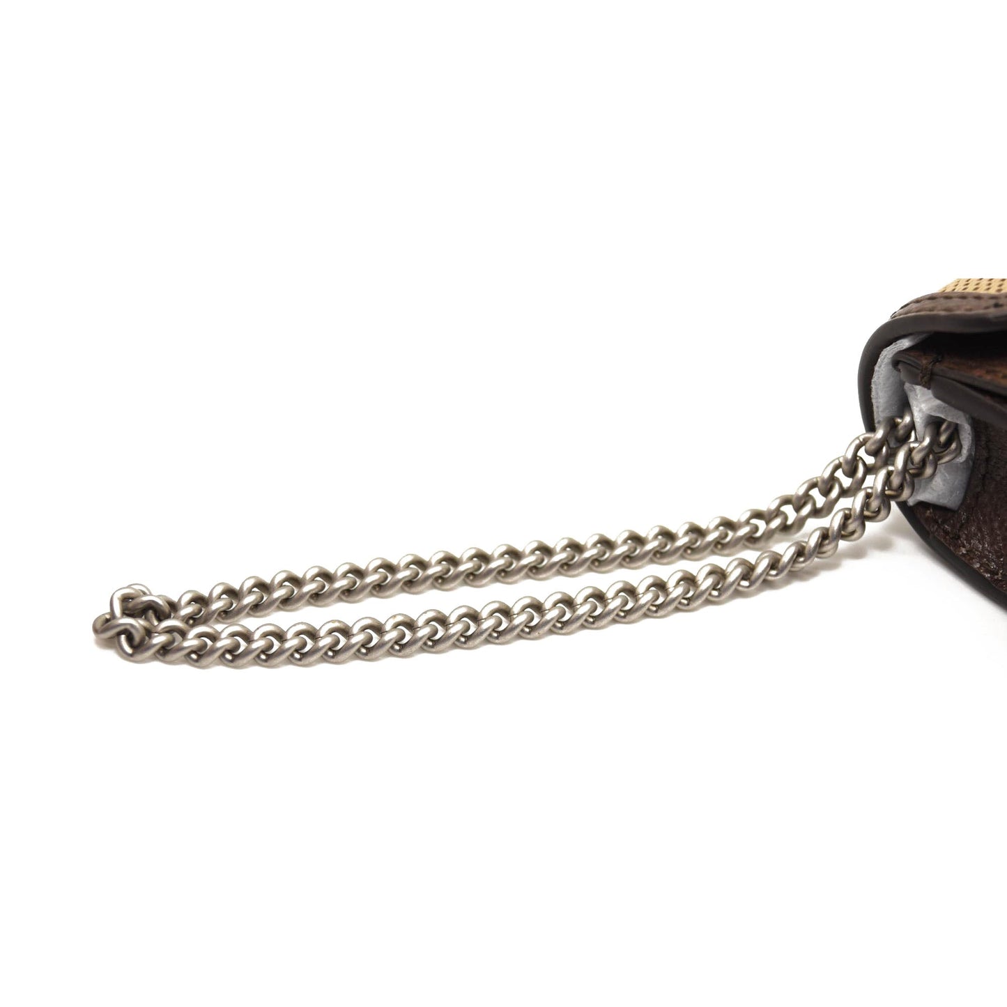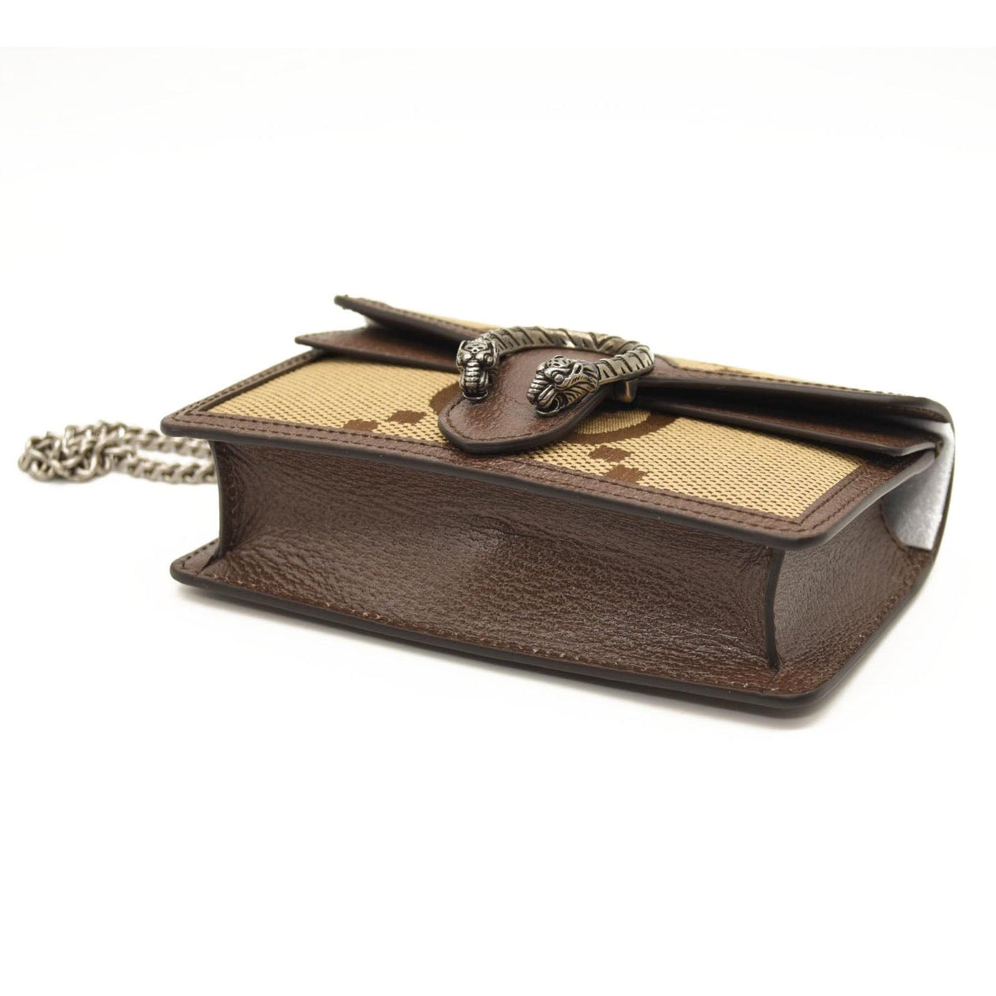 NEW GUCCI Monogram Jumbo GG Textured Dollar Calfskin Super Mini Dionysus Shoulder Bag Camel Ebony New Acero