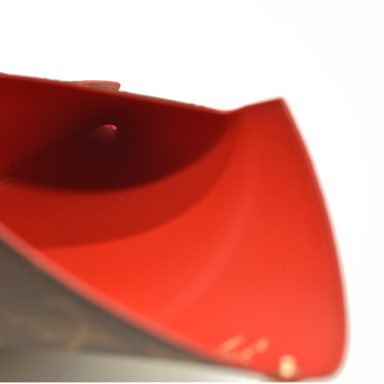 This is an authentic LOUIS VUITTON Monogram Medium Kirigami Pochette Insert. This chic compact pouch is ideal for carrying money, credit cards or passports and is crafted of Louis Vuitton monogram on toile canvas. The purse opens with a flap and a snap to a red smooth leather interior. This is a wonderful compact wallet with the luxury and style only from Louis Vuitton!