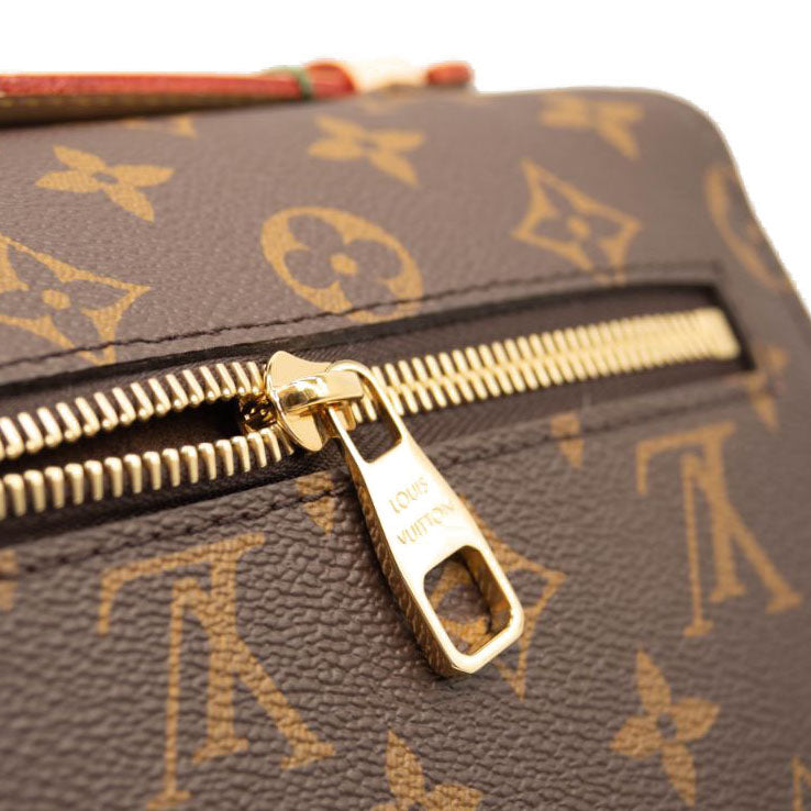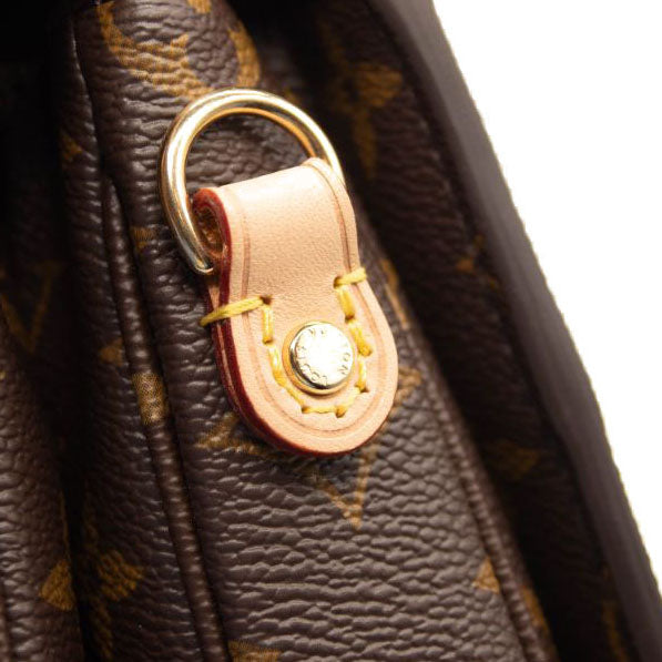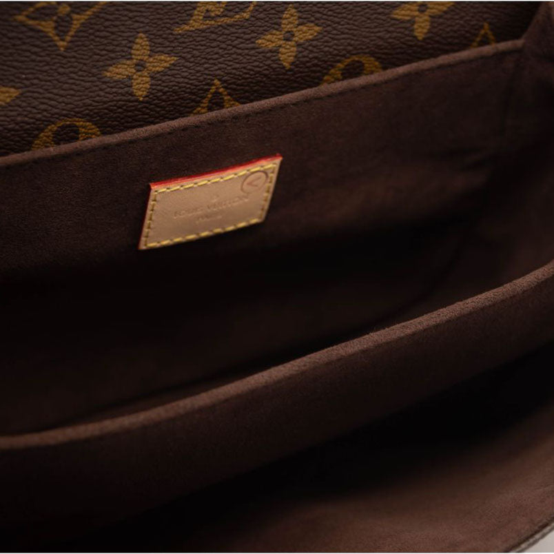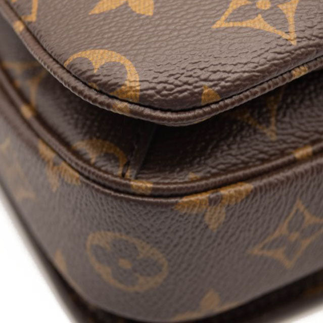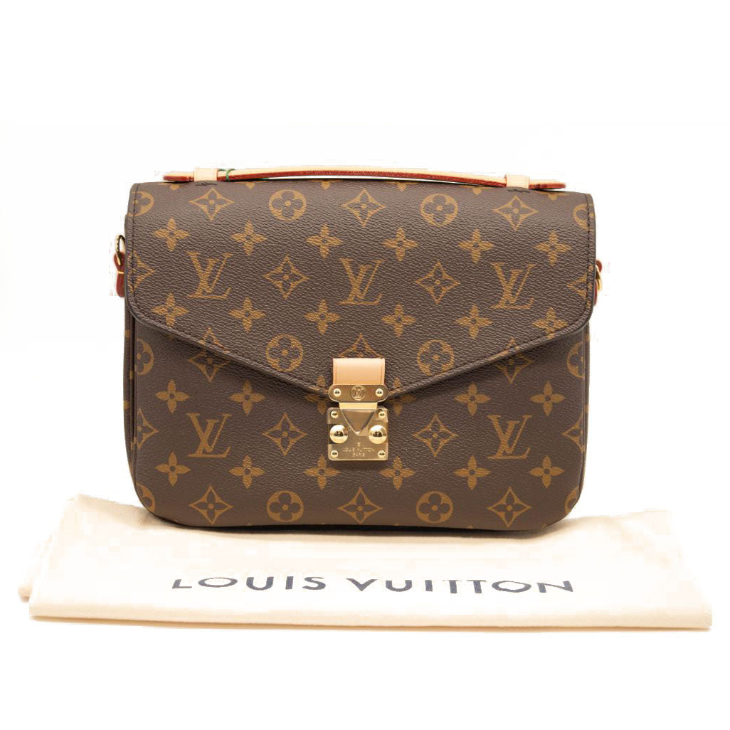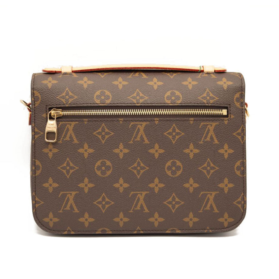 This is an authentic LOUIS VUITTON Monogram Pochette Metis. This chic handbag is finely crafted of classic Louis Vuitton monogram toile canvas. The bag features a vachetta cowhide leather top handle and a rear zipper pocket. The envelope-style crossover flap opens with a polished brass S-lock to a partitioned brown microfiber interior.