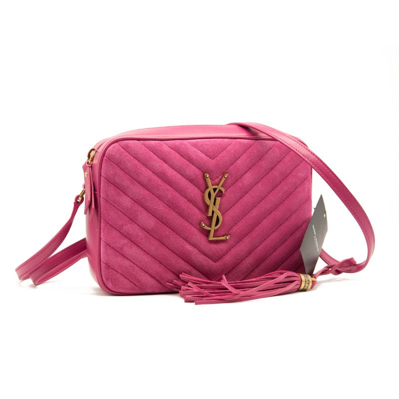 NEW Saint Laurent Calfskin Matelasse Monogram Lou Camera Bag Pink Suede