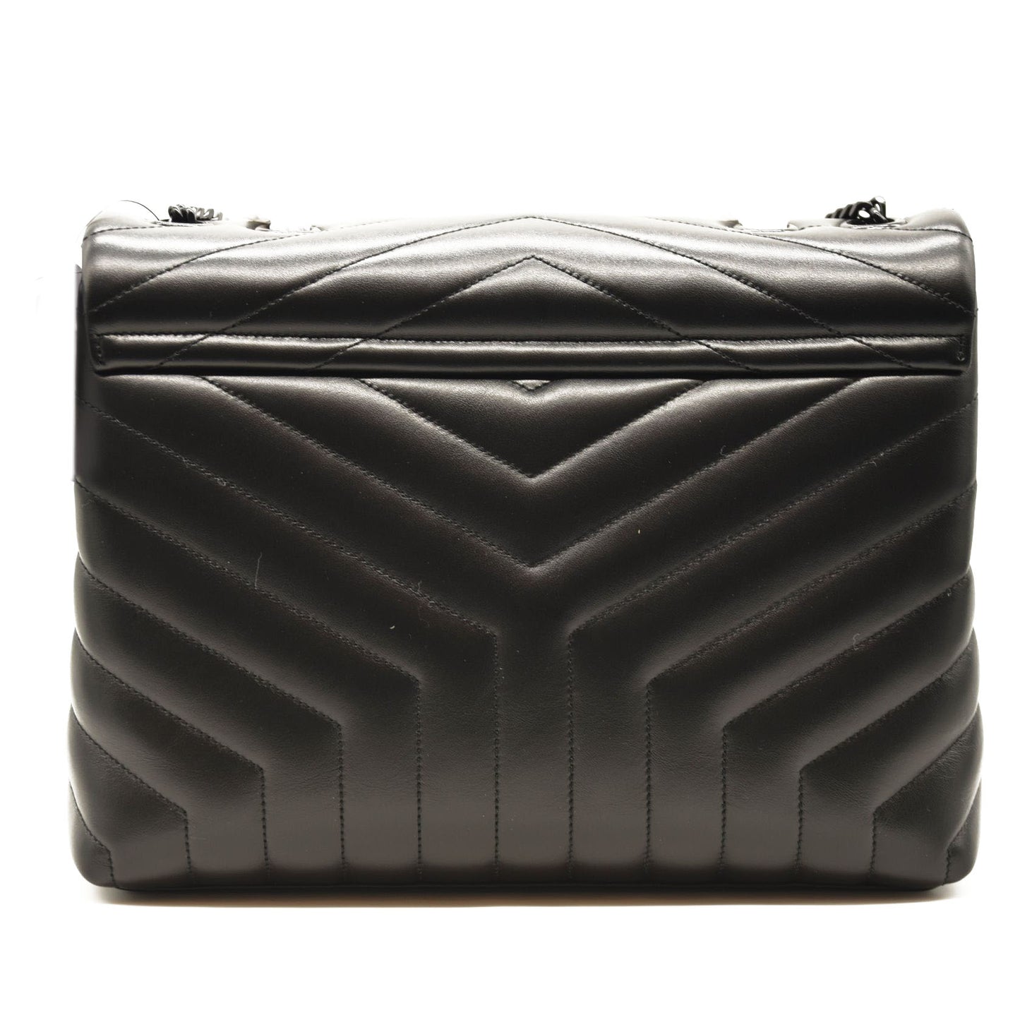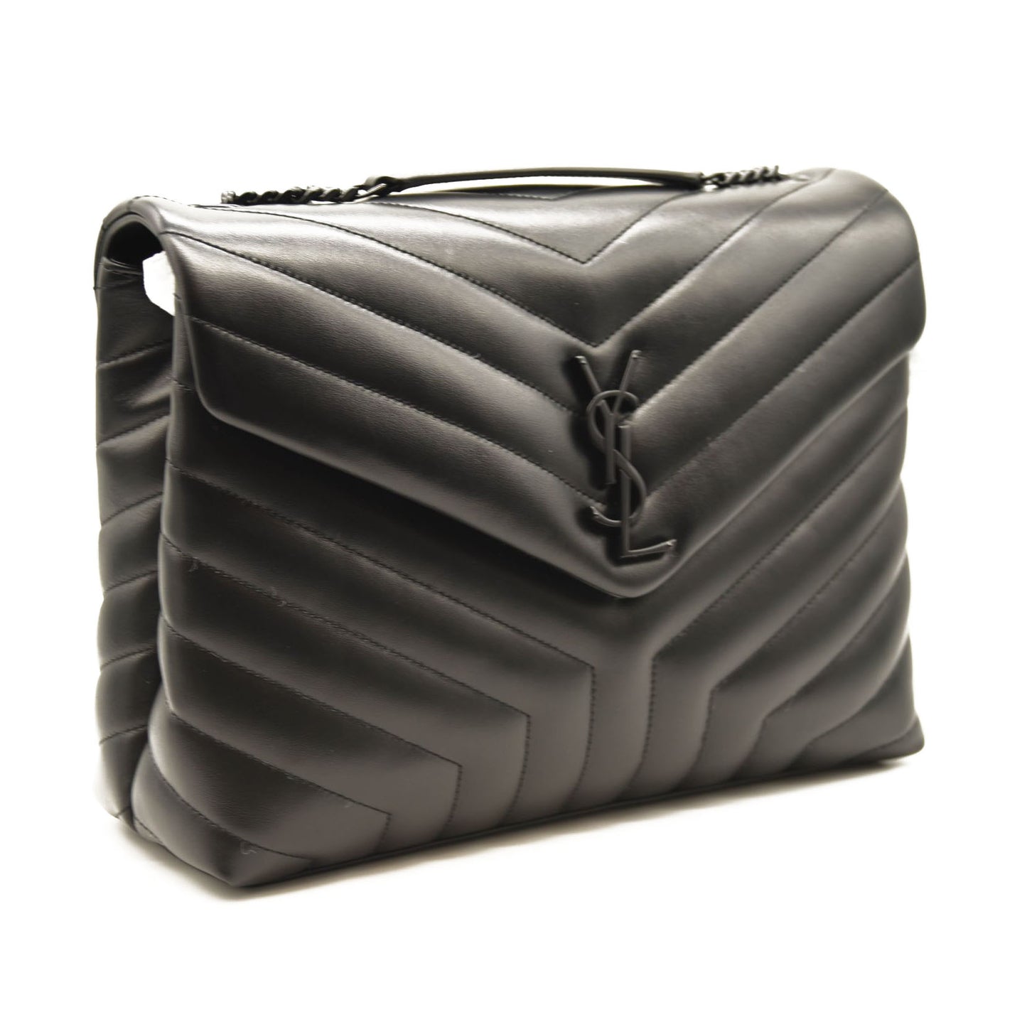 NEW SAINT LAURENT Calfskin Y Quilted Monogram Monochrome Medium Loulou Chain Satchel Black